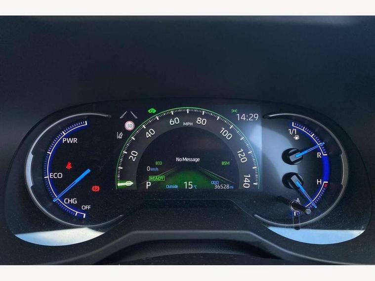 7" colour TFT display, Adaptive cruise control with lane trace assist, Adjustable speed limiter, Apple car play and Android auto, Blind spot monitoring with rear cross traffic alert, Bluetooth system, Cyclist Detection, Drive mode selector, eCall emergency call system, ECO-driving indicator, Electric power steering, EV audible alert, Hybrid system indicator, Lane departure warning system, Lights on warning, Low screen washer fluid warning, Night Time Pedestrian Detection, Pedestrial detection, Power boot opening and closing, Rear parking camera, Rear parking sensors, Remote boot door release in cabin, Tachometer, Touch 2 Go navigation system including 3D maps and voice control, Traffic sign recognition, Trip computer, Voice control system, Vehicle Stability Control (VSC), 6 speakers, 8" Multimedia display touch screen, Auxiliary socket for external MP3 player, DAB audio, Steering wheel mounted audio controls, Toyota touch media system, USB connection, Auto dimming interior mirror, Auto high beam, Automatic headlamp levelling, Automatic headlights, Automatically retractable door mirrors, Black roof rails, Body colour door handles, Body colour door mirrors, Body colour rear spoiler, Body coloured bumpers, Body coloured Shark-fin antenna, Door mirror puddle lights, Electric adjustable door mirrors, Emergency brake-light signal (EBS), Follow me home headlights, Front fog lights, Headlight cleaners, Heated door mirrors, LED daytime running lights, LED High mounted stop lamp, LED rear lights, Meshed upper front grille, Power front windows, Power rear windows, Privacy glass, Projector LED headlights, Rear screen wiper - intermittent, Rear windscreen defogger, Silver front under-run, Silver rear under-run, Trailer Sway Control, Turning signal integrated indicators in door mirrors, Windscreen wiper de-icer, 3 rear headrests, 60/40 split fold rear seat back, Boot light, Clean air filter, Driver and front passenger personal light, Driver and front passenger Whiplash Injury Lessening seats, Driver and passenger sunvisors with illuminated vanity mirrors, Driver seat memory function, Dual sided deck board in boot, Dual zone automatic air conditioning, Floor mats, Folding rear centre armrest, Front and rear bottle holders, Front centre armrest, Front footwell lights, Front headrests, Front seat and rear pockets, Front/rear roof mounted assist grips, Grey roof lining, Heated driver and front passenger seats, Heated steering wheel, Isofix child seat preparation, Leather gear shift with chrome surround, Leather upholstery, Light blue ambient lighting on front cupholders and open tray, Manual telescopic and tilt 3-spoke leather steering wheel with Chrome insert, Manually reclining and sliding front passenger seat, Pollen filter, Power height-adjustable sliding reclining and lumbar support for driver seat, Rear coat hooks, Rear door armrests, Rear passenger air vents, Reclining rear seats, Satin chrome interior door handles, Sunglasses holder, 3x3 point rear seatbelts, ABS/EBD, Adjustable front driver and passenger seat belt extender, Brake assist function, Child proof door locks, Collision mitigation braking system, Driver/Front Passenger airbags, Driver/front passenger side airbags, Drivers knee airbag, Electronic parking brake, Electronic Stability Programme (ESP), Emergency brake light system (EBS), Front and rear curtain airbags, Front and rear seatbelt reminder, Hill start assist, Passenger airbag cut-off device, Seatbelt pretensioners with load limiters, Traction control, Tyre pressure warning, Alarm/immobiliser, Glass-breaking alarm sensors, Light - on and Key in reminder, Remote central locking, Smart entry + Smart start, Speed sensitive auto door locking, Tilt detection sensors, Piano black centre console with silver insert, Soft-touch black lower dashboard, Soft-touch black upper dashboard with silver insert, Full size spare wheel,