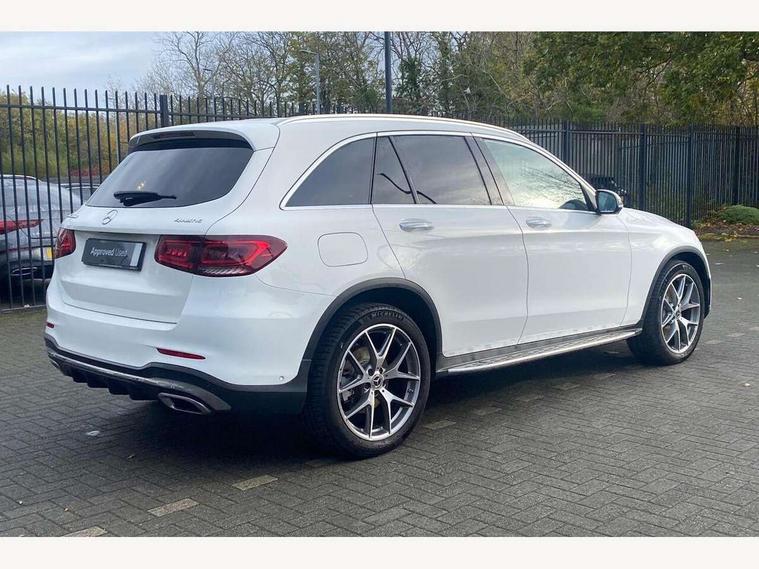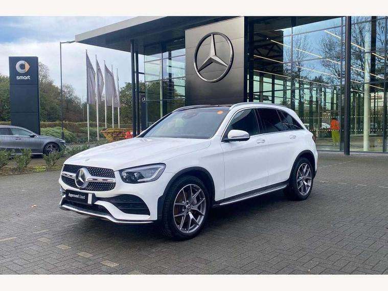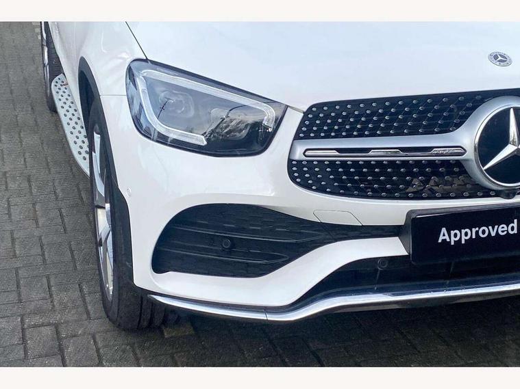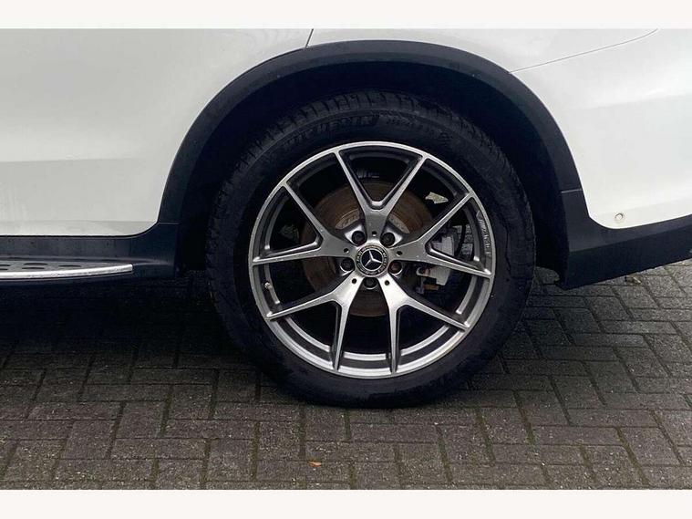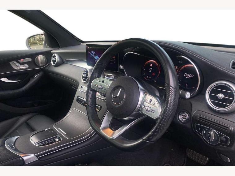 360 degree camera, Active parking assist with parktronic system, Attention assist, Bluetooth interface for hands free telephone, Collision prevention assist plus, DYNAMIC SELECT with a choice of driving modes (ECO, Comfort, Sport, Sport+ and Individual), Easy pack automatic powered tailgate, ECO start/stop function, Hard disk navigation, Hey Mercedes Voice activation, Instrument cluster with12.3-inch digital instrument cluster display. High resolution instrument cluster screen with choice of three display styles, MBUX Interior assistant, Mercedes connect me with remote online services, Multi function trip computer, Outside temperature display, rear seatbelt status indicator, Remote boot release, Service indicator (ASSYST), Smartphone integration with Apple CarPlay and Android auto, Traffic sign assist, 4MATIC permanent four wheel drive, 66 litre fuel tank, 9G TRONIC plus automatic transmission with steering column gear selector, DIRECT SELECT steering wheel gearshift paddles, Diesel particulate filter, Sports suspension tuned for improved handling and driving dynamics, 5 speakers, Frontbass loudspeakers, MBUX multimedia system with DAB digital radio and touchpad, Media display 10.25-inch touchscreen display, Pre installation for Mercedes Benz Link, USB ports x 2 in centre console, Adaptive brake lights, Aluminium roof rails, AMG bodystyling - AMG front apron with sporty air intakes and chrome trim element, AMG diffuser-look rear apron with insert in black, Body colour door mirrors, Body coloured bumpers, Electric panoramic glass sunroof, Electric windows one touch open/close, Electrically adjustable and heated door mirrors, Front, side and rear exterior chrome trim, Headlamp assist automatic headlamp activation, LED high performance headlamps with integrated LED daytime running lights, LED tail lamp, Motor way mode function and locator lighting, Privacy glass with dark glass from B pillar backwards, Radiator diamond grille, Rain sensor windscreen wipers, Range adjustable headlights, Rear wiper, Running boards, Tinted glass all round with single layer safety glass, Two chrome plated tailpipe trim elements, 2 way rear head restraints, 3-spoke multifunction sport AMG steering wheel in black nappa leather with flattened bottom section, chrome insert and perforated leather in grip area, 40:20:40 split folding rear seats, Ambient lighting, AMG floor mats with edging and embroidered AMG lettering, AMG sports seats, Artico man-made leather upper dashboard with contrast topstitching, Automatic child seat recognition sensor, Black roof lining, Dividing net - rear, Double cup holder in centre console, Easy-pack removable load compartment cover, Front armrest with storage box, Front door sills with Mercedes Benz lettering, Front head restraints, Heated front seats, Illuminated and lockable glove compartment, Leather upholstery, Rear top tether child seat ISOFIX attachment, Sports pedals with stainless steel surfaces and rubber studs, Steering wheel with touch control buttons, THERMOTRONIC 3 zone automatic climate control, Interior lighting pack - GLC, Memory pack - GLC, Mirror pack - GLC, Storage pack - GLC, 3 rear 3 point seatbelts, Active bonnet, Adaptive brake system with HOLD function and brake drying in the wet, ASR, Black seat belts, Brake calipers with Mercedes-Benz lettering + perforated brake discs, Child proof door locks, Dual-stage airbags - driver and front passenger, driver knee bag and window bags for driver, front passenger and rear passengers, Electronic parking brake, Electronic stability programme (ESP) with curve dynamic assist and cross wind assist, Front and rear seatbelt reminder, Front passenger seat occupancy sensor, Hill hold function, Tyre pressure monitoring system, Warning triangle and first aid kit, Alarm system/interior protection/immobiliser, Automatic door locking, Keyless Go entry and starting function, Remote central locking, Anthracite open pore oak wood trim, 20" AMG 5 twin spoke alloy wheels painted in titanium grey with high sheen finish, Run flat tyres, Summer tyres,