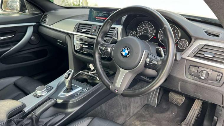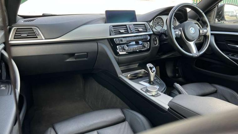 Auto start-stop, Automatic tailgate operation, BMW Online services, BMW remote services, BMW Teleservices, Brake pad wear indicator in front and rear, Check Control warning system for monitoring of lights and door/luggage compartment open warning, Condition based service, Control display - 6.5" colour display screen, Front/rear park distance control (PDC), iDrive Controller with 8 favourite buttons, Instrument cluster with speedometer with mph readout, tachometer, fuel gauge and oil temperature gauge, Lights on warning by audio warning signal when ignition is switched off, M Sport instrument cluster, Oil sensor for level and grade, warning by check control system, On board computer - average speed, fuel consumption, outside temp display with acoustic warning, clock/date, service interval, odometer/trip meter, Optimum shift indicator, Personal Profile - automatic lock when driving away selectable, Professional multimedia navigation system, Run flat indicator, Aluminium front suspension, Drive performance control with ECO PRO comfort + sport mode, Electronic differential lock, Five link rear suspension, Sport automatic transmission with steering-wheel mounted gearshift paddles and launch control, VALVETRONIC engine management, DAB tuner, Auto dimming rear view mirror, Body colour door handles, Body colour front bumper, Body colour mirror caps, Body colour rear bumper, Body colour roof mouldings, Chrome kidney grille with extra wide black, high gloss black vertical slats, Direction indicator, side repeaters, integrated in exterior mirrors, Door sill finishers with M designation, Dual exhaust tailpipes in left with chrome finisher, Dynamic brake lights, Electric front windows with fingertip open/close + anti-trap facility, Follow me home headlights, Front air inlet with high gloss black finish, Front and rear bumper system, Green tinted heat protection glazing, Heated windscreen washer jets, Heated, electrically adjustable exterior mirror aspheric on driver side, convex on passenger side, High gloss black air breather, High gloss black rear bumper insert, High gloss shadow line exterior trim, High level third brake light, LED daytime running lights, LED direction indicator lenses, LED eyebrow light, LED front fog lights, LED tail lights with 3D L-shaped LED light design, Lightweight engineering, M aerodynamic bodystyling, Model designation, Rain sensor including auto headlights activation, Shark fin antenna, Two speed adjustable intervals windscreen wipers, Visible VIN plate, Welcome lighting, Windscreen with grey shadeband, 12V sockets in front centre console and passenger footwell, 2 Rear seat headrests, 3 spoke leather M sport multifunction sports steering wheel, 4 grab handles, Air conditioning and radio control panel in high gloss black, Ambient lighting - switchable BMW classic orange/ cold white LED, Anthracite headlining, Automatic air conditioning with two zone control, Bottle holders integrated into front door trim storage compartments, Chrome centre console panel highlight, Driver and front passenger seat heating, Front and rear side armrests integrated into door trim, Front folding sliding armrest with storage compartment, Front head restraints, Front sports seats, Full black panel display, Glove compartment, Interior lighting, front centre over interior mirror and rear centre automatic interior light activation when door is opened, Leather gearknob and handbrake lever, Load lashing eyes in luggage compartment, Reach + rake manual adjustable steering column, Rear child seat isofix attachment with passenger airbag deactivation, Rear coded belt buckles, Storage compartment in rear centre console, Sunvisors with vanity mirrors and ticket pocket, Toolkit located in luggage compartment, Two front cup holders with a sliding lid, Velour floor mats, Extended lighting package - 4 Series Gran coupe, Non Smokers pack, 3 point seatbelts on all seats, Airbag - Front driver and passenger, front and rear head, front side, curtain head protection, manual deactivation of front passenger airbag possible, Anti lock braking system (ABS) with brake assist, Automatic Stability Control (ASC), Battery safety cut-off, BMW emergency call, Brake drying, Brake energy regeneration, Brake pretensioning, Cornering brake control (CBC), Crash sensor activating central locking release, hazard warning lights, Dynamic brake control, Dynamic stability control + (DSC+), Dynamic Traction Control - DTC, Front and rear ventilated brake disc, Front seatbelt force limiters, Hill start assistant, Pyrotechnically pre-tensioned front seatbelts, Seat belt security check for driver, Side impact protection, Twin horns, Tyre pressure monitoring with three level warning strategy, Variable torque distribution, Warning triangle and first aid kit, Alarm system (Thatcham 1) with electronic engine immobiliser, Central locking switch for all doors, fuel filler cap and luggage compartment, Remote control integrated key with blue inset, Start/stop button with Comfort Go keyless engine start and auto Start/stop deactivation button, Reduced rolling resistance tyres, Run flat tyres,