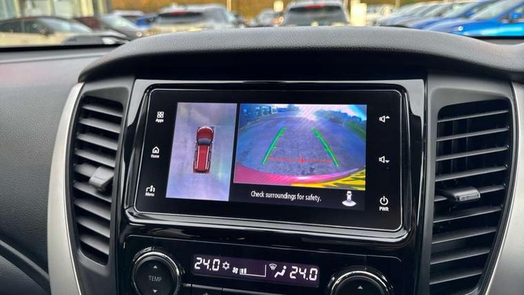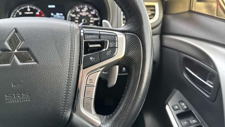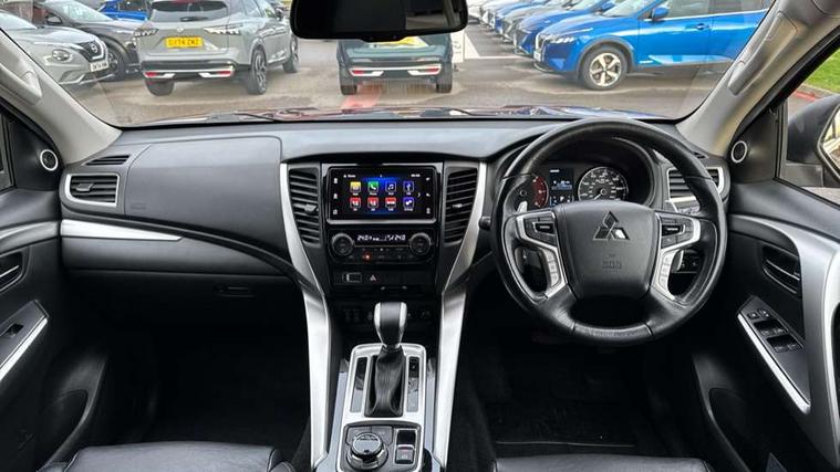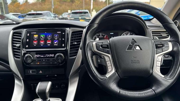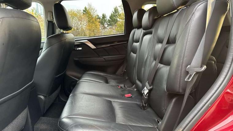 360 degree parking camera, 4WD drivetrain mode indicator, 7" touch screen, Adaptive cruise control, Android Auto, Apple CarPlay preparation, Blind spot warning, Emergency stop signalling system, Engine start/stop button, Exterior temperature gauge, Front and rear parking sensors, Lights on warning, Off-road mode, PAS, Remote fuel flap release, Smartphone link audio display, Unintended acceleration mitigation system, Diesel particulate filter, Rear differential lock, Super Select 4WD transmission, 510W Mitsubishi power sound system, Bluetooth with music streaming, DAB Digital radio, Radio with 8 speakers, Steering wheel audio controls, USB port, Auto dimming rear view mirror, Automatic rain sensors, Chrome door mirrors and handles, Chrome front grille, Colour keyed front and rear bumpers, Dusk sensing headlights, Electric folding mirrors with indicators, Front and rear electric windows, Front and rear fog lamps, Front skid plate, Headlamp washer, High mounted rear stop lamp, LED daytime running lights, LED headlamps with auto levelling, LED rear combination lamp, Rear mudflaps, Rear windscreen wiper with washer, Side and rear window privacy glass, Silver roof rails, Silver side steps, Trailer stability assist, Variable intermittent front wash/wipe, Visible VIN plate, Window mounted aerial, 3rd row head restraints, Chrome interior door handles, Dual zone climate control, Floor + luggage area carpets, Front accessory power socket, Front armrest with floor console box, Front cupholders, Front door pocket bottle holders, Front door pockets, Front power seats, Front seat and rear pockets, Front sunvisors with passenger vanity mirrors, Gearshift paddles, Glovebox, Heated front seats, Height adjustable front headrests, Height adjustable rear headrests, Isofix rear child seat preparation in 2nd row, Leather steering wheel, Leather upholstery, Leather wrapped gear shift knob, Luggage area lamp, Luggage cover, Rear air conditioning, Rear armrests with cupholder, Reclining rear seats, Tilt/telescopic steering column adjustment, 7 three point seatbelts, ABS/EBD, Active stability and traction control, Brake assist function, Childproof rear door locks, Electronic parking brake, Forward collision mitigation system, Front passenger airbag deactivation, Front seatbelt pretensioner, Front, side, curtain and knee airbags, Hill descent control, Hill start assist, Reinforced Impact safety evolution (RISE) body safety system, Seatbelt warning lamp, Tyre pressure monitoring system, Central door locking, Engine immobiliser, Keyless entry and start operation system, Locking wheel nuts, Steering lock, Thatcham Cat.1 alarm, Leather look vinyl inserts on door trim, 18" Alloy wheels, Full size spare wheel,