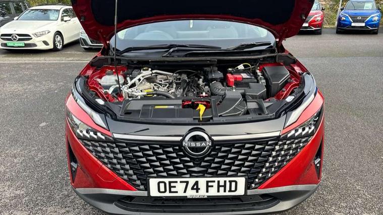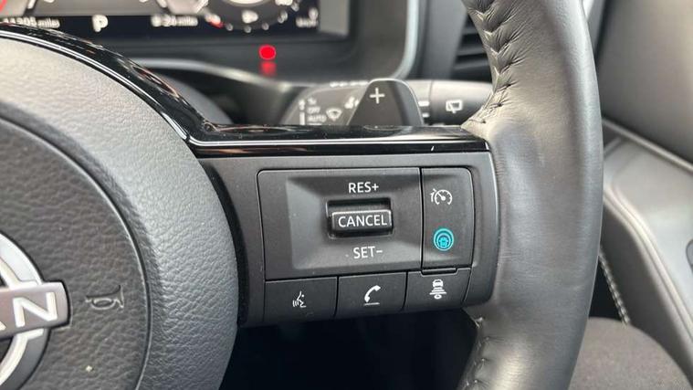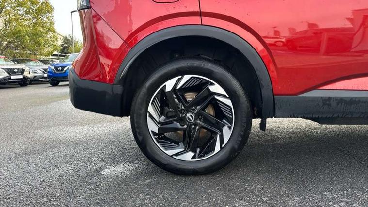2 front USB-C ports, 2 rear USB-C ports, 360 degree Intelligent around view monitor with moving object detection, Blind spot intervention, Blind spot warning, Drive assist custom mode, Drive modes (sport, normal, eco), Driver drowsiness and attention warning, Electric speed sensitive power steering, Emergency and breakdown call, Emergency lane keep assist, Emergency Stop Signal (ESS), Engine start/stop button, Event data recorder, Front and rear parking sensors, Full Digital 12.3" TFT Digital Combimeter, Google virtual personal assistance, Idle stop/start system, In-car WIFI hotspot, Intelligent Cruise control (ICC), Intelligent forward collision warning, Intelligent speed assist, Lane departure warning system, Nissan connect 12.3 inch touchscreen infotainment system, Nissan connect navigation with google maps, Nissan connect services 2.0 (Google Automotive System), Outside temperature sensor, Rear cross traffic alert, Reversing detection, Traffic jam pilot, Wireless Apple CarPlay/Android Auto, Wireless charging pad, Limited slip differential, 6 speakers, AM/FM audio system with DAB, Bluetooth audio streaming, Auto rear wiper when reversing, Body colour mirror caps, Body coloured door handles, Bodyside mouldings, Chrome side window finisher, Electric auto folding door mirrors, Electrically adjustable and heated door mirrors with LED turn indicator, Follow me home headlights, High beam assist, Intelligent auto headlights, LED 3rd brake light, LED daytime running lights, LED Headlights, LED rear lights, One touch front and rear electric windows with remote opening and closing, One touch passenger window, Partially body coloured bumpers, Rear privacy glass, Rear roof spoiler, Rear side wing doors, Rear styling plate, Shark fin antenna, Splash free rain sensing wipers, Super UV and infrared cut glass, Three blink turn signal, 3 bench rear seats in 2nd row, 3 rear headrests, 60/40 split folding rear seat bench, Chrome interior door handles, Cloth upholstery, Dark headlining, Driver seat back pocket, Dual zone automatic climate control with pollen filter, Front door with bottle holders, Height adjustable front headrests, Luggage board system, Luggage space lighting, Multifunction steering wheel, Passenger seat back pocket, Rear door bottle holders, RGB ambient light (Full area coverage), Single front passenger seat, Smooth leather steering wheel, Steering wheel gearshift paddles, Tilt/telescopic adjustable steering wheel, Two rear isofix child seat anchorage points with top tether, 3x3 point rear seatbelt pretensioners + load limiters, Autonomous emergency braking, Child locks on rear doors, Curtain and front side, far side airbags, Driver and passenger airbags, Driver, passenger and 2nd row rear seat belt reminder, Electric handbrake with auto hold function, Front seatbelt pretensioners + load limiters, Height adjustable front seatbelts, Hill start assist, intelligent front emergency braking, Rear automatic braking, Tyre pressure monitoring system, Vehicle dynamic control, Engine immobiliser, Intelligent key with walk away lock and approach unlock functions, Remote central door locking with deadlocking, Thatcham alarm, 18" Diamond cut alloy wheels, Tyre puncture repair kit,