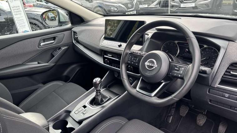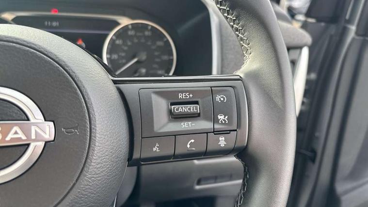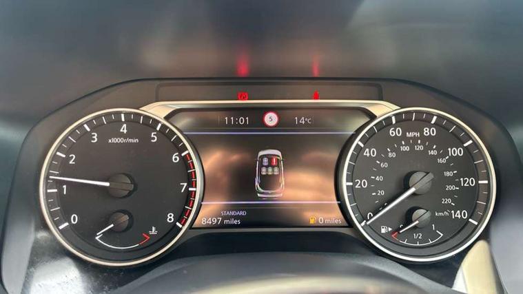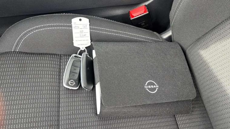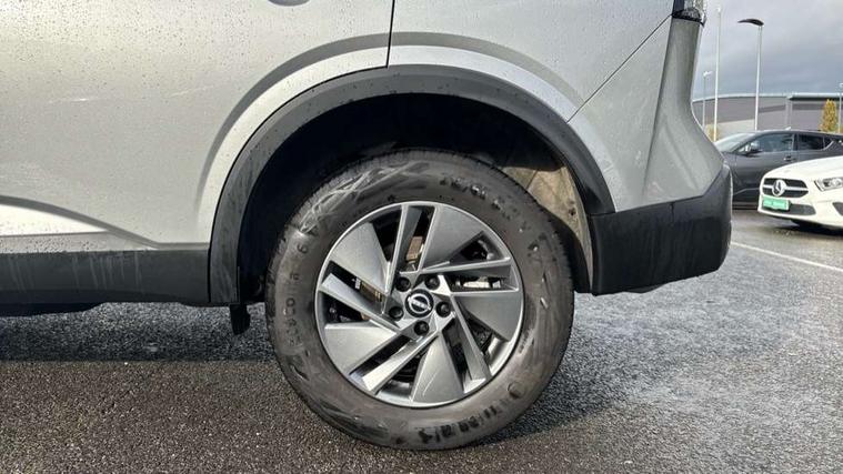 2 front USB-C ports, 7" High definition full colour TFT screen combimeter, Blind spot intervention, Blind spot warning, Drive assist custom mode, Drive modes (sport, normal, eco), Driver drowsiness and attention warning, Electric speed sensitive power steering, Emergency and breakdown call, Emergency lane keep assist, Emergency Stop Signal (ESS), Engine start/stop button, Event data recorder, Idle stop/start system, Intelligent Cruise control (ICC), Intelligent forward collision warning, Intelligent speed assist, Lane departure warning system, Nissan connect 12.3 inch touchscreen infotainment system, Outside temperature sensor, Rear cross traffic alert, Rear parking sensors, Rear view camera, Reversing detection, Wireless Apple CarPlay and wired Android Auto, Limited slip differential, 6 speakers, AM/FM audio system with DAB, Bluetooth audio streaming, Auto rear wiper when reversing, Body colour mirror caps, Body coloured door handles, Bodyside mouldings, Chrome side window finisher, Electric auto folding door mirrors, Electrically adjustable and heated door mirrors with LED turn indicator, Follow me home headlights, High beam assist, Intelligent auto headlights, LED 3rd brake light, LED daytime running lights, LED Headlights, LED rear lights, One touch front and rear electric windows with remote opening and closing, One touch passenger window, Partially body coloured bumpers, Rear roof spoiler, Rear side wing doors, Shark fin antenna, Splash free rain sensing wipers, Three blink turn signal, 3 bench rear seats in 2nd row, 3 rear headrests, 60/40 split folding rear seat bench, Chrome interior door handles, Cloth upholstery, Dark headlining, Dual zone automatic climate control with pollen filter, Front door with bottle holders, Height adjustable front headrests, Leather shift knob, Luggage space lighting, Multifunction steering wheel, Passenger seat back pocket, Rear door bottle holders, Single front passenger seat, TEP steering wheel, Tilt/telescopic adjustable steering wheel, Two rear isofix child seat anchorage points with top tether, White ambient light (Partial area coverage), 3x3 point rear seatbelt pretensioners + load limiters, Autonomous emergency braking, Child locks on rear doors, Curtain and front side, far side airbags, Driver and passenger airbags, Driver, passenger and 2nd row rear seat belt reminder, Electric handbrake with auto hold function, Front seatbelt pretensioners + load limiters, Height adjustable front seatbelts, Hill start assist, intelligent front emergency braking, Rear automatic braking, Tyre pressure monitoring system, Vehicle dynamic control, Engine immobiliser, Intelligent key with walk away lock and approach unlock functions, Remote central door locking with deadlocking, Thatcham alarm, 17" Alloy wheels, Tyre puncture repair kit,
