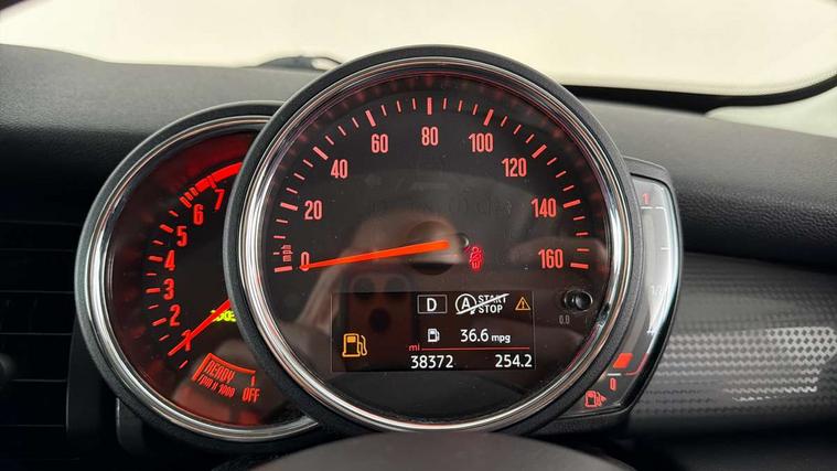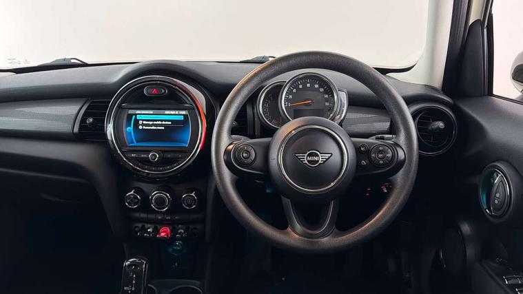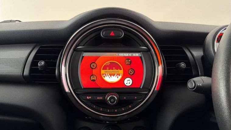 Automatic start/stop function with brake energy recuperation, Compatible mobile phone bluetooth with audio streaming, Electro-mechanical speed dependant steering assistance, Instrument cluster, Mini E-call, MINI TeleServices, On board computer, Service interval indicator, Double Vanos system, Fully variable valve control, Gear change indicator display, High precision injection, Steptronic transmission with double clutch, 6.5" touchscreen with LED ring, FM tuner and DAB digital radio, Automatic headlight activation switch, Body colour fuel filler cap, Chrome border high gloss black slats radiator grille, Dynamic brake lights, Electric front+rear windows, Heated rear window, Heated windscreen washer jets, LED headlight with closed ring and daytime driving lights, Left exhaust tailpipe with chrome finisher, Metal door sill strips with MINI imprint, Model logo Cooper on right of tailgate, Rain sensor window wipers, Rear fog lights, Rear LED lights with union jack design, Rear window wiper, Side scuttle panel with integrated indicator, Sun/heat protection glass, White indicator lenses, 12V Accessory socket in centre console, 4 lashing eyes in luggage compartment, 60/40 split folding rear seat, Chrome interior highlights, Colour line - Carbon black, Cupholders, Front and rear head restraints, Front and rear isofix with front passenger airbag deactivation, Glove compartment, Height and length steering column adjustment, Interior lighting with 12 basic colours selectable via toggle switch in roof, Knee roll and door armrests, Leather gearshift lever and handbrake gaiters, LED reading lights, vanity mirror lights, front foot well light and spotlight on front seats, Manual air conditioning, Mechanical seat adjustment, driver seat height adjust, forward/back and front seats backrest, Mini logo projection on floor from drivers exterior mirror, Multifunction steering wheel, Satellite grey headlining, Satellite grey headlining including grab handles and clothes hooks, Storage compartments in doors, Sunvisors with vanity mirrors, Tool kit, 3 point seatbelts on all five seats, 6 Airbags - front, side, head and seat belt tensioners, Anti-lock braking system (ABS), DSC - Dynamic Stability Control, Front and rear disc brakes, Hill start assist, Single tone fanfare horn, Tyre pressure monitoring system, Alarm system with tilt sensor, monitoring doors, bonnet interior and tailgate, Electronic vehicle immobiliser, Start/stop toggle with keyless go, Tyre repair kit,
