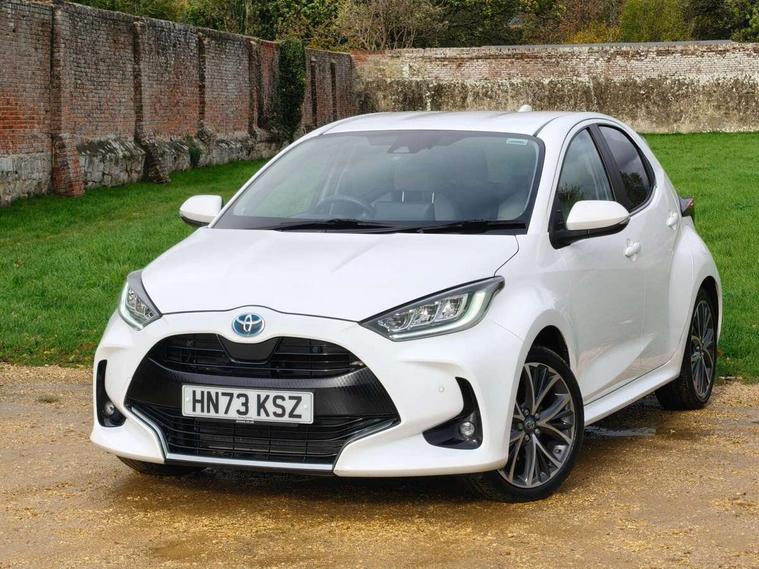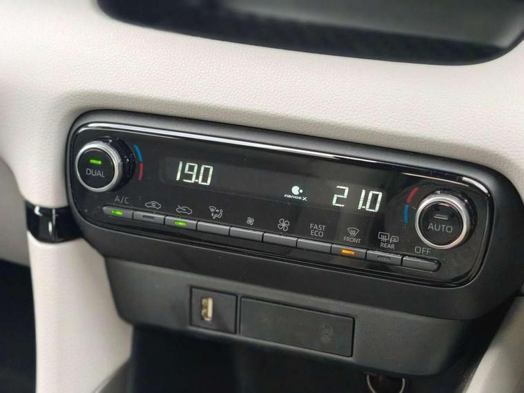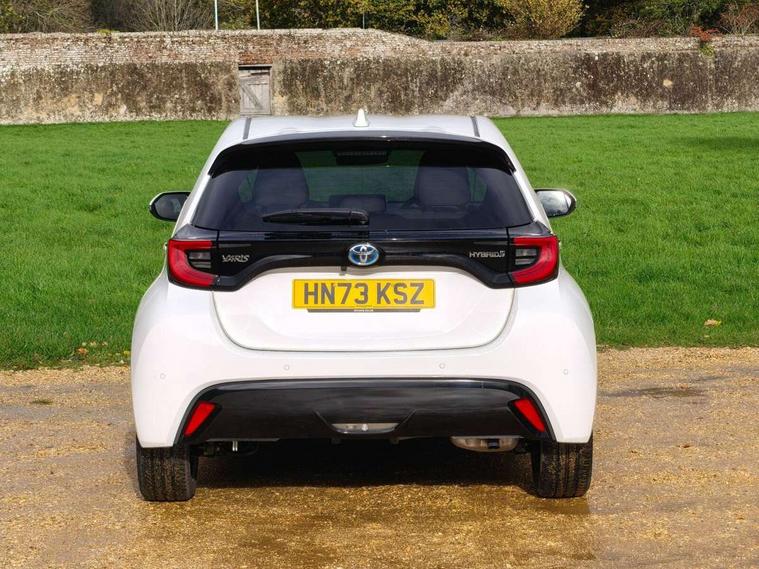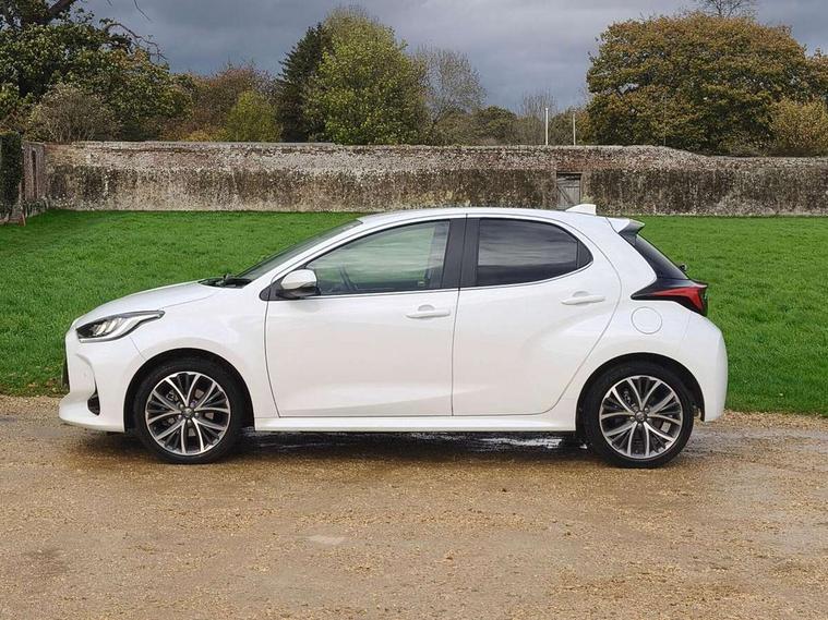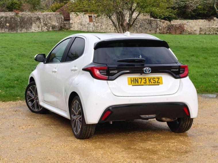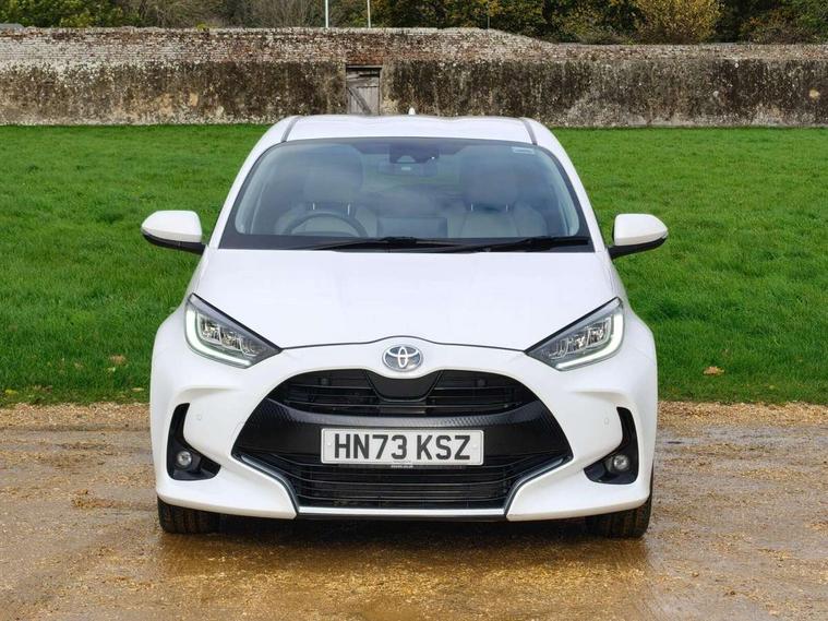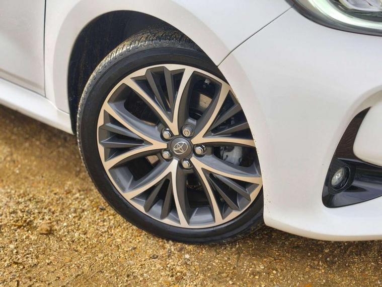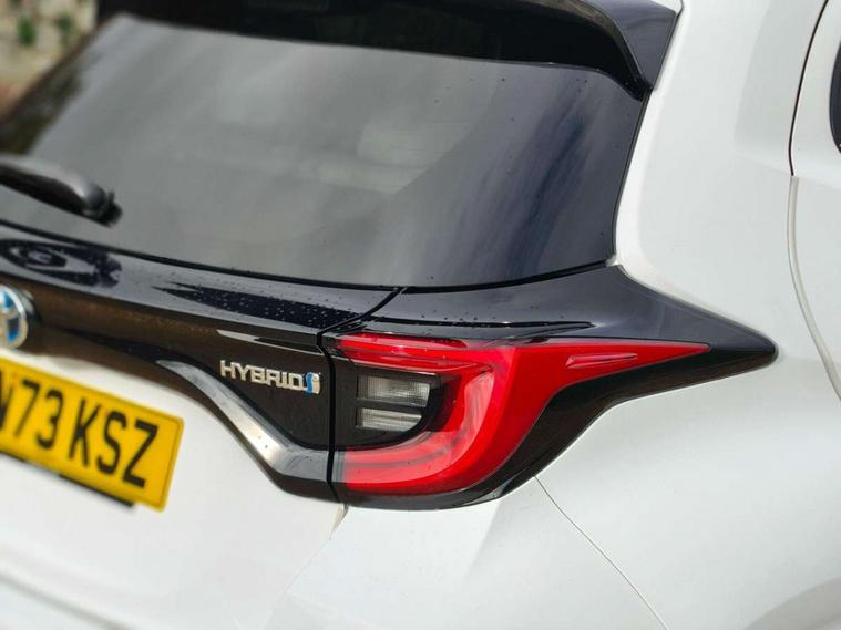 Adaptive cruise control, Adjustable speed limit with speed warning, Blind spot monitoring, Bluetooth connectivity, Colour binocular inspired displays with digital speedometer, E-call, Electric power steering, Hybrid energy display, Multi information display switches on steering wheel, Reversing camera, Smartphone integration with Apple CarPlay and Android auto, Tailgate, Touch 2 navigation system, Voice recognition, Vehicle Stability Control (VSC), 6 speakers, 9" HD multimedia display touch screen with Toyota smart connect, USB connection, Acoustic windscreen glass, Auto windscreen wipers, Automatic headlights, Automatically retractable door mirrors, Body coloured door mirrors, Electric adjustable heated door mirrors, Follow me home headlights, Front auto power windows with anti jam protection, Full LED rear lights, LED daytime running lights, LED front fog lights, LED front light guide, LED Headlights, LED High mounted stop lamp, LED Indicators, LED rear light guide, Manual headlight levelling, Painted chequered front grille, Rain sensor, Rear auto power windows with anti jam protection, Rear privacy glass, Rear side wing doors, Rear spoiler, Rear wiper, Satin lower front grille, Shark fin antenna, Turning signal integrated indicators in door mirrors, Variable front intermittent wipers, 3 adjustable rear headrests, 3 seat bench in 2nd row, 3 spoke leather steering wheel, 60/40 split folding rear seat, Active headrests, Adjustable boot height, Coat hooks in rear grab handles, Cup holders (2 front & door), Data Communication Module (DCM) connected services, Dual zone automatic air conditioning, Fabric seat with partial synthetic leather upholstery, Front armrest, Front sport seats, Glovebox, Grey roof lining, Height adjustable driver's seat, Height adjustable passenger seat, Isofix seat fixing, Leather gearshift, Map pockets on the backs of the front seats, Pollen filter, Shopping bag hooks, Single front passenger seat, Tilt/telescopic steering column, Parking pack - Yaris, 3 point seatbelts on all rear seats, ABS+EBD+Brake assist, Electronic parking brake, Emergency brake light system (EBS), Front passenger airbag on/off switch, Front seatbelt reminder, Hill start assist control (HAC), Rear child proof door locks, Rear seat belt reminder, Supplemental Restraint System (SRS) 8 airbags: Driver & passenger's airbags, dual side curtain airbags, side impact airbags, front centre airbag, Toyota Safety Sense 2, Precollison + Night time Pedestrian & Cyclist Detection, Lane Trace Assist, Auto High Beam, Intelligent ACC & Road Sign Assist, Tyre pressure warning system, 2x Master key, Alarm/immobiliser, Keyless smart entry with push button start, Remote AC via MyT, Remote locking via MyT, Remote powered central double locking doors, Satin chrome interior styling, Soft touch instrument panel, Space saver spare wheel,