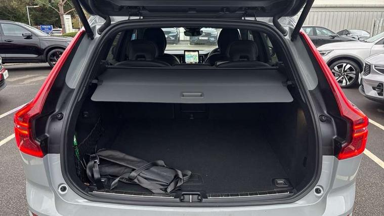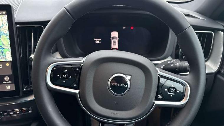 11.2" centre console touch screen, 12.3" Progressive Driver Display, 360 degree surround view parking camera with side proximity sensors, Adaptive cruise control, Adjustable steering wheel force, Android auto (Wired), Apple carplay (wired), Bluetooth handsfree system, Driver alert control with lane keeping aid, Emergency services call system, Front and rear park assist, Google Automotive Services, Intelligent speed assistance, Oncoming Lane Mitigation, PAS, Power operated tailgate with handsfree opening and closing, Service interval indicator, Speed limiter, Speed sensitive steering, Trip computer, Volvo cars services with app, Volvo on call with App, Wireless/Inductive Mobile Phone Charging, 8 speed automatic transmission with start/stop + manual change functions, DAB Digital radio, Premium Sound by Harman Kardon, dirac unison, dolby pro logic II surround sound, 13 speakers/600W output and fresh air subwoofer, Steering wheel remote infotainment controls, Adaptive brake lights with high level LED brake lights, Auto dimming interior + exterior mirrors, Automatic headlight levelling system, Automatic LED Headlights + Active high beam incorporating daytime running lights, Dark tinted windows for rear side windows and cargo area, Electric adjustable/heated/auto power folding door mirrors, Electric front+rear windows, Front aluminium tread plates, Heated front windscreen, High gloss black door mirrors and window surround, High gloss black front and rear bumper decoratives, High gloss black front grille, Surround, Strikethrough and Ironmark, High gloss black rear model, engine and volvo logo badges, Home safe and approach lighting, Integrated roof rails in high gloss black, Puddle lights, Rain sensor with automatic windscreen wiper activation, Rear side wing doors, Rear wiper, Roof antenna, Roof spoiler, Tinted windscreen, Visible VIN plate, 12V socket in front tunnel console and luggage compartment, 3 seat bench in 2nd row, 3 Spoke tailored steering wheel with chrome trim, 4 Zone electronic climate control, A-pillar parking ticket holder, Air purifier particulate matter (PM) 2.5 filter, B Pillar ventilation, Bright metal luggage scuff plate, Centre console cupholders and storage, Charcoal floor mats, Contour sports seats with nappa soft leather/textile upholstery, Front and rear courtesy lights, Front and rear door pocket illumination, Front cupholder illumination, Front footwell illumination, Front reading lights, Front seat cushion extensions, Glovebox compartment with illumination, Head restraints for all seats, Heated front seats, Heated steering wheel, Height/reach adjustable steering column, Illuminated luggage compartment, Illuminated vanity mirrors + ticket holder, Inner door release handle illumination, ISOFIX attachment on outer rear seats, Load cover, Load protection net, Multi directional lumbar support, Power driver seat with memory + exterior mirrors memory, Power height adjustable passenger seat, Power passenger seat with memory, Rear armrest with cupholder, Rear footwell and front and rear side step illumination, Rear reading lights, Rear seat concealed storage, Single front passenger seat, Tailgate illumination and ambient door lighting, Underfloor stowage compartment, Versatile split folding rear seat - 60/40, Driver assist pack without Adaptive cruise control - XC60, 5 three point seatbelts, City safety with steering support with Pedestrian + cyclist + front collision warning with full auto brake and rear auto brake, Drivers knee airbag, Dual stage driver/passenger airbags, Electronic parking brake with auto hold, First aid kit, Front seats SIPS airbags, Hill descent control - Off-road drive mode, Hill start assist, IC (Inflatable Curtains) - Full Length, Passenger airbag cut-off device, Power child locks on rear doors, Road sign information display, Run off Road Mitigation, Run off Road Protection, Seatbelt reminder and pretensioners, SIPS (Side Impact Protection System), Slippery road and hazard light alert, Stability and Traction Control with Spin control, Engine Drag Control and Corner Traction Control, Tyre pressure monitoring system, Vehicle deceleration control with Anti-lock Brake System, Electronic Brake Distribution and Emergency Brake Assist, Warning triangle, WHIPS whiplash protection system - front, Anti-theft alarm including immobiliser/volume sensor + level sensor, Key integrated remote control central locking + fuel flap with deadlocking system and auto open/close power windows, Keyless Drive (includes Keyless Entry and Keyless Start), Locking wheel nuts, Private locking for tailgate, 21" 5 Double spoke high gloss black alloy wheels, Summer tyres,