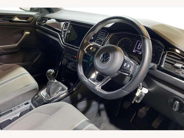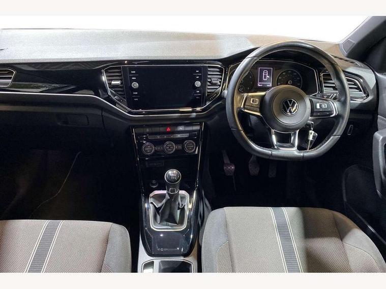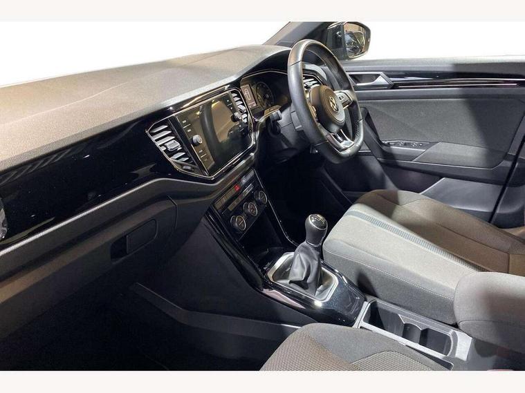 'Lights On' Reminder warning buzzer, Adaptive cruise control, Bluetooth telephone and audio connection for compatible devices, Car information display, Driver tips and journey analysis, Dusk sensor, Emergency call service, Lane assist with warning text instrument cluster, Modified key software - reduce switch off time for key status change to Long no motion, Multifunction camera, Multifunction computer with visual gear change recommendation for fuel consumption, Service interval indicator, Think blue trainer driver tips and journey analysis, Warning sound and light for doors and tailgate open, Warning sound and light for front seatbelts unfastened, Wireless app connect for apple carPlay, Battery regeneration during braking, Start/stop function with battery regeneration, DAB Digital radio, Diversity antenna for FM reception, Multi device interface (MDI) with USB connection, Music playback - MP3, WMA and AAC files, Premium USB cable in choice of either Apple or Android smartphone compatibility, SD card slot, Simultaneous pairing of 2 compatible mobile devices, Single CD player, glovebox mounted, SMS functionality - read, compose and send SMS messages using touch-screen display, Storage compartment with longitudinal and height adjustable in armrest and two rear air vents, Title and cover art display, USB-C Interface and USB charging socket, Auto dimming interior rear view mirror, Automatic coming/leaving home lighting function and daytime running lights, Automatic hazard lights activation under emergency braking, Black grained lower door protectors, Black grained wheel arches, Black roof rails, Body colour door handles, Body colour sports bumpers with silver metallic underbody fascia, Body coloured bumpers and radiator grille with chrome trim and front fog lamps with chrome bezel, Chrome trim on upper and lower radiator grille, Electrically foldable, adjustable and heated door mirrors with puddle lights and reverse activated kerb-view adjustment on passenger's door mirror, Exhaust tailpipes in black, External USB type C socket and charging sockets, Front and rear electric windows, Front windscreen wiper with intermittent wipe and 4 position delay, Fully galvanised body, Heated rear window, High level 3rd brake light, LED headlamps with automatic range adjustment and unique signature LED separate daytime running lights, LED rear number plate lights, LED tail lamp rear comination lamps, Privacy glass, Rain sensor, Rear tinted glass from B-pillar backwards approx 65% tinted, Rear wash/wipe with intermittent wipe setting, Trim strips on grille and vehicle side, Volkswagen roundel, 12V socket in centre console storage area, 3 rear head restraints, 4 load lashing points in luggage compartment, Black decorative trims, Black roof lining, Climate control - 2 zone electronic air conditioning with automatic air recirculation and allergy filter, Door and side trim panel, Drawer under drivers seat, Front centre armrest, Front cupholders x 2, Front seat back storage pockets, Glovebox, Height adjustable front seats, Height/reach adjust steering wheel, Instrument lighting, white adjustable panel illumination, Interior light in footwell, Isofix easy fit child seat preparation for 2 outer rear seats, LED interior light with switch off delay/dimmer and 2 front/rear LED reading lights, Load through provision with single cup holder when folded down, Luggage compartment cover, removable, Luggage compartment lighting, Split folding rear seat backrests with centre armrest, Storage compartment in left and right luggage area, Storage compartment in rear doors, Storage compartments in driver and front passenger doors, Sunvisors with illuminated vanity mirrors, Three spoke multi-function leather trimmed steering wheel and gearknob, White ambient lighting, Black decal on C-pillar pack - T-Roc, 3 rear three point seatbelts, ABS, Curtain airbags, Driver and front passenger safety-optimised head restraints, Drivers and front passengers airbags with passengers deactivation switch, Drivers seatbelt reminder, Electronic parking brake with auto hold, Electronic stability control (ESC) includes ASR, EDL, EDTC and trailer stabilisation function, Front assist with city emergency braking and pedestrian monitoring, Front seat side impact airbags, Predictive pedestrian protection, Rigid safety cell with front and rear crumple zones, Single tone horn, Three point height adjust front seatbelts + pretensioners, Tyre pressure loss indicator, Ventilated front and rear disc brakes, Volkswagen roadside assistance, Alarm with remote central locking and interior protection, Electronic engine immobiliser, Remote central locking with SAFELOCK, radio remote control with 2 remote control folding keys, Piano black decorative inserts in dash, centre console and door panel, 18" Arlo black diamond turned surface alloy wheels with low rolling resistance tyres and anti theft wheel bolts,