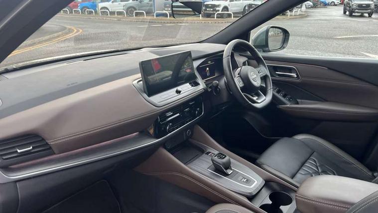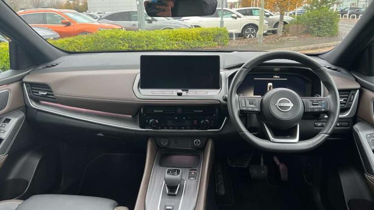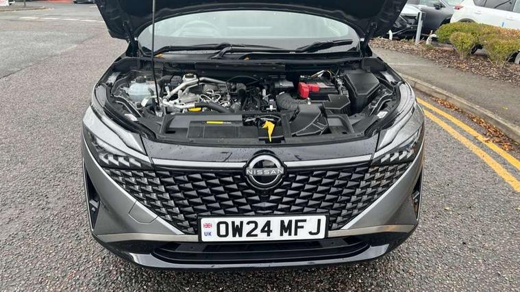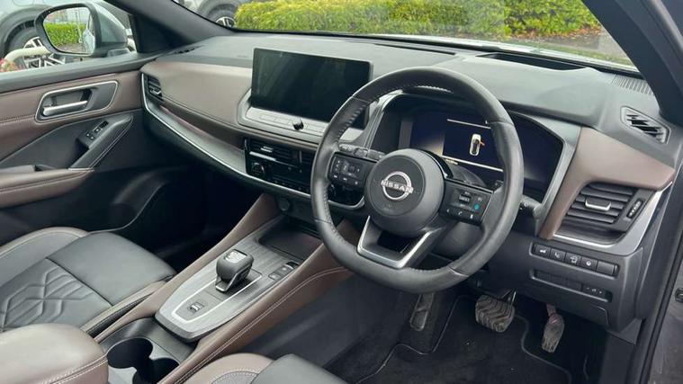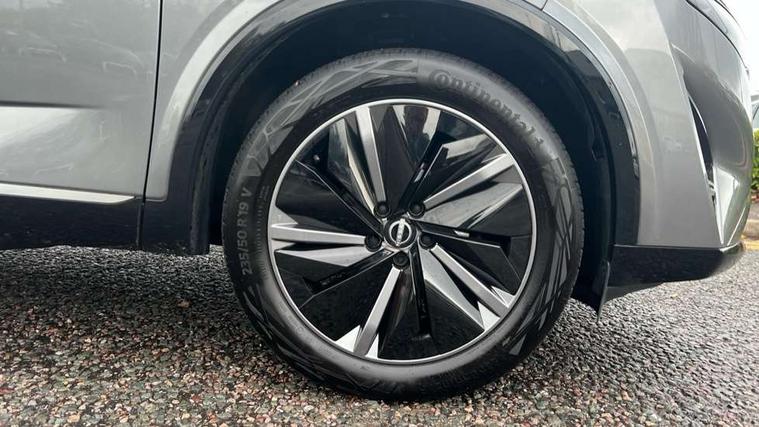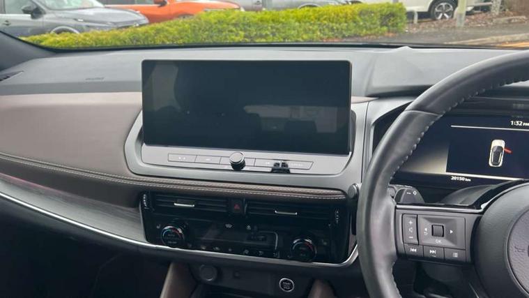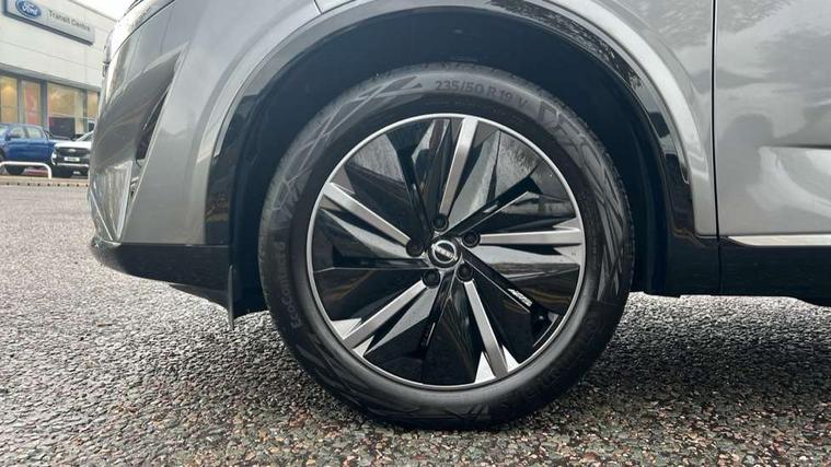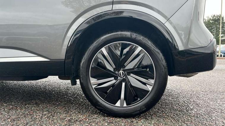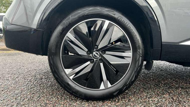 2 front USB-C ports, 2 rear USB-C ports, 360 degree Intelligent around view monitor with moving object detection, Advanced windscreen head up display, Blind spot intervention, Blind spot warning, Drive assist custom mode, Drive modes (sport, normal, eco), Driver drowsiness and attention warning, Electric speed sensitive power steering, Emergency and breakdown call, Emergency lane keep assist, Emergency Stop Signal (ESS), Engine start/stop button, Event data recorder, Front and rear parking sensors, Full Digital 12.3" TFT Digital Combimeter, Google virtual personal assistance, Hands free power tailgate, Idle stop/start system, In-car WIFI hotspot, Intelligent Cruise control (ICC), Intelligent forward collision warning, Intelligent speed assist, Lane departure warning system, Nissan connect 12.3 inch touchscreen infotainment system, Nissan connect navigation with google maps, Nissan connect services 2.0 (Google Automotive System), Outside temperature sensor, Rear cross traffic alert, Reversing detection, Traffic jam pilot, Wireless Apple CarPlay/Android Auto, Wireless charging pad, Limited slip differential, 6 speakers, AM/FM audio system with DAB, Bluetooth audio streaming, Auto dimming frameless rear view mirror, Auto rear wiper when reversing, Body colour mirror caps, Body coloured door handles, Bodyside mouldings, Chrome side window finisher, Electric auto folding door mirrors, Electrically adjustable and heated door mirrors with LED turn indicator, Follow me home headlights, Glossy black bumper inserts and fenders, High beam assist, Intelligent auto headlights, LED 3rd brake light, LED daytime running lights, LED headlights with adaptive driving beam, LED rear lights, LED sequential turn lights, One touch front and rear electric windows with remote opening and closing, One touch passenger window, Partially body coloured bumpers, Rear privacy glass, Rear roof spoiler, Rear side wing doors, Rear styling plate, Reverse tilting door mirrors, Shark fin antenna, Silver roof rails, Splash free rain sensing wipers, Super RED rear LED lights, Super UV and infrared cut glass, Thermaclear heated windscreen, 3 bench rear seats in 2nd row, 3 rear headrests, 60/40 split folding rear seat bench, Chrome interior door handles, Dark headlining, Driver seat back pocket, Dual zone automatic climate control with pollen filter, Fixed Glass roof with electric sunshade, Front door with bottle holders, Heated front seats, Heated steering wheel, Height adjustable front headrests, Luggage board system, Luggage space lighting, Multifunction steering wheel, Passenger seat back pocket, Quilted/PVC upholstery, Rear door bottle holders, RGB ambient light (Full area coverage), Single front passenger seat, Smooth leather steering wheel, Steering wheel gearshift paddles, Tilt/telescopic adjustable steering wheel, Two rear isofix child seat anchorage points with top tether, 3x3 point rear seatbelt pretensioners + load limiters, Autonomous emergency braking, Child locks on rear doors, Curtain and front side, far side airbags, Driver and passenger airbags, Driver, passenger and 2nd row rear seat belt reminder, Electric handbrake with auto hold function, Front seatbelt pretensioners + load limiters, Height adjustable front seatbelts, Hill start assist, intelligent front emergency braking, Rear automatic braking, Tyre pressure monitoring system, Vehicle dynamic control, Engine immobiliser, Intelligent key with walk away lock and approach unlock functions, Remote central door locking with deadlocking, Thatcham alarm, 19" Diamond cut alloy wheels, Tyre puncture repair kit,