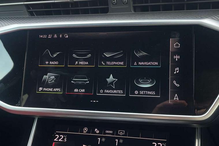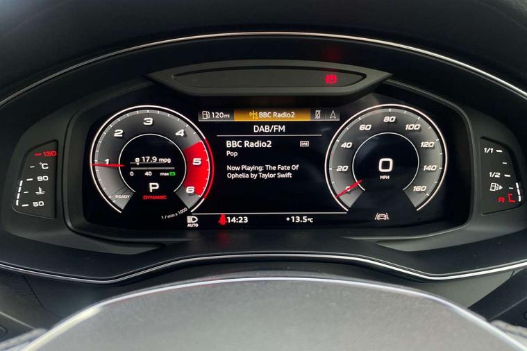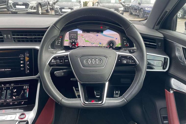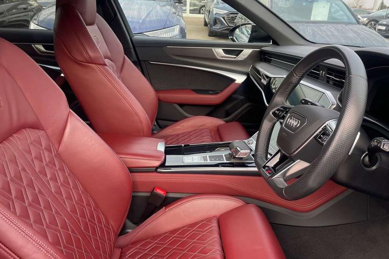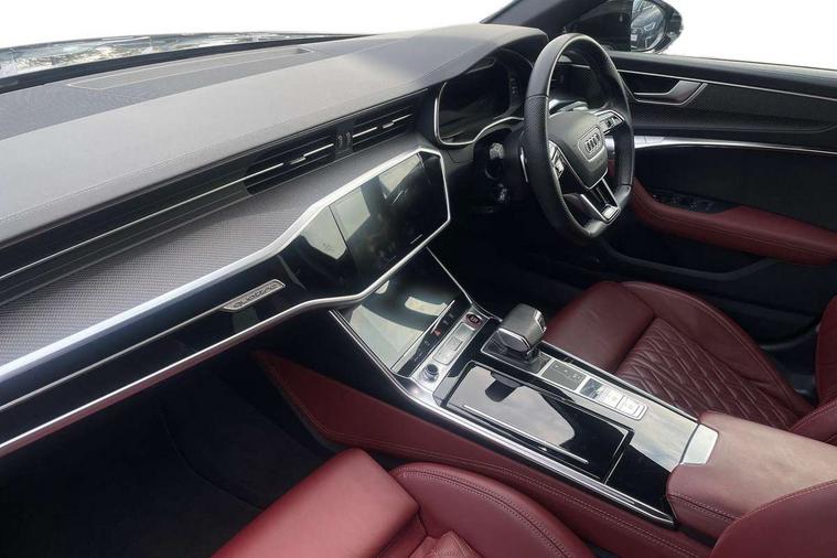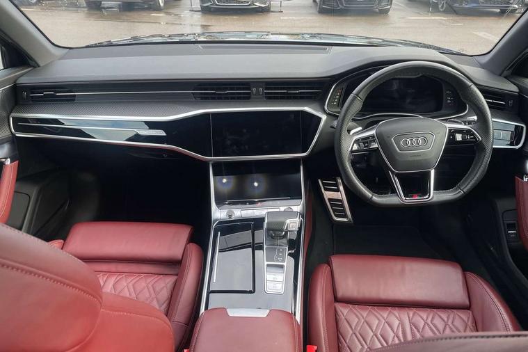 7" high resolution colour driver information display system, Audi connect safety and service (e-call), Audi connect with Amazon Alexa Integration, Audi drive select, Audi parking system plus - acoustic and visual park assist system for front and rear, Audi phone box with wireless charging, Audi smartphone interface includes wireless Apple carplay/Android Auto, Audi virtual cockpit plus with digital 12.3" instrument cluster in full HD with additional dynamic and sport graphic display options, Automatic start/stop system with coasting functionality, Bluetooth interface, Lane departure warning system, MMI navigation plus with MMI touch with twin touch screens (10.1" and 8.6" screens) with haptic and acoustic feedback, Operating buttons in black gloss, Power operated tailgate, Rear view camera, Service interval indicator, Voice control system, 24 litre AdBlue tank, 73 litre fuel tank, Diesel particulate filter, Quattro on demand, Audi front music interface, Audi sound system, Auxiliary input socket, DAB Digital radio, USB connection, Black roof rails, Body colour S specific rear diffuser, Electric front/rear windows, Frameless auto dimming interior rear view mirror, Front intermittent wipers, Gloss black finish for the exterior audi rings and S6 logos, Gloss black highlights on the exterior area of the Audi Single frame, Gloss black highlights on the front and rear bumpers, Gloss black highlights on the radiator grille, Gloss black highlights on the side windows trim strips, Headlight washers, Heat insulating glass in side and rear windows, Heat insulating glass in windshield, LED signature front daytime running light, LED third brake light, Matrix LED headlights, Matt black side air intake grille with inlay in matt aluminium, Privacy glass, Rain and light sensors, Rear roof spoiler, Rear side wing doors, Rear wiper, Signature rear LED light design, 4 way electric lumbar support for driver and front passenger, 4 zone climate control, 40/20/40 split folding 3 rear seat bench in 3 parts with rear centre armrest, Aluminium gear knob, Black cloth headlining, Black steering wheel insert, Electrically adjustable front seats with driver memory, Front centre armrest, Front head restraints, Heated front seats, Height/reach adjust steering wheel, Illuminated door sill trims with S logo, Illuminated sun visors with vanity mirrors, ISOFIX child seat mounting and Top Tether with front passenger airbag deactivation, Luggage compartment system, Rear headrests, Single front passenger seat, Stainless steel pedals and foot rest, Valcona Leather with contrast stitching and S embossing + front super sport Seats + dinamica door insert, LED Interior Ambient Lighting Pack - A6, Non smoking pack - A6, Storage pack - A6, 3 point seatbelts on all seats, Airbags - Front side, front and rear including head, Audi pre-sense front, EBD - Electronic brakeforce distribution, Electromechanical parking brake, Electronic Stability Control (ESC) including ABS, ASR and EDL, Extended pedestrian protection measures, Manual child proof rear door locks, Seatbelt monitoring, Tyre pressure warning light, Warning triangle and first aid kit, Anti theft alarm with tow away protection, Anti-theft wheel bolts and wheel loosening detection, Immobiliser, Keyless Go, Remote central locking, Carbon twill inlays, 20" 5 V spoke star design Audi sport cast aluminium alloy wheels in matt grey look,