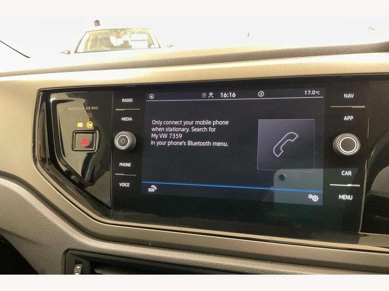 Cruise control + speed limiter, Digital clock, Driver alert system, Emergency call service, Multifunction computer plus, Power assisted speed sensitive steering, Speedo and rev counter, electronic odometer, trip, service interval display and fuel gauge, Start/stop system, Volkswagen connect, Warning buzzer and light for front seatbelts unfastened, Wireless app connect, Battery regeneration during braking, Galvanished body, Diversity antenna for FM reception, Front and rear 6 speakers, Black grille with chrome surround, Black radiator grille with chrome louvres, Body colour bumpers, Body colour door handles, Body colour rear spoiler, Body coloured side sills, Electric front windows, Electrically adjustable and heated door mirrors with reverse activated kerb view adjustment on passenger's side, Front windscreen washers and wipers with 4 speed intermittent delay, Heated rear window with auto timer, High level 3rd brake light, LED daytime running lights, LED rear number plate lights, Rear electric windows, Rear windscreen washer and wiper with interval delay, reverse activated, 2 bag hooks in luggage compartment, 2 front and 2 rear reading lights, 2 front cupholders and 12 V socket with cover, 3 rear head restraints, 4 grab handles, 60/40 split folding rear seat, Centre console storage with open storage compartment, Chrome interior door handles, Driver and front passenger seat height adjustment, Driver and front passenger sunvisors with illuminated vanity mirrors, Dust/pollen filter, Folding rear seat backrest, Front head restraints, Front seat backrest storage pockets, Gear lever gaiter in black trim surround, Glovebox, Handbrake grip button in chrome effect, Height/reach adjustable steering column, Instrument lighting, adjustable panel illumination, Interior light with delay, Isofix Preparation 2 Rear child seats, Leather gear knob and handbrake grip, Leather multifunction steering wheel, Luggage compartment cover, removable, Luggage compartment lighting, Luggage compartment with variable load floor, Storage compartment in front doors, Storage compartment in rear doors, Storage compartment under front seats, Sunglasses holder, 3 point height adj front seatbelts + pretensioners, 3x3 point rear seatbelts, ABS, Automatic post collision braking, Driver/front passenger airbag, Drivers and front passengers safety optimised head restraints, ESP with EDL + ASR, Front and rear passenger curtain airbags, Front disc brakes and rear drum brakes, Front passenger airbag deactivation, Front seat side impact airbags, Hill hold control, Hydraulic Brake Assist (HBA), Single tone horn, Tyre pressure monitoring system, Alarm with interior protection and deactivation via infotainment system, Electronic engine immobiliser, Remote central locking with 2 remote folding keys, Air vents in High gloss black, Limestone grey decorative inserts,
