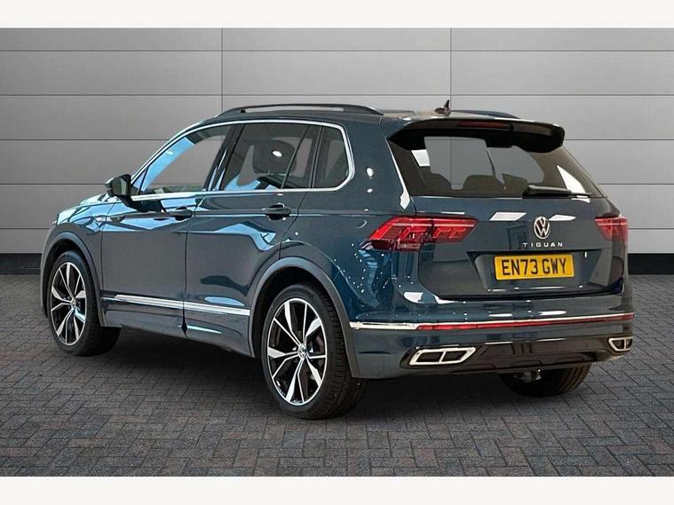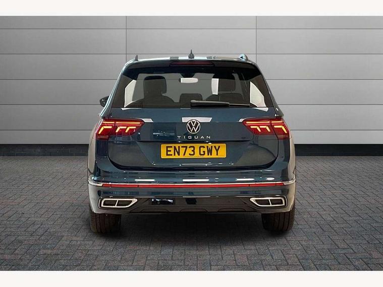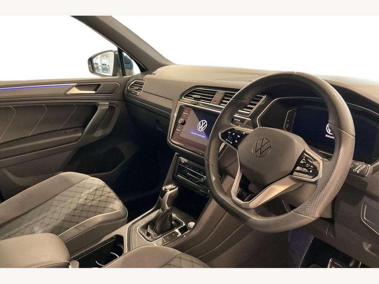 Adaptive cruise control ACC stop and go including speed limiter, App-Connect incl. App-Connect Wireless for Apple CarPlay and Android Auto, Bluetooth phone integration system, Comfort drive travel assist, Digital cockpit pro, Driver alert system, Driver profile selection, Dynamic road sign display, eCall emergency call system, Electromechanical speed sensitive power steering, Emergency assist, Front and rear parking distance sensors, Instrument cluster mph speedometer Great Britain, Lane keeping system Lane Assist, Lights on warning, Multifunction front facing camera, Outside temperature display, Premium multifunction display with multi colour display, Rev counter, Service interval indicator, Speed limit display, Start/stop system with regenerative braking, Trip computer, Warning sound and light for doors and tailgate open, Battery regeneration during braking, Digital radio reception DAB+, Diversity antenna for FM reception, Radio, Auto dimming interior rear view mirror, Automatic headlight control system, Body colored bumpers in R-Line style, Body colored exterior mirror housings, Body colour door handles, Chrome moldings on the side windows, Coming/leaving home lighting function, Dynamic headlight range control, Front and rear electric windows, Heated rear window, High level 3rd brake light, Laminated safety glass windshield, heat and sound insulating, LED rear combination lamps, LED rear number plate lights, License plate carrier in front and rear, Poor weather light and cornering light, Privacy glass for rear side windows and rear window, R Line body kit, R Line side sills, Rain sensor, Rear exhaust tailpipe, Rear fog lamp, Rear side wing doors, Rear spoiler in R style, Rear windscreen washer and wiper with interval delay, Side and rear windows in heat insulating glass, Trailer Stability Programme, Unique R Line badging, Windscreen wipers/ intermittent wipe + 4 position delay, 12V outlet in center console rear and in luggage compartment, 12V outlet in front and tray, 2 LED front reading lights, 2 LED rear reading lights, 3 bench rear seats in 2nd row, 3 rear headrests, Air Care Climatronic 3 zone automatic climate control with enhanced air filter and controls in the rear, Backrest release for left front seat, Black headlining, Brushed stainless steel pedals and footrest, Carpet mats in front and rear with decorative stitching in Gray, Climate control unit rear with touch function, Door and side trim panel in foam film, insert in leatherette, Front footwell illumination, Front scuff plates in aluminum with R-Line logo, Front seats head restraints (x-adjustment), Height/reach adjust steering wheel, Isofix Preparation 2 Rear child seats, Leather gear knob, Rear bench seat asymetrically split folding, longitudinally movable and folding with load-through hatch and center armrest, Remote unlocking for rear seat backrest, Single front passenger seat, Sun visors with illuminated vanity mirrors, Tool kit, Driver assistance pack plus - Tiguan DSG, 3 point seat belt for centre rear seats, 3 point seat belts with seat belt pretensioners for the outer rear seats, Curtain airbags for front and rear passengers, Driver/Front Passenger airbags, Drivers knee airbag, Electronic parking brake with auto hold, Electronic Stability Control with driver steering recommendation, ABS, ASR, EDL, EDTC and trailer stabilization, Front assist with autonomous emergency braking (for Adaptive Cruise Control ACC up to 130 mph), Front disc brakes, Front passenger airbag deactivation, Front side airbags, Height adjustable front 3 point seatbelts + pretensioners, Manual child proof rear door locks, Pedestrian monitoring system, Proactive passenger protection system in combination with front assist, Rear disc brakes, Two tone horn, Warning sound and light for front seat belts if unfastened, Warning triangle, Anti theft alarm system with interior monitoring, backup horn and towing protection, Anti theft wheel bolts, Electronic engine immobiliser, Chrome elements on the mirror switch power window switches and door pulls, Decorative inserts Carbon Gray for dashboard and front door trim panels, Interior door handle in matte chrome,