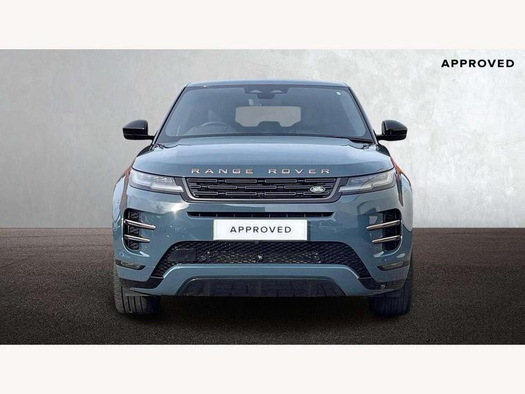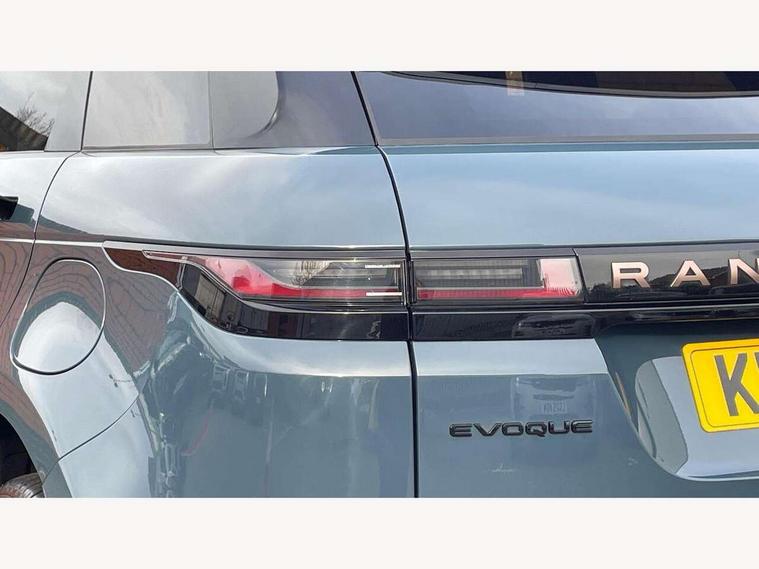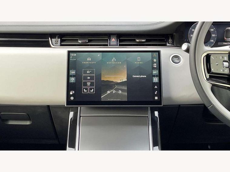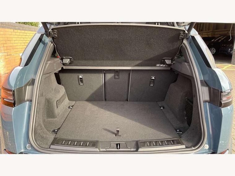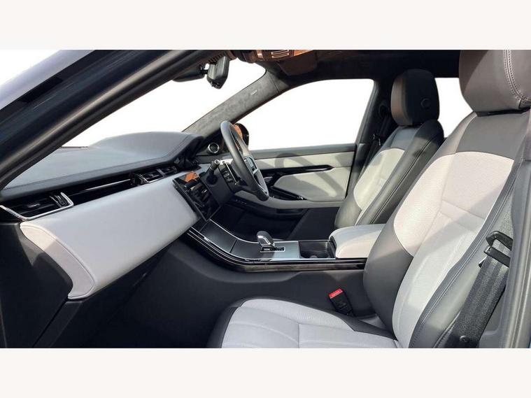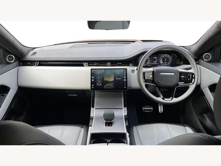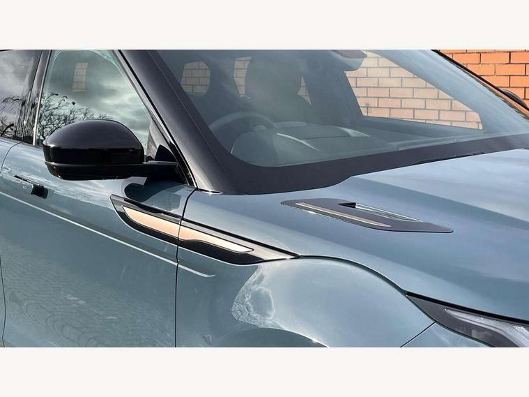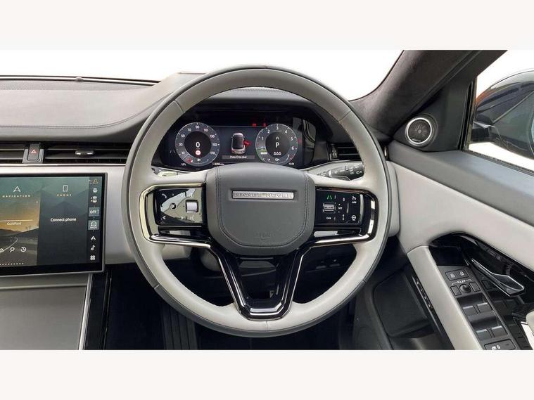 11.4" touch screen, 3D 360 degree surround camera with wade sensing, Adaptive cruise control, Android Auto, Apple car play, Blind spot assist, Bluetooth connectivity, Brake pad wear indicator warning light, Driver condition monitor, eCall emergency system, Eco mode, Electronic power assisted steering (EPAS), Front and rear parking aid, Head up Display, InControl remote, Interactive driver display, Land Rover InControl apps, Lane keep assist, Pivi pro connected includes diamond pivi variant, smart settings, connected navigation pro, nuance speech licence, Powered tailgate/boot lid, Rear collision monitor, Rear traffic monitor, Traffic sign recognition with adaptive speed limiter, Voice control system, Wireless device charging, All terrain progress control, Configurable dynamics, Electric rear axle drive, Home charging cable, Large fuel tank, Passive suspension, Public charging cable, Terrain Response 2, Digital Audio Broadcast radio-DAB, Steering wheel mounted controls, Acoustic laminated windscreen, Auto headlights, Automatic headlight levelling, ClearSight interior rear view mirror, Electric windows with one touch open/close and anti trap, Flush deployable exterior door handles, Front and rear recovery eyes, Front fog lights, Heated rear window with timer, Heated washer jets, Heated windscreen, Pixel LED headlights with signature DRL and LED tail Lights, Power fold, auto-dimming, heated door mirrors with approach lights and auto dimming driver side, Rain sensing windscreen wipers, Range rover branding illuminated metal tread plates in loadspace and row 1 with brand name script and metal in row 2, Rear animated directional indicators, Rear fog lights, Rear side wing doors, Rear wiper, Side repeater indicators in mirror, Sliding panoramic roof with powered sunblind, Tailgate spoiler, Third brake light, Winter wiper park position, 14 way driver memory electric front seats with 2 way manual headrests + 4 way lumbar support, bolsters, 40:20:40 split folding rear seats with centre headrest and armrest, Ambient interior lighting, Bright metal pedals, Cabin Air Purification plus, Configurable cabin lighting, Customer configurable single point entry, Electrically adjustable steering column with memory function and easy entry/exit, Front and rear cupholders, Heated and cooled front seats, Heated rear seats, Heated steering wheel, Isofix system on outer rear seats, Overhead lighting console, Overhead stowage for sunglasses, Passive front head restraints, Premium carpet mats, Rear air vents, Rear head restraints, Satin chrome gearshift paddles, Single passenger seat, Sunvisors with illuminated vanity mirrors, Twin sliding front centre armrest, Online pack with data plan - Evoque, Power socket pack 2 - Evoque, 3 rear 3 point seatbelts, Anti-lock braking system (ABS), Brake hold function, Customer configurable autolock, DSC - Dynamic Stability Control, Electronic brake force distribution, Electronic parking brake, Electronic traction control, Emergency braking, Front and rear seatbelt reminder, Hill descent control, Hill launch assist, Low traction launch, Occupant protection assist, Passenger seat occupant detector, Power operated child locks, Roll stability control, Six airbags - Driver and passenger airbags/driver knee airbag/front side airbag and curtain airbags, Torque vectoring brake, Tyre pressure monitoring system, Alarm, Immobiliser, Intrusion sensor, Keyless entry, Locking wheel nuts, All season tyres,
