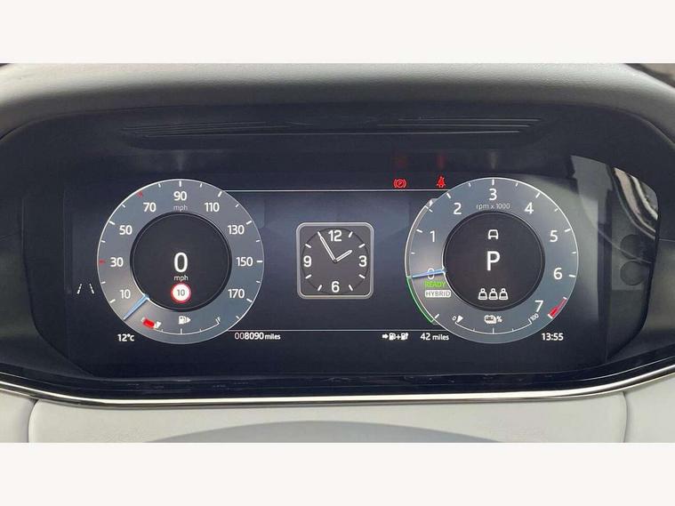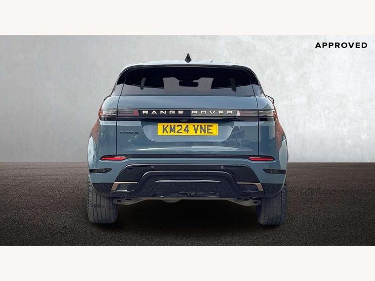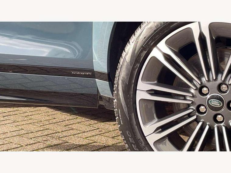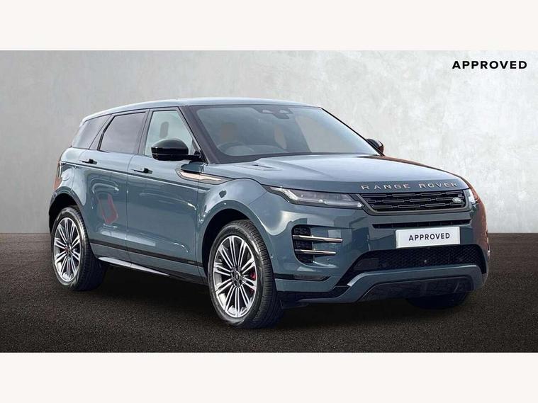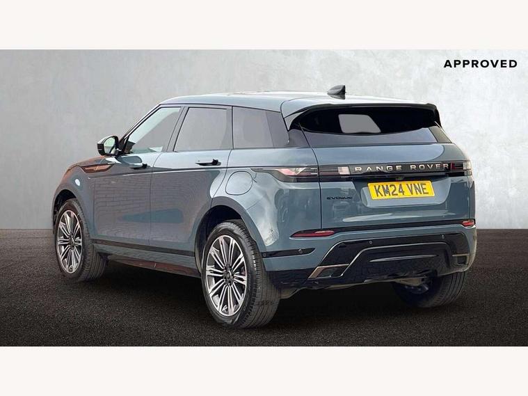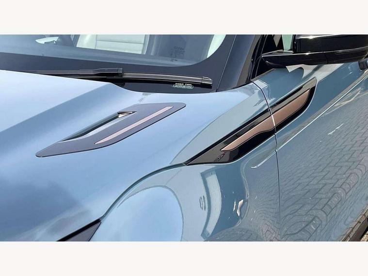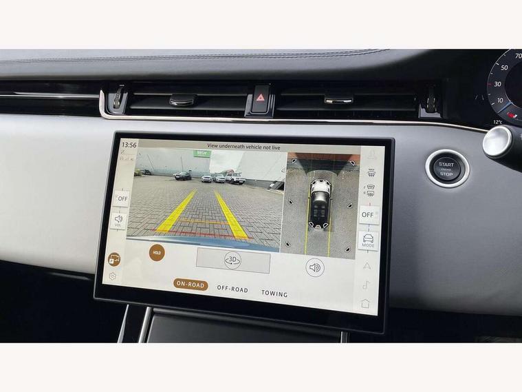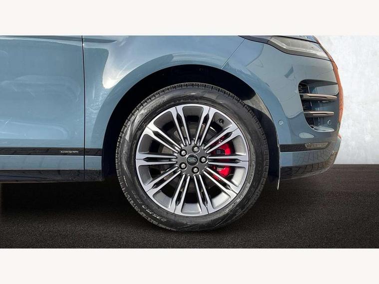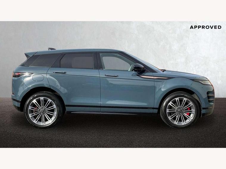 11.4" touch screen, 3D 360 degree surround camera with wade sensing, Adaptive cruise control, Android Auto, Apple car play, Blind spot assist, Bluetooth connectivity, Brake pad wear indicator warning light, Driver condition monitor, eCall emergency system, Eco mode, Electronic power assisted steering (EPAS), Front and rear parking aid, Head up Display, InControl remote, Interactive driver display, Land Rover InControl apps, Lane keep assist, Pivi pro connected includes diamond pivi variant, smart settings, connected navigation pro, nuance speech licence, Powered tailgate/boot lid, Rear collision monitor, Rear traffic monitor, Traffic sign recognition with adaptive speed limiter, Voice control system, Wireless device charging, All terrain progress control, Configurable dynamics, Electric rear axle drive, Home charging cable, Large fuel tank, Passive suspension, Public charging cable, Terrain Response 2, Digital Audio Broadcast radio-DAB, Steering wheel mounted controls, Acoustic laminated windscreen, Auto headlights, Automatic headlight levelling, ClearSight interior rear view mirror, Electric windows with one touch open/close and anti trap, Flush deployable exterior door handles, Front and rear recovery eyes, Front fog lights, Heated rear window with timer, Heated washer jets, Heated windscreen, Pixel LED headlights with signature DRL and LED tail Lights, Power fold, auto-dimming, heated door mirrors with approach lights and auto dimming driver side, Rain sensing windscreen wipers, Range rover branding illuminated metal tread plates in loadspace and row 1 with brand name script and metal in row 2, Rear animated directional indicators, Rear fog lights, Rear side wing doors, Rear wiper, Side repeater indicators in mirror, Sliding panoramic roof with powered sunblind, Tailgate spoiler, Third brake light, Winter wiper park position, 14 way driver memory electric front seats with 2 way manual headrests + 4 way lumbar support, bolsters, 40:20:40 split folding rear seats with centre headrest and armrest, Ambient interior lighting, Bright metal pedals, Cabin Air Purification plus, Configurable cabin lighting, Customer configurable single point entry, Electrically adjustable steering column with memory function and easy entry/exit, Front and rear cupholders, Heated and cooled front seats, Heated rear seats, Heated steering wheel, Isofix system on outer rear seats, Overhead lighting console, Overhead stowage for sunglasses, Passive front head restraints, Premium carpet mats, Rear air vents, Rear head restraints, Satin chrome gearshift paddles, Single passenger seat, Sunvisors with illuminated vanity mirrors, Twin sliding front centre armrest, Online pack with data plan - Evoque, Power socket pack 2 - Evoque, 3 rear 3 point seatbelts, Anti-lock braking system (ABS), Brake hold function, Customer configurable autolock, DSC - Dynamic Stability Control, Electronic brake force distribution, Electronic parking brake, Electronic traction control, Emergency braking, Front and rear seatbelt reminder, Hill descent control, Hill launch assist, Low traction launch, Occupant protection assist, Passenger seat occupant detector, Power operated child locks, Roll stability control, Six airbags - Driver and passenger airbags/driver knee airbag/front side airbag and curtain airbags, Torque vectoring brake, Tyre pressure monitoring system, Alarm, Immobiliser, Intrusion sensor, Keyless entry, Locking wheel nuts, All season tyres,