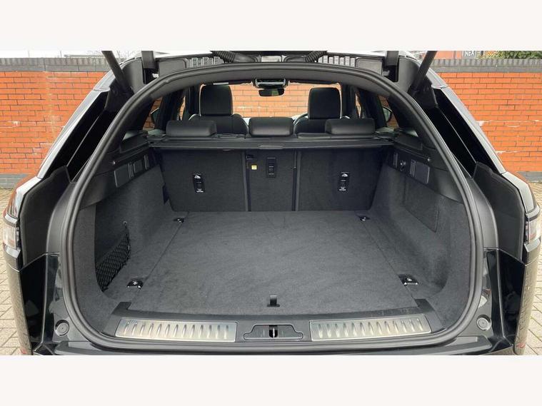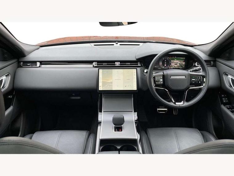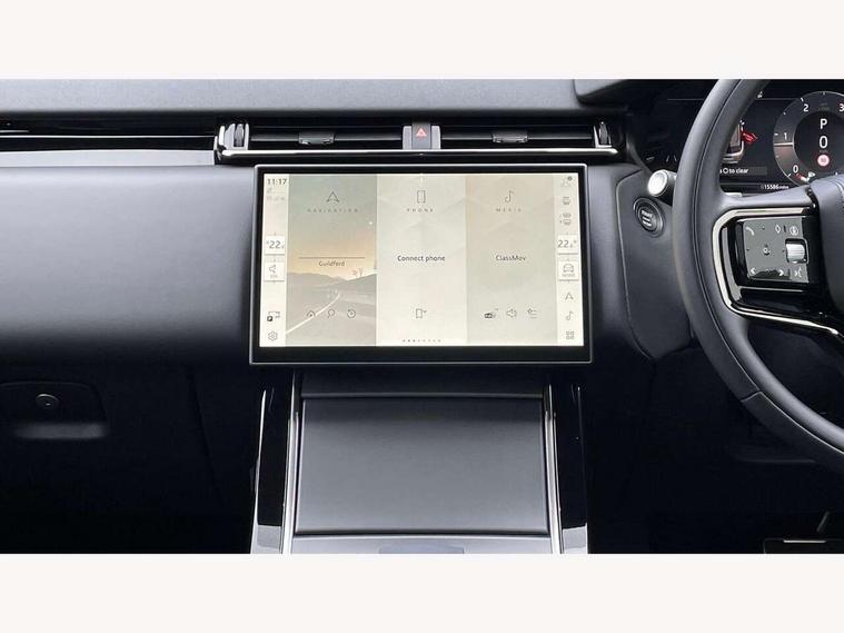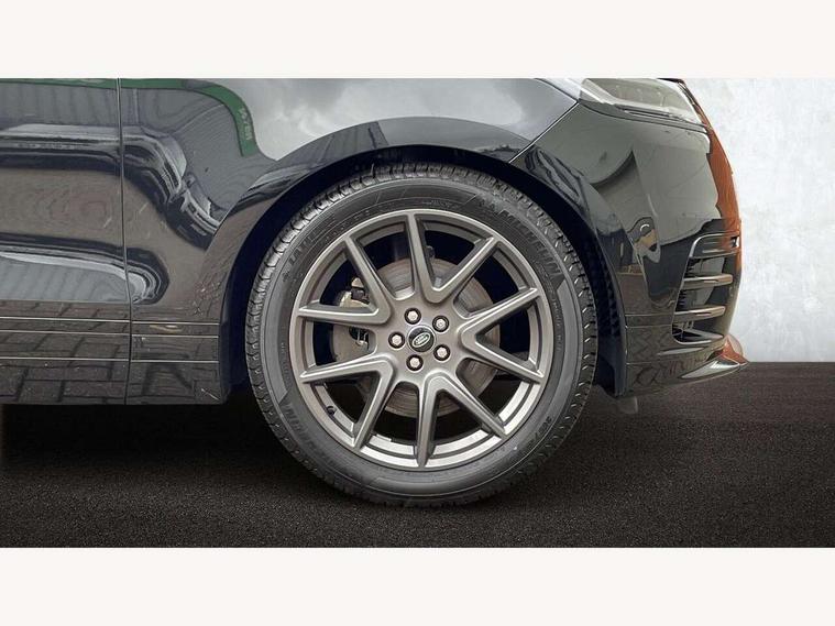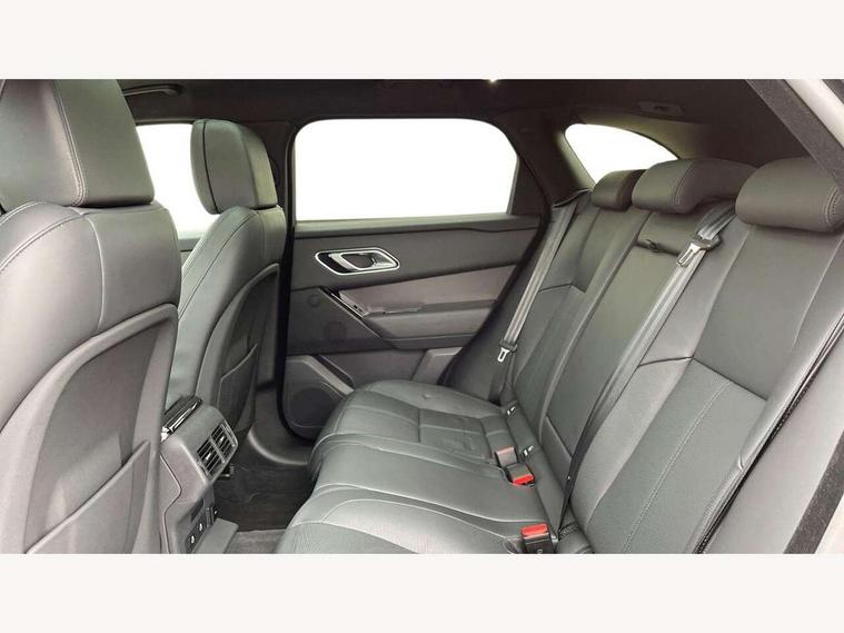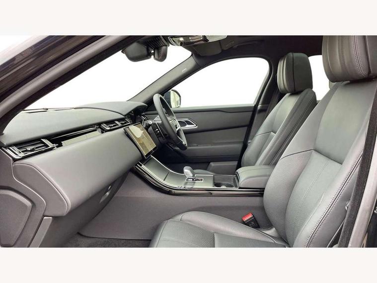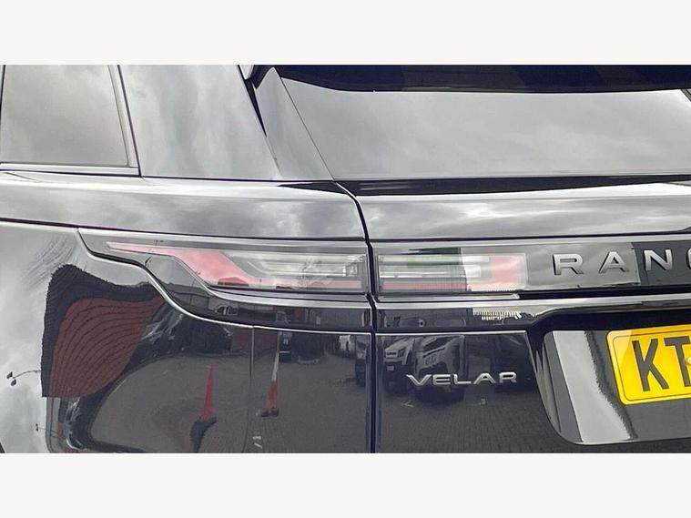 Adaptive cruise control with steering assist, Android Auto, Apple CarPlay, Blind spot assist, Bluetooth connectivity, Brake pad wear indicator warning light, Driver condition monitor, eCall emergency call system, Front and rear parking aid, InControl remote, Land Rover InControl apps, Lane keep assist, Pivi pro with connected navigation, Rear collision monitor, Rear traffic monitor, Service indicator, Speed proportional electronic power assisted steering (EPAS), Traffic sign recognition with adaptive speed limiter, Trip computer, Voice control system, Wireless device charging, 8 speed automatic transmission, Adaptive dynamics, All terrain progress control, Electronic air suspension, Open differential with torque vectoring by braking, Single speed transfer box, DAB radio, Steering wheel mounted controls, 3rd brake light, Acoustic laminated windscreen, Auto dimming interior rear view mirror, Automatic headlamp levelling, Automatic headlights, Body coloured bumpers, Boot protection plate, Electric windows with one touch open/close and anti trap, Flush deployable exterior door handles, Follow me home headlights, Heated rear window with timer, Heated washer jets, Heated windscreen, Metal front tread plates, Metal load space scuff plates, Pixel LED headlights with signature DRL, Power fold, auto-dimming, heated door mirrors with memory and approach lights, Rain sensor windscreen wipers, Rear animated directional indicators, Rear fog lights, Rear side wing doors, Rear wash/wipe, Tailgate/boot lid spoiler, Trailer stability assist, Velar badge, 3 seat bench in 2nd row, Ambient lighting, Bright metal pedals, Carpet mats, Driver/passenger sunvisors with illuminated vanity mirrors, Ebony morzine headlining, Electrically adjustable steering column, Extended leather upgrade, Heated steering wheel, Isofix system on outer rear seats, Loadspace cover, Overhead lighting console, Overhead stowage for sunglasses, Passive front headrests, Rear air vents, Rear centre headrest, Single front passenger seat, Twin front cupholders, Twin sliding front centre armrest, Online pack with data plan - Velar, Power socket pack 2 - Velar, 355mm Front and 325mm Rear brakes, 3x3 point rear seatbelts, Anti-lock braking system (ABS), Cornering brake control, Curtain airbags, Customer configurable autolock, Door side intrusion beams, Driver airbag, DSC - Dynamic Stability Control, Electronic brake force distribution, Electronic parking brake, Electronic traction control, Emergency braking, Front and rear seatbelt reminder, Hill descent control, Hill launch assist, Low traction launch, Passenger airbag, Power operated child locks, Rear airbags, Roll stability control, Side airbags, Tyre pressure monitoring system (TPMS), Global lock and unlock switch on driver door, Immobiliser, Intrusion sensor, Keyless entry, Lock only switch on front passenger door, Locking wheel nuts, Perimetric alarm, Remote central locking, All season tyres,
