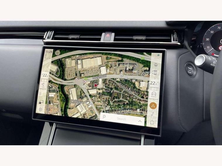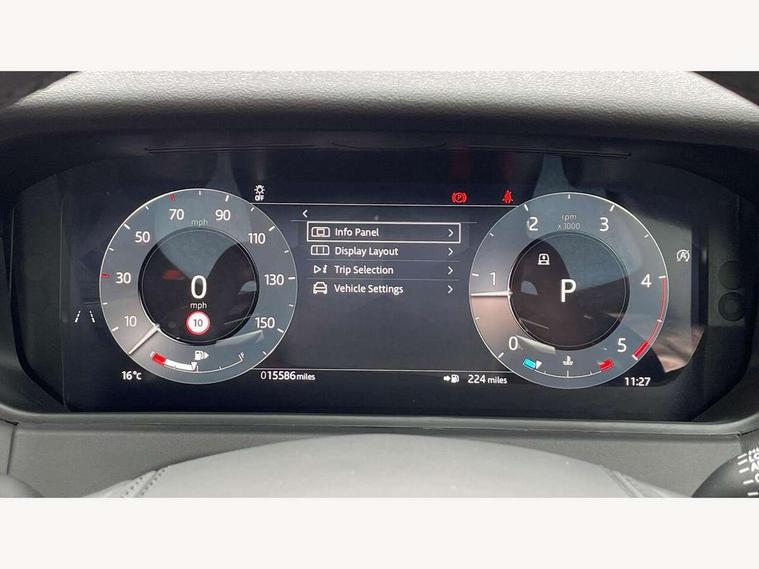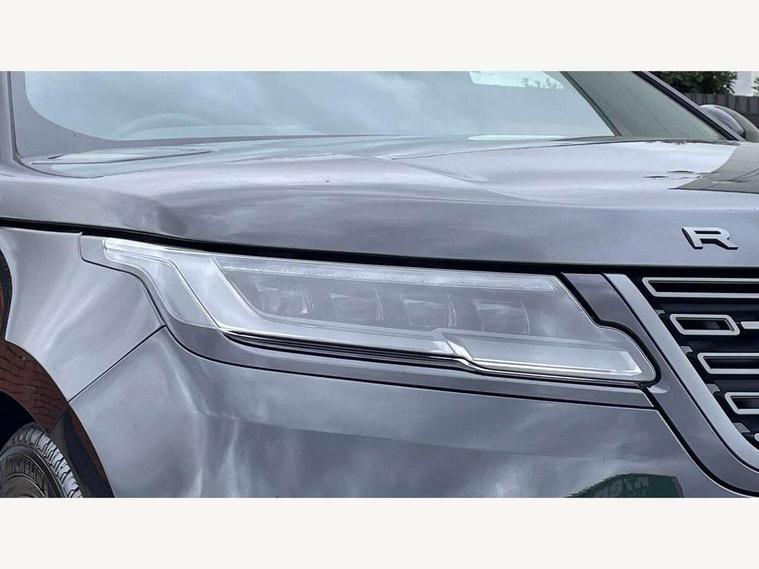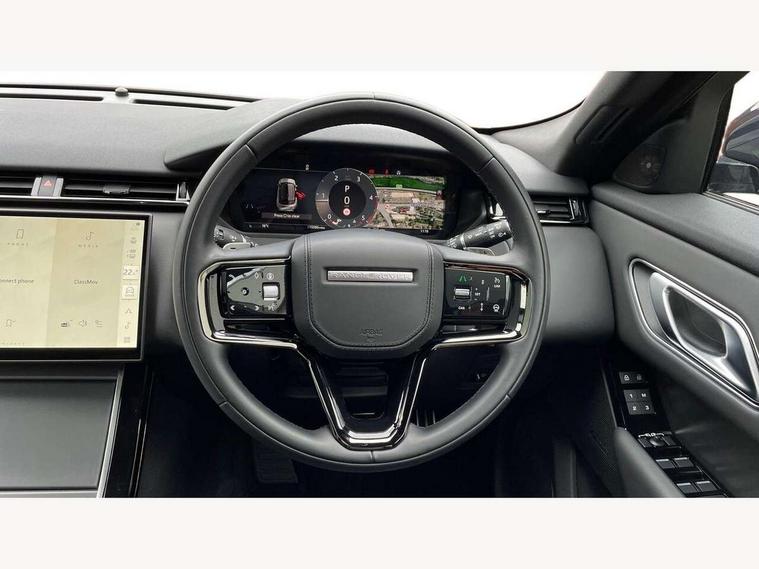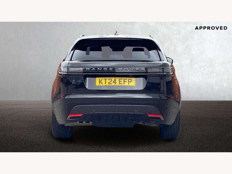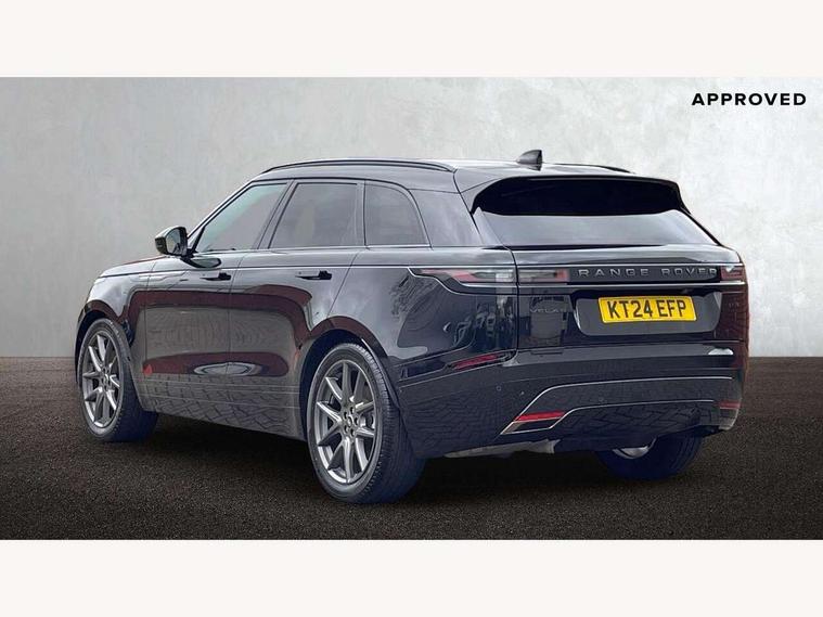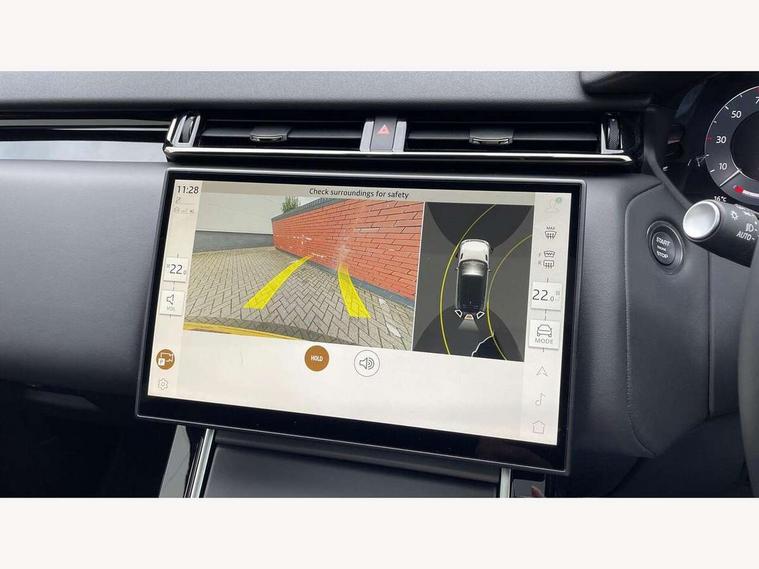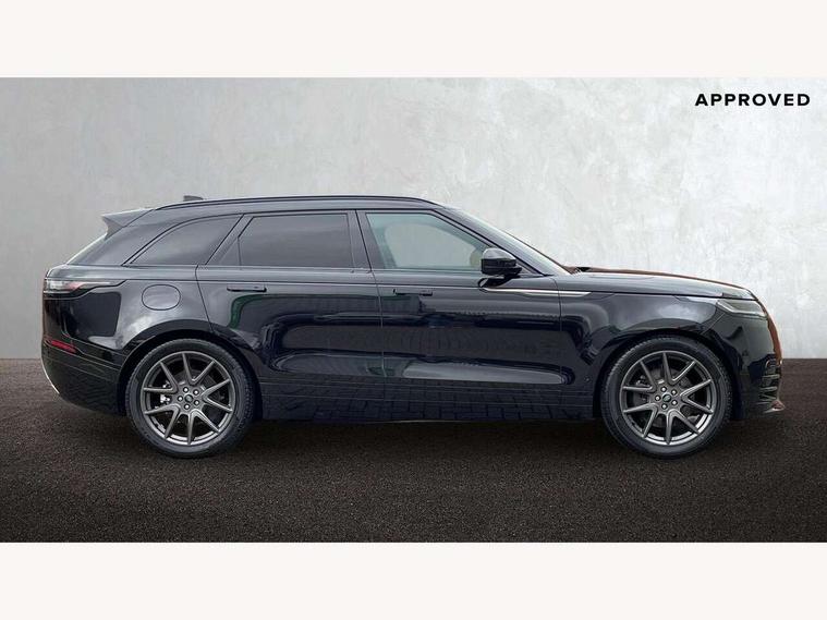 Adaptive cruise control with steering assist, Android Auto, Apple CarPlay, Blind spot assist, Bluetooth connectivity, Brake pad wear indicator warning light, Driver condition monitor, eCall emergency call system, Front and rear parking aid, InControl remote, Land Rover InControl apps, Lane keep assist, Pivi pro with connected navigation, Rear collision monitor, Rear traffic monitor, Service indicator, Speed proportional electronic power assisted steering (EPAS), Traffic sign recognition with adaptive speed limiter, Trip computer, Voice control system, Wireless device charging, 8 speed automatic transmission, Adaptive dynamics, All terrain progress control, Electronic air suspension, Open differential with torque vectoring by braking, Single speed transfer box, DAB radio, Steering wheel mounted controls, 3rd brake light, Acoustic laminated windscreen, Auto dimming interior rear view mirror, Automatic headlamp levelling, Automatic headlights, Body coloured bumpers, Boot protection plate, Electric windows with one touch open/close and anti trap, Flush deployable exterior door handles, Follow me home headlights, Heated rear window with timer, Heated washer jets, Heated windscreen, Metal front tread plates, Metal load space scuff plates, Pixel LED headlights with signature DRL, Power fold, auto-dimming, heated door mirrors with memory and approach lights, Rain sensor windscreen wipers, Rear animated directional indicators, Rear fog lights, Rear side wing doors, Rear wash/wipe, Tailgate/boot lid spoiler, Trailer stability assist, Velar badge, 3 seat bench in 2nd row, Ambient lighting, Bright metal pedals, Carpet mats, Driver/passenger sunvisors with illuminated vanity mirrors, Ebony morzine headlining, Electrically adjustable steering column, Extended leather upgrade, Heated steering wheel, Isofix system on outer rear seats, Loadspace cover, Overhead lighting console, Overhead stowage for sunglasses, Passive front headrests, Rear air vents, Rear centre headrest, Single front passenger seat, Twin front cupholders, Twin sliding front centre armrest, Online pack with data plan - Velar, Power socket pack 2 - Velar, 355mm Front and 325mm Rear brakes, 3x3 point rear seatbelts, Anti-lock braking system (ABS), Cornering brake control, Curtain airbags, Customer configurable autolock, Door side intrusion beams, Driver airbag, DSC - Dynamic Stability Control, Electronic brake force distribution, Electronic parking brake, Electronic traction control, Emergency braking, Front and rear seatbelt reminder, Hill descent control, Hill launch assist, Low traction launch, Passenger airbag, Power operated child locks, Rear airbags, Roll stability control, Side airbags, Tyre pressure monitoring system (TPMS), Global lock and unlock switch on driver door, Immobiliser, Intrusion sensor, Keyless entry, Lock only switch on front passenger door, Locking wheel nuts, Perimetric alarm, Remote central locking, All season tyres,