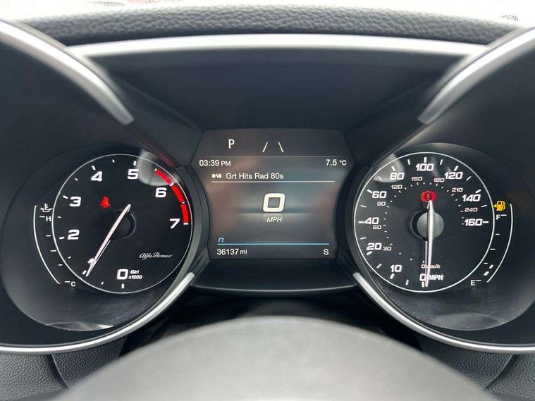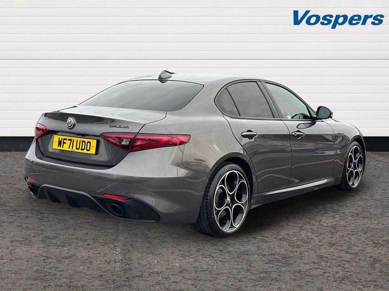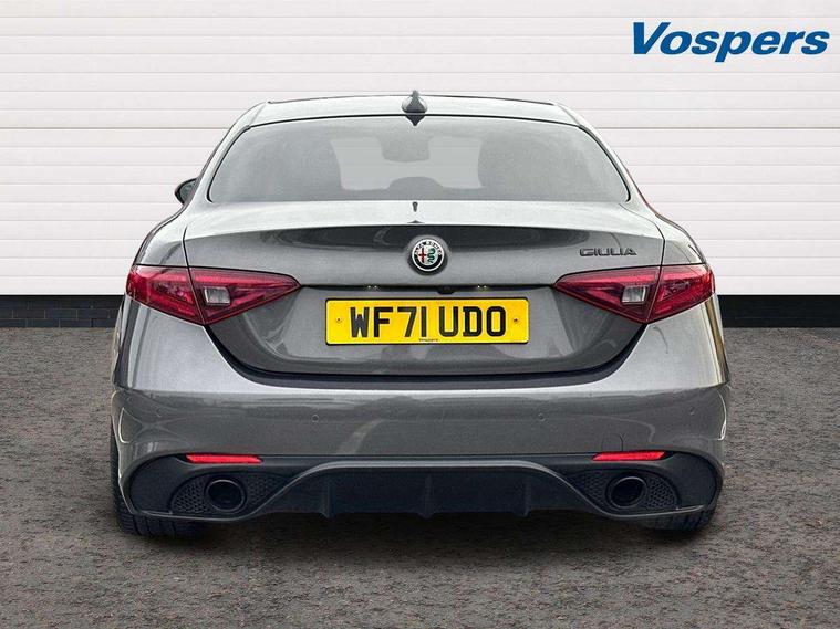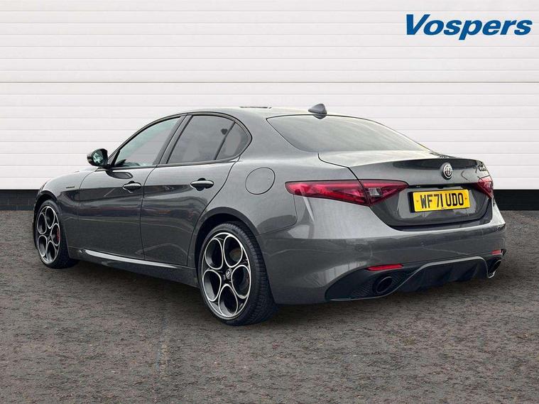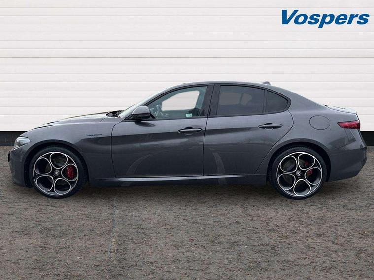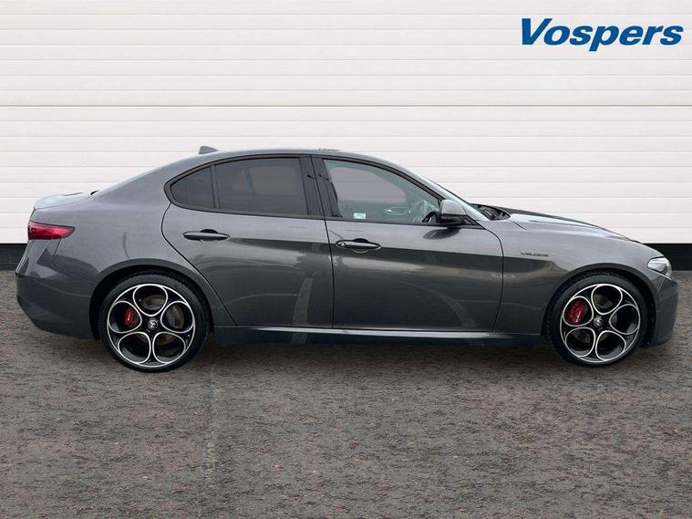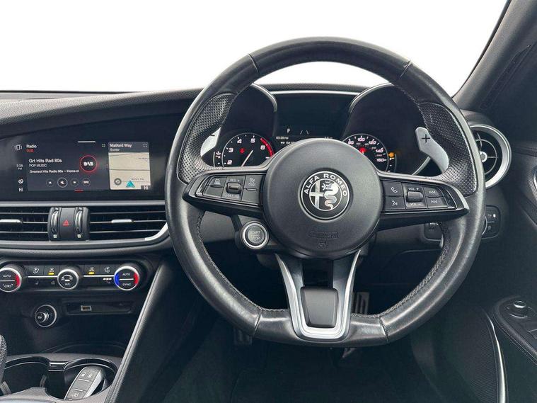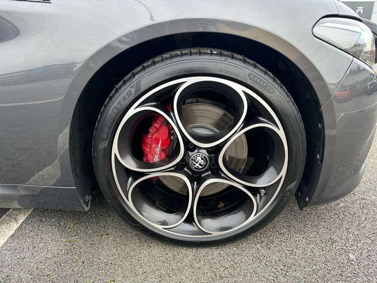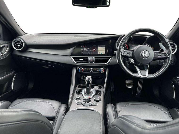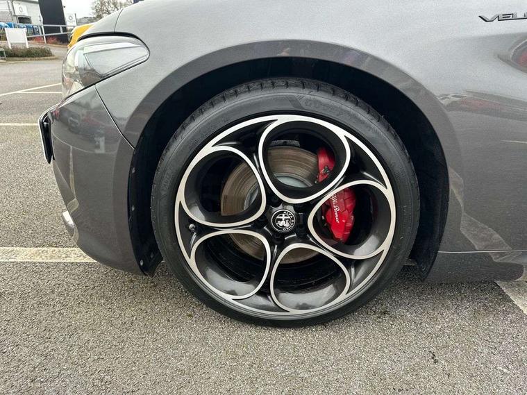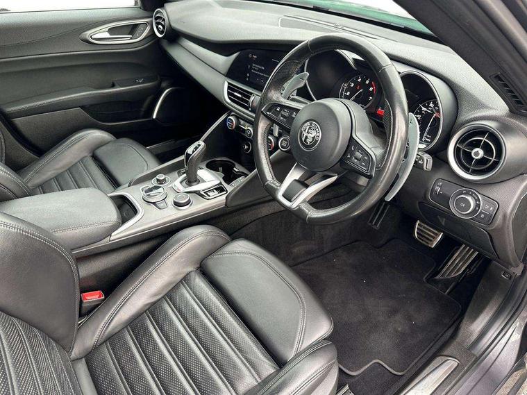 Active cruise control, Alfa connect 3D NAV 8.8'' infotainment system, radio, 3D Sat Nav, MP3, TMC pro, USB, aux-in, bluetooth with 7" TFT instrument display panel, Alfa connect box, Apple car play/Android Auto, Drive mode selector, Electrically operated tailgate, Forward collision warning, Lane departure warning system, PAS, Stop/start system, TMC Pro, Trip computer, West European Map, Wireless charging pad, Digital Audio Broadcast radio-DAB, Satin finish speaker surround system, Steering wheel mounted audio controls, USB in front centre console, USB port front armrest mounted, Adjustable headlights, Aluminium tunnel cover and front door moulding, Automatic front windscreen wipers, Automatic headlights, Dark finish exhaust finisher, Dark finish V grille, Dark tinted rear windows, Dusk sensor, Electrically adjustable and folding door mirrors, Electrochrome rear view mirror, Gloss black side window surrounds, Gloss black windscreen surround, Headlight washers, LED tail and brake lights, Rain sensor, Rear boot, Rear side wing doors, Rear wing door, Sports front and rear bumpers, Sports front splitter and rear diffuser, Veloce badging (front wing), 12V socket in front, 3 individual seats in 2nd row, 40:20:40 split folding rear bench seat, Additional soundproofing, Aluminium kick plate, Aluminium metal sport pedals and footrest, Black painted interior bezels, Boot light, Dark headlining, Dual zone climate control, English handbook, Front headrests, Front passenger seat, Power bolster, Sports leather steering wheel + gearshift, Sports leather upholstery, Sports seats, Start button on steering wheel, Third rear headrest, Cold weather pack - Giulia, Convenience pack - Giulia, Electrically adjustable seats pack, Parking assist pack - Giulia, 3x3 point rear seatbelts, ABS, Autonomous emergency braking, Child locks on rear doors, Electronic parking brake, ESP, Integrated brake system, Passenger seat airbag disable, Performance braking system with larger discs, Seatbelt warning, Traction control, Tyre pressure monitoring system (TPMS), Alarm system with bonnet and intrusion protection, Immobiliser, Remote central locking, Fix and go puncture repair kit, Monochrome central wheel caps,