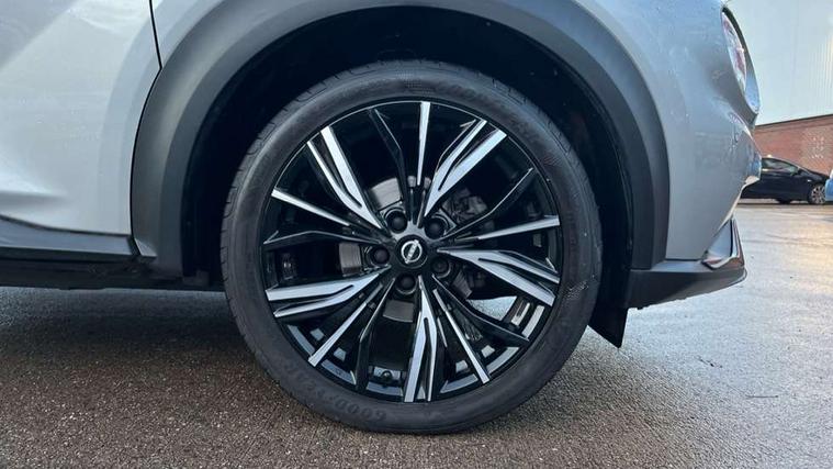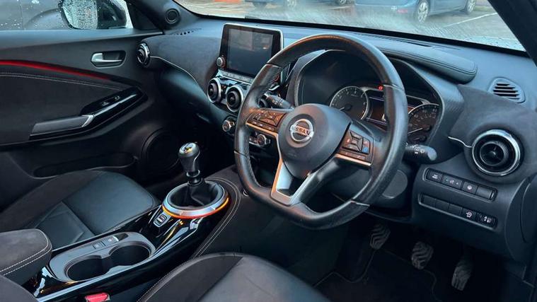 7" full colour TFT screen combimeter, 8" infotainment colour display with touch screen, Apple CarPlay and Google Android auto, Drive modes select (Eco, normal and sport), Emergency and breakdown call, Front parking sensor, Idle start/stop system, Intelligent lane intervention, Lane departure warning system, Nissan connect nav with TomTom traffic, Nissan connect services and Wifi connection, Outside temperature sensor, Power Steering, Rear parking sensor, Traffic sign recognition, Trip computer, Gasoline particulate filter, Bluetooth system, USB, Aux-in and 12V socket, Bose personal plus audio system with 8 speakers(4 speakers and 2 headrest speaker for driver and passenger seats), Bose personal sound stage control, DAB Digital radio, Front lower bumper painted in silver finisher, Rear console USB port, Auto dimming interior rear view mirror, Automatic hazard signal with emergency stop signal, Body colour bumpers, Body colour door handles, Electrically adjustable door mirrors with integrated indicators, Follow me home headlights, Front and rear electric window with one touch driver and passenger window, Heated and auto folding door mirrors, High beam assist, LED daytime running lights, LED front fog lights, LED headlamps, LED rear fog lamp, LED rear lamps, Rain sensor windscreen wipers, Rear privacy glass, Rear spoiler, Rear wiper, Thermaclear heated windscreen, Three blink turn signal, 3 height adjustable rear headrests, 60/40 split folding rear seat, Automatic climate control, Card holder on driver sunvisor, Door ambient lighting, Driver and passenger sliding and reclining seats, Driver seat back pocket, Driver side rear coat hanger, Driver/passenger sunvisors and illuminated vanity mirrors, Front and rear cabin lighting, Front armrest, Front door pockets with bottle holders, Front head restraints, Front passenger isofix child seat anchorage point, Front/rear passenger grab handles, Gear console ambient circle lighting, Grey synthetic leather kneepad, Heated front seats, Height adjustable driver's seat, Height adjustable passenger seat, Internal chrome door handles, Leather gearshift knob, Leather steering wheel, Luggage board, Luggage space lighting, Monoform sporty seats, Multifunction steering wheel, Passenger seat back pocket, Rear door bottle holders, Telescopic steering wheel adjustment, Two cupholders in front centre console, Two rear isofix child seat anchorage points with top tether, Voice recognition switch on steering wheel, Welcome light and console tray ambient lighting, Advanced safety shield pack - Juke, ABS with EBD and brake assist, Active ride control, Active Trace Control, Driver and passenger airbags, Driver and passenger side airbags, Electric handbrake with auto hold function, Electronic Stability Programme (ESP), Front and rear curtain airbags, Height adjustable seatbelts, Hill start assist, Intelligent emergency braking with pedestrian and cyclist recognition, Seatbelt reminder for driver/front passenger and rear seats, Single tone horn, Three 3 point rear seatbelts, Traction control, Tyre pressure monitoring system, VDC Dynamic Vehicle Control, Ventilated rear brake discs, Alarm, Immobiliser, Intelligent Key with push button starter, Remote central locking, 19" Akari alloy wheels,