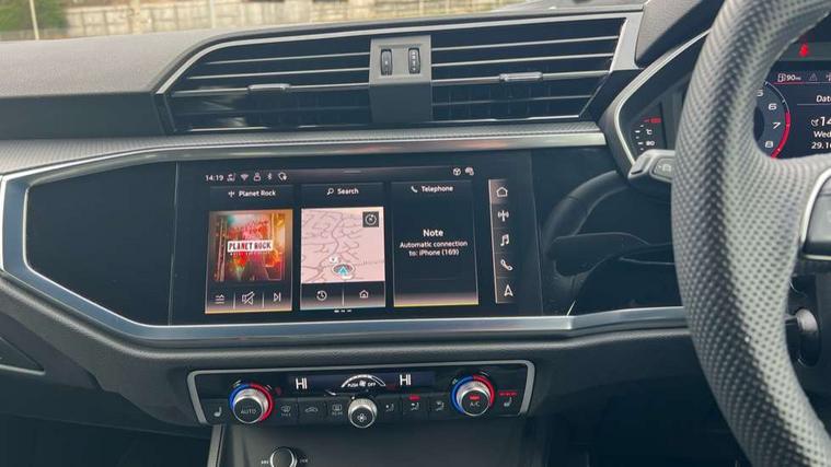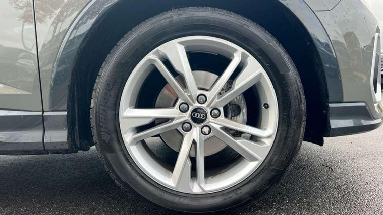 Audi connect safety and service, Audi drive select, Audi lane departure warning, Audi Virtual Cockpit - 10.25" display, Bluetooth interface, Camera based traffic sign recognition, Distraction and Fatigue warning, Legal emergency call, MMI Navigation Plus with high resolution 10.1 inch touchscreen colour display, Power operated tailgate, Progressive steering, Service interval indicator, Smartphone interface includes wireless Apple carplay/Android Auto, Start stop system with recuperation, Voice control system with natural language interaction, Sports suspension, 2 USB-C ports with charge and data functions, 6 passive loudspeakers, DAB digital radio module, Acoustic windscreen, Aluminium window trim, Auto dimming door mirrors, Auto dimming frameless rear view mirror, Diffuser grille in grained matt black, Diffuser trim in selenite silver, Electrically folding, adjustable and heated door mirrors with integrated LED side indicators and kerb view function for passenger side, Front and rear electric windows, Front fog lights, Front side air inlets in selenite silver, Front underbody protection in manhattan grey paint finish, Grille surround in aluminium silver matt, High gloss black finish B and C pillars, LED Dynamic rear indicators, LED headlights with LED daytime running lights, LED rear lights, LED third brake light, Privacy glass dark tinted rear and rear-side windows (from B-pillar backwards), Radiator grille in anthracite black with inlay in matt aluminium silver, Rain and light sensors, Rear side wing doors, Rear underbody protection in matt black, Rear wiper, S line badges on front wings, S line front and rear bumpers and side skirts in contrasting Manhattan grey paint finish, Side skirt insert in matt Platinium grey, Variable front intermittent wipers, 12V socket in rear centre console, 3 seat bench in 2nd row, 3 spoke leather multifunction steering wheel features S badging and grips in perforated leather with contrast stitching, 40:20:40 folding with manual adjustment for 60:40 forwards/backwards position and backrest angle, Adjustable rear seat bench/backrest with centre armrest and cupholder, Black cloth headlining, Dual zone electronic climate control, Electric lumbar support, Front and rear black floor mats with contrast stitching, Front and rear headrests, Front centre armrest, Height and reach adjustable steering wheel, Illuminated door sill trims with S logo, ISOFIX child seat mounting for front passenger with airbag deactivation and outer rear seat including top tether attachment point for outer rear seats, Luggage compartment sill protection in stainless steel, Manual front seats with height adjustment, Perforated leather gearknob, Single front passenger seat, Stainless steel pedals, Twin leather upholstery with front sport seats + S embossing, Non smoking pack - Q3, 3x3 point rear seatbelts, 6 airbags - Driver, front passenger, curtain and side windows, Audi pre-sense front with pedestrain and cyclist recognition, Electrically operated child locks on rear doors, Electromechanical parking brake, Electronic stabilisation control including ABS, ASR and EDL, Front seatbelt reminder, Hill descent control, Hill hold assist, Pre sense basic, Seatbelt monitoring, Tyre pressure warning, Warning triangle and first aid kit, Anti theft wheel bolts, Immobiliser, Remote central locking, Thatcham approved category 1 anti theft alarm, Aluminium look interior elements, Dark matt brushed aluminium inlay, Detail dashboard around MMI touch colour display in glass look, black with surround in aluminium look, Leatherette door armrest,