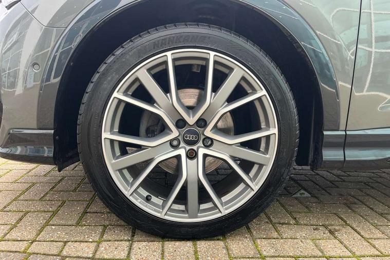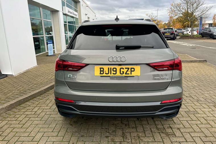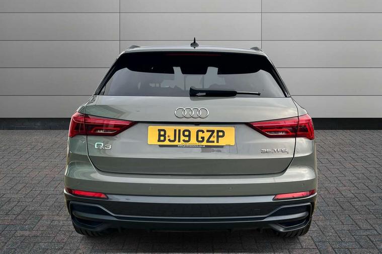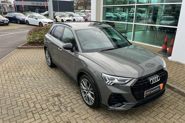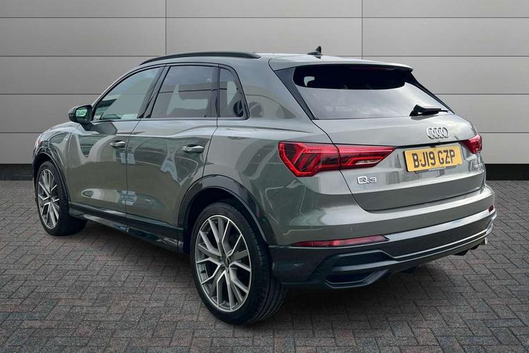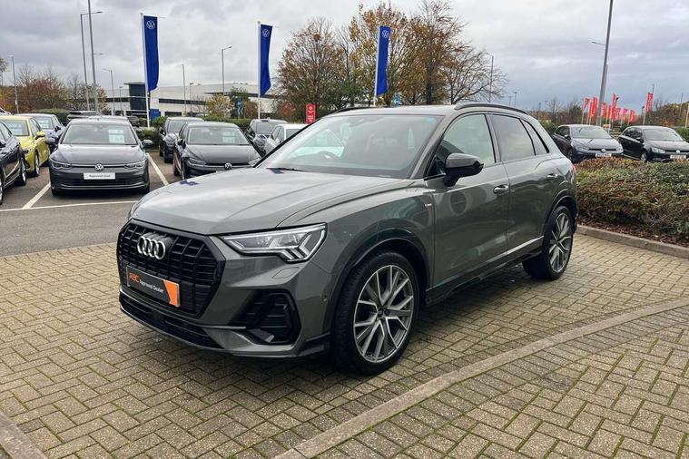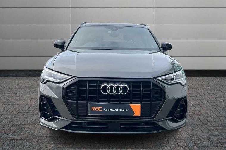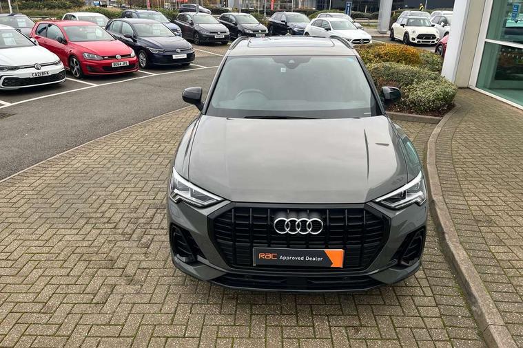 360 degree parking camera, Audi connect safety and service (e-call), Audi drive select, Audi lane departure warning, Audi parking system plus with front and rear sensors, Audi phone box with wireless charging, Audi side assist, Audi smartphone interface, Audi virtual cockpit plus, Bluetooth interface, MMI navigation plus with MMI touch, Power opening/closing tailgate, Progressive steering, Rear cross traffic alert, Service interval indicator, Stop/start system, Voice control system, Adaptive suspension with damping control, Bang & Olufsen 3D Premium Sound System, DAB digital radio module, Acoustic windscreen, Aluminium roof rails, Auto dimming and folding door mirrors, Auto dimming rear view mirror, Black roof rails, Contrast bumpers in Manhattan grey paint finish, Diffuser in matt Platinum grey, Electrically adjustable and heated door mirrors with integrated LED side indicators, Front and rear electric windows, Front fog lights, Front side air inlets in matt platinum grey, Front spoiler blade in matt platinum grey, Front spoiler in matt selenite silver, Grille vertical bars in aluminium silver/Matt, Headlight washers, High gloss black finish B and C pillars, Matrix LED headlights with LED rear lights and dynamic front and rear indicator, Panoramic opening glass sunroof, Privacy glass, Rain and light sensors, Rear diffuser strip in selenite silver, S line bumpers in contrasting Manhattan grey, 12V socket in rear centre console, 3 spoke flat bottomed high multi-function leather sport steering wheel with gearshift paddles, 4 way electric lumbar support for driver and front passenger, 40:20:40 split folding rear bench seat, Adjustable rear seat bench/backrest with centre armrest and cupholder, Aluminium door sill trims, Black cloth headlining, Dual zone climate control, Electrically adjustable front seats, Front and rear black floor mats with contrast stitching in rock grey, Front and rear headrests, Front centre armrest with storage compartment and angle adjustment, Heated front seats, ISOFIX child seat mounting and Top Tether with front passenger airbag deactivation, Perforated leather gearknob, Stainless steel luggage compartment sill finisher, Stainless steel pedals, Black styling pack - Q3, Driver Assistance Pack - Q3, Multi coloured extended ambient interior lighting pack - Q3, Non smoking pack - Q3, 3x3 point rear seatbelts, 6 airbags - Driver, front passenger, curtain and side windows, Audi pre-sense front with pedestrain and cyclist recognition, Electronic stabilisation control including ABS, ASR and EDL, Hill hold assist, Pre sense basic, Seatbelt monitoring, Tyre pressure warning, Warning triangle and first aid kit, Advanced key, Anti theft alarm, Anti theft wheel bolts, Remote central locking, Dark matt brushed aluminium inlay, MMI touch colour display in gloss black with aluminium surround,
