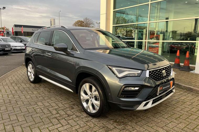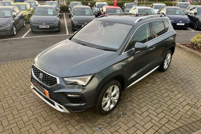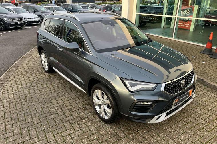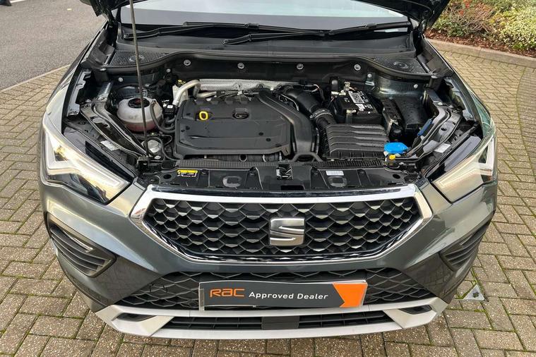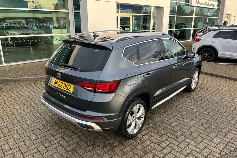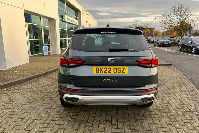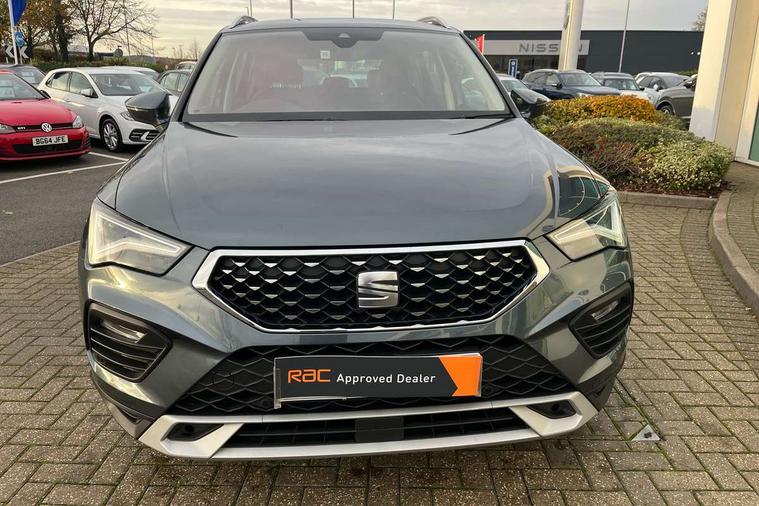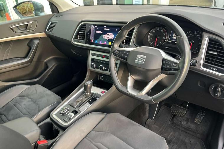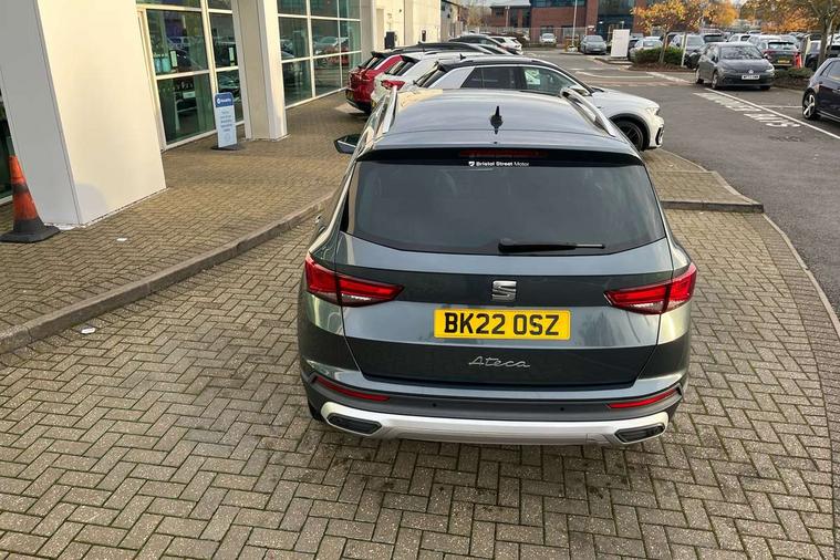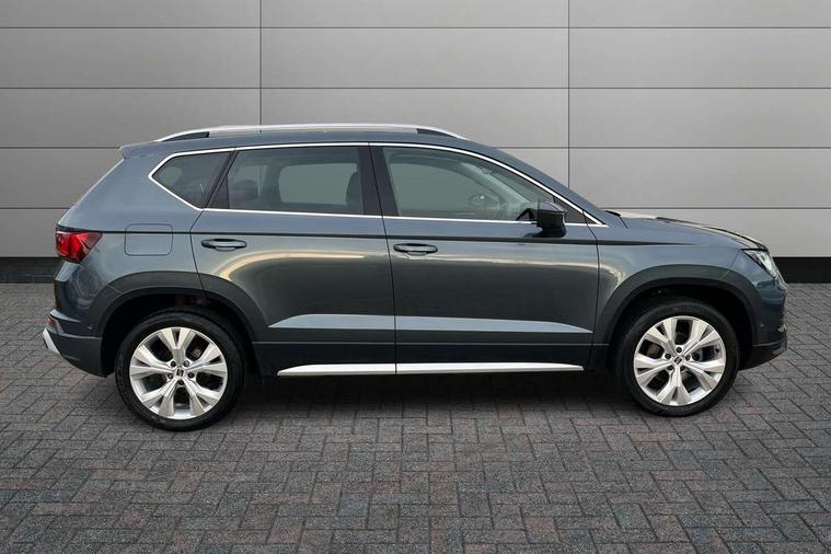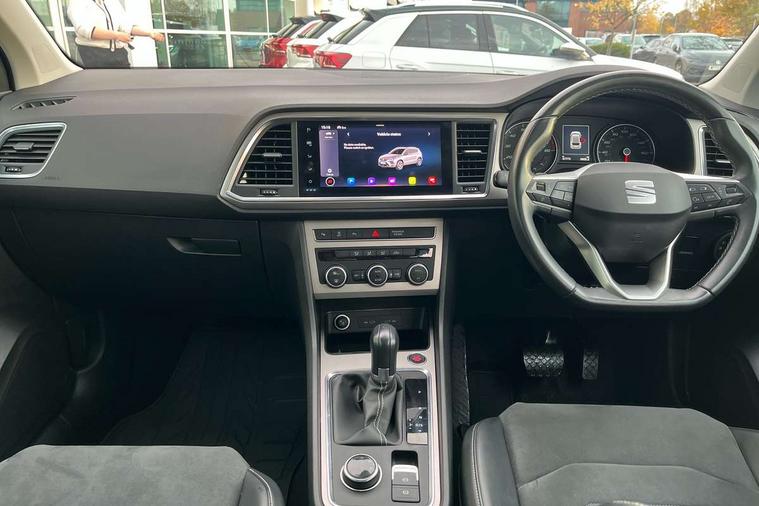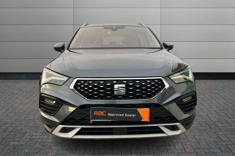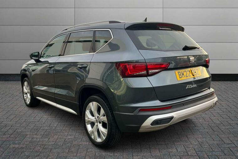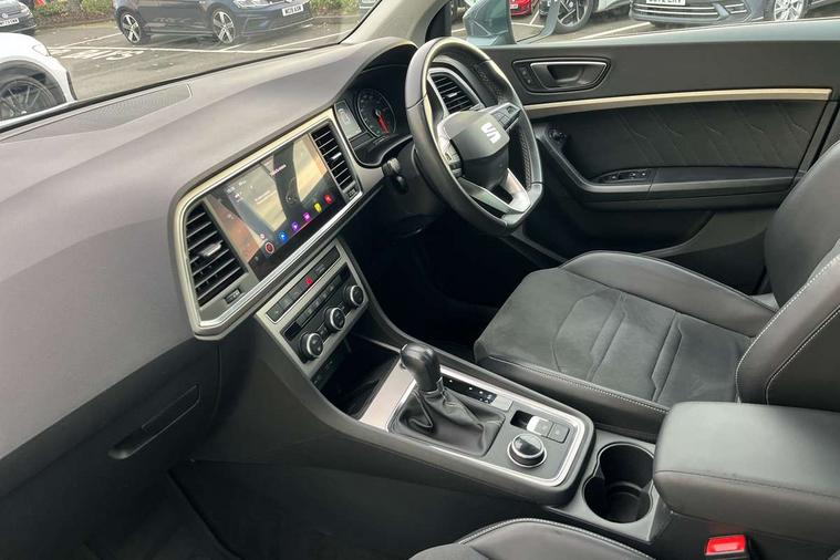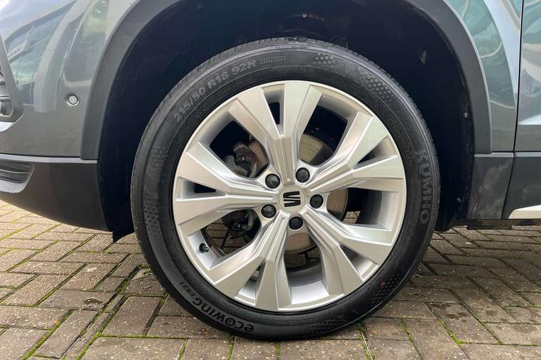 E-call, Outside temperature gauge, Progressive power assisted steering, Rear view camera, SEAT drive profile with driving experience button - Normal, Sport, Eco and Individual mode, gearshift, steering and throttle response, Self parking functionality (includes front and rear parking sensors), Trip computer, Wireless full link smartphone integration, Wireless phone charger, Steering wheel mounted audio/phone controls, Black simulated exhaust pipes, Body colour bumpers, Body coloured wheel arch surrounds, Chrome front grille frame, Chrome roof rails, Chrome side window trim, Dark tinted rear windows, Daytime running lights, Door mirrors with welcome light silhouette, Dynamic headlight range control with self adjusting whilst driving, Electric adjustable/heated/folding door mirrors, Front and rear electric windows, Front grille hot stamping, Full LED headlamps with lens and LED front fog lamps with cornering function, Illuminated aluminium front door sill, LED rear tail lights with dynamic indicators, Rear fog lights, Rear side wing doors, Rear wash/wipe, Reflex silver side mouldings, 12V socket in front, 3 seat bench in 2nd row, 60/40 split folding rear seat, Dual zone climate control, Front and rear head restraints, Front centre armrest, Front seat back storage pockets, Height adjustable driver and passenger seat with lumbar adjustment, ISOFIX points in outer rear seats with top tether anchorage points, Leather steering wheel and gear knob, Microsuede upholstery with front comfort seats, Rear armrest and easy back seat release mechanism from boot, Single front passenger seat, Steering wheel mounted gearshift paddles, Storage compartment under driver's seat, Convenience pack - Ateca, Interior lighting pack - Ateca, Navigation system pack with DAB - Ateca, Safe and driving pack - Ateca, 3x3 point rear seatbelts, ABS, Traction control system (TCS), Electronic stability control (ESC) and Electronic differential lock system (XDS), Airbags - Driver and front passenger airbag with deactivation, front side, two curtain and driver's knee airbags, Electric parking brake with auto hold function, Front and rear seatbelt reminder, Hill hold control, Manual rear child locks, Tiredness recognition system, Traction control, Tyre pressure monitoring system, Alarm, Keyless entry, Locking wheel bolts, Chrome interior detailing, 18" Brillaint silver alloy wheels,
