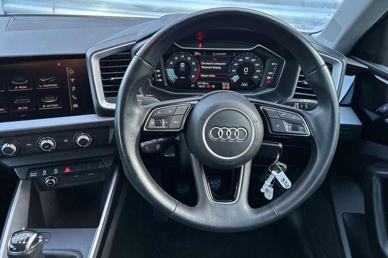 10.25" Digital instrument cluster display classis style instrument dials + speed, odometer, time, outside temperature, telephone menu + fuel level warning, Audi connect safety emergency and service including E-call, Audi drive select - power steering assistance + engine, Audi smartphone interface with connect compatible smartphone via USB directly MMI display + Nav, music, third party apps controlled via MMI controller, Automatic start/stop system, Bluetooth interface, Cruise control, Driver's information system, Electromechanical power steering, Emergency services call system, Lane departure warning system, Service interval indicator, Speed limiter, Voice control system, Washer fluid level indicator, Dynamic suspension, 1 x SDXC card reader, 2 x USB type C connection points, DAB Digital radio, MMI radio plus with 8.8" colour MMI display screen and MMI touch, Auto dimming rear view mirror, Body coloured bumpers, Body coloured door mirrors, Electric front and rear windows, Electrically adjustable, heated, folding door mirrors with integrated LED side indicator, Front side air inlets in grained matt black and C frame in titanium black, Heat insulating glass windscreen and side windows, Heated rear windscreen, High level LED brake light, LED headlights with LED rear lights + dynamic rear indicators + headlight adjustment and high beam, turning light + LED daytime running lights, Radiator grille and rear diffuser in matt titanium black, Radiator protective grille frame in matt aluminium silver, Rain and light sensors, Rear fog lights, Rear side wing doors, Rear wing door, Rear wiper, Side front spoiler lips in grained matt black, 12V socket in centre console with two cup holders, 3 rear seats with headrests, 3 seat bench in 2nd row, 40:60 Split folding rear seat or folded fully, Door sill trims with aluminium inlay, Driver and passenger seat with manual height adjust with forward and backwards adjustment, Front head restraints, Front passenger seat, Front/rear floor mats, Height and reach adjustable steering wheel, ISOFIX child seat mounting for front passenger and outer rear seats including top tether attachment point of outer rear seats, Leather gear knob with aluminium trim, Leatherette handbrake grip, Luggage compartment light with front and rear reading lights, Manually adjustable lumbar support in front seats, Novum cloth upholstery with front sport seats, Titanium grey cloth headlining, Luggage compartment pack - A1, 3x3 point rear seatbelts, Audi pre-sense front with pedestrain and cyclist recognition, Brake assist function, Driver and front passenger airbag with front side and head airbags, Electronic Stability Control including ABS, EBD, ASR and EDL, Front passenger airbag deactivation switch, Hill hold assist, Manual rear child locks, Seatbelt height adjustment for front seats, Seatbelt monitoring, Tyre pressure warning light, Warning triangle and first aid kit, Anti theft alarm, Anti theft wheel bolts and loose wheel warning, Immobiliser, Remote central locking with 2 foldaway keys, Aluminium trim for control switches, air vents and digital instrument cluster, Silver grey accent areas including air vents, door handle recesses and centre console in diamond paint finish, Slate grey inlays polygon structure in fine paint finish,