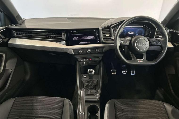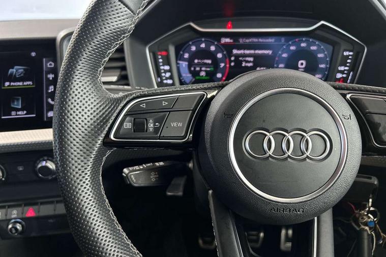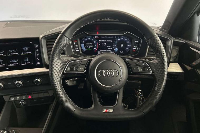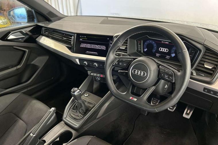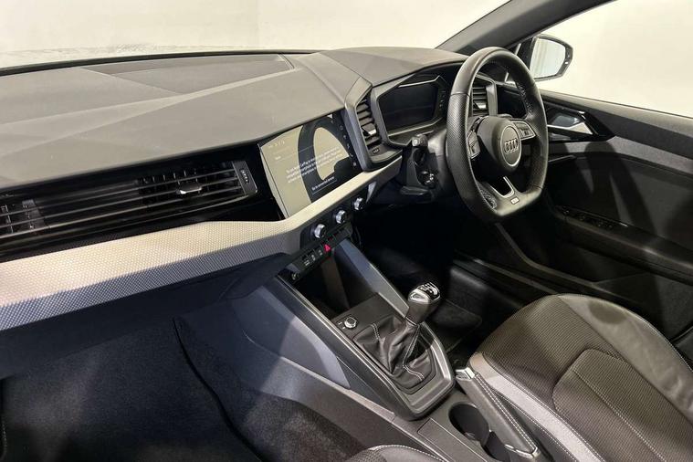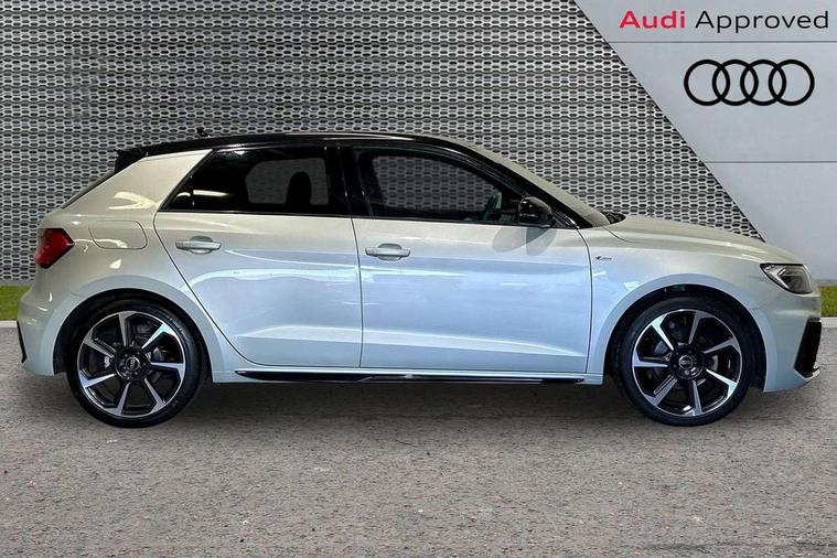 10.25" Digital instrument cluster display classis style instrument dials + speed, odometer, time, outside temperature, telephone menu + fuel level warning, Audi drive select - power steering assistance + engine, Audi smartphone interface with connect compatible smartphone via USB directly MMI display + Nav, music, third party apps controlled via MMI controller, Automatic start/stop system, Bluetooth interface, Cruise control, Driver's information system, Electromechanical power steering, Emergency e-call, Lane departure warning system, Rear parking sensor, Service interval indicator, Speed limiter, Voice control system, Washer fluid level indicator, Sports suspension, 2 x USB type C connection points, 6 passive loudspeakers, DAB Digital radio, MMI radio plus with 10.1" colour MMI display screen and MMI touch, Auto dimming rear view mirror, Black side skirts, Body coloured bumpers, Door sill trims with aluminium inlays and logo, Electric front and rear windows, Electrically adjustable, heated, folding door mirrors with integrated LED side indicator, Front side air inlets in grained matt black and C frame in anthracite black, Front wing badges, Heat insulating glass windscreen and side windows, Heated rear windscreen, High level LED brake light, LED headlights with LED rear lights + dynamic rear indicators + headlight adjustment and high beam, turning light + LED daytime running lights, Privacy glass, Rain and light sensors, Rear fog lights, Rear side wing doors, Rear wiper, Side front spoiler lips in grained matt black, 12V socket in centre console with two cup holders, 3 rear seats with headrests, 3 seat bench in 2nd row, 3 spoke flat bottomed multi-function plus leather steering wheel with S badging, grips in preforated leather and contrast stitching, 40:60 Split folding rear seat or folded fully, Black cloth headlining, Driver and passenger seat with manual height adjust with forward and backwards adjustment, Front and rear black floor mats with contrast stitching in fine silver, Front head restraints, Front passenger seat, Height and reach adjustable steering wheel, ISOFIX child seat mounting for front passenger and outer rear seats including top tether attachment point of outer rear seats, Leather gear knob with aluminium trim, Leatherette handbrake grip, Luggage compartment light with front and rear reading lights, Manual air conditioning, Manually adjustable lumbar support in front seats, Stainless steel pedals, Black styling pack - A1 Sportback Black Edition, LED interior lighting pack - A1, Luggage compartment pack - A1, 3x3 point rear seatbelts, Audi pre-sense front with pedestrain and cyclist recognition, Brake assist function, Driver and front passenger airbag with front side and head airbags, Electronic Stability Control including ABS, EBD, ASR and EDL, Front passenger airbag deactivation switch, Hill hold assist, Manual rear child locks, Seatbelt height adjustment for front seats, Seatbelt monitoring, Tyre pressure warning light, Warning triangle and first aid kit, Anti theft alarm, Anti theft wheel bolts and loose wheel warning, Immobiliser, Remote central locking with 2 foldaway keys, Aluminium trim for control switches, air vents and digital instrument cluster, Black dashboard, Silver grey inlays polygon structure in diamond paint finish, Structured grey accent areas including air vents, door handle recesses and centre console in quartz paint finish,