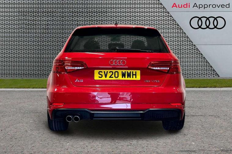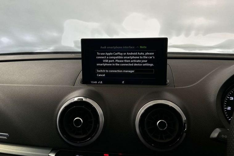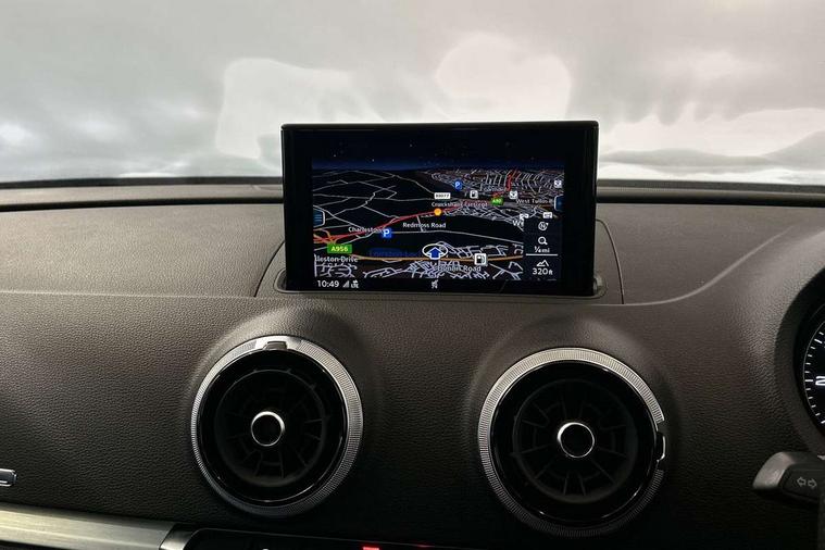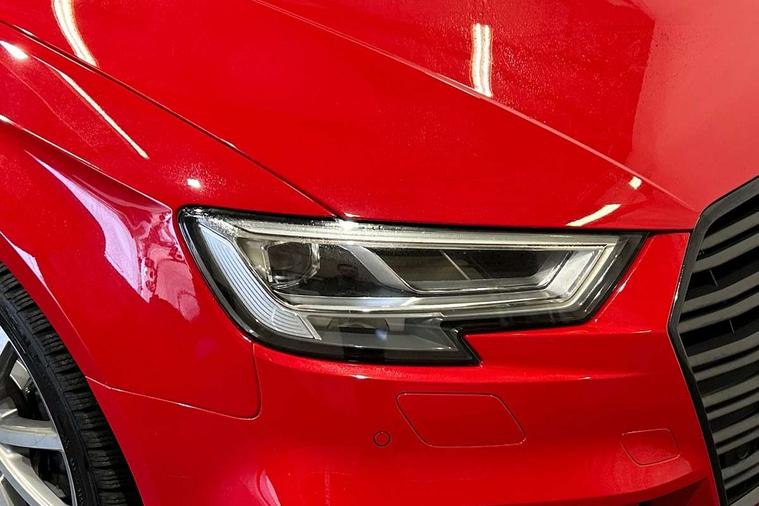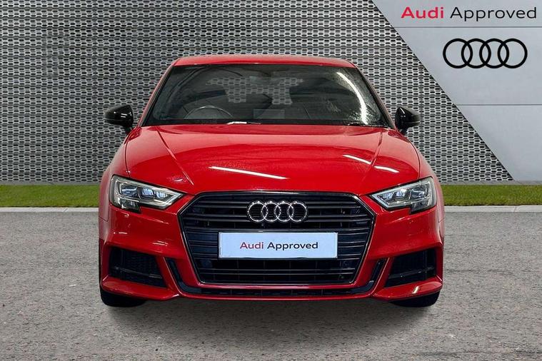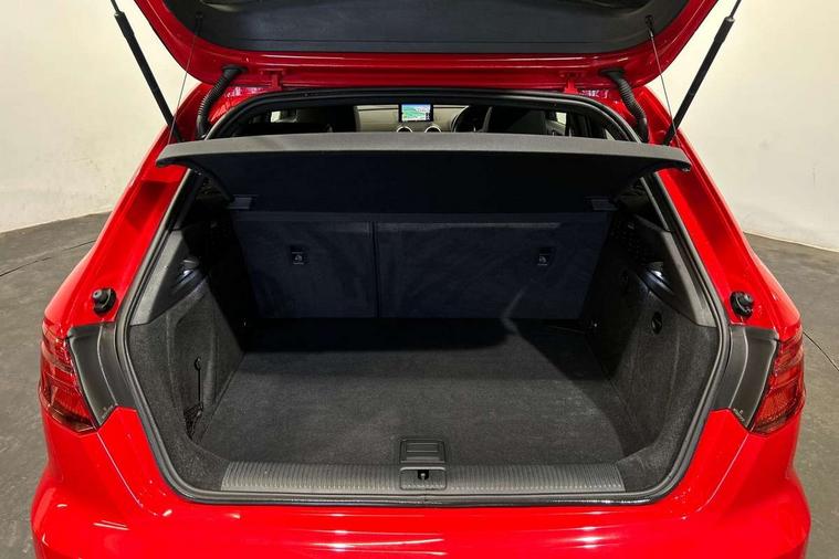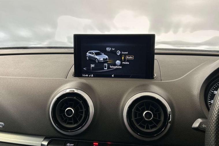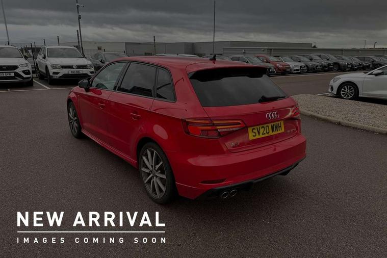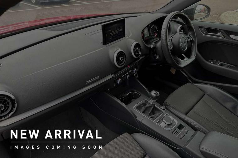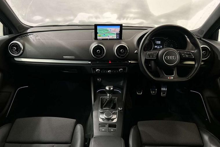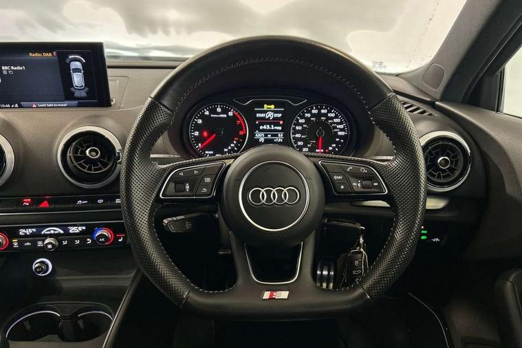 Aluminium air vent surrounds, Aluminium trim elements, Matt brushed aluminium inlays, Black styling pack - A3/S3, LED interior light pack - A3/RS3, Non smoking pack - A3, Storage and luggage pack - A3/RS3, 18" 10 spoke design alloy wheels in matt titanium look with diamond cut finish, Tyre repair kit, Anti theft alarm, Anti-theft wheel bolts, Remote control central locking, Thatcham category 1 alarm + immobiliser, 2 USB interfaces and Aux-In jack, Audi music interface, CD player, DAB Digital radio, MMI radio plus with 7" colour MMI screen and MMI controller, Online entertainment, 3 point seatbelts on all seats, ABS/EBD, Active bonnet, Active front headrests, Airbags - front driver/passenger, front & rear side, curtain, drivers knee, ASR, EDL, Electromechanical parking brake, ESC - Electronic Stability Control + traction control, Front passenger airbag deactivation, Hill hold assist, Manual rear child locks, Multi-Collision braking, Seatbelt warning, Tyre pressure warning, Warning triangle and first aid kit, Auto dimming interior rear view mirror, Body colour roof spoiler with aerodynamic inserts in high gloss black, Chrome exhaust tailpipes, Electric front windows, Electric rear windows, Electrically adjustable and heated door mirrors with integrated LED side indicators, Heated windscreen washer jets, LED daytime running lights, Light and rain sensors, Privacy glass - dark tinted rear and rear side windows from B-pillar backwards, Rear wiper, Sport specific side air inlet grille and diffuser insert, 3 adjustable rear headrests, 3 spoke flat bottomed multi-function leather sport steering wheel, 60/40 split folding rear seat, Adjustable front centre armrest, Black cloth headlining, Dual zone electronic climate control, Front and rear interior lights with delay, Front/rear floor mats, Height and reach adjustable steering wheel, Illuminated door sill trims with S logo, Isofix child seat preparation for front passenger/outer rear seats inc passenger airbag deactivation including top tether, Lashing point in luggage compartment, Manual height adjustable front seats, Stainless steel pedals, Storage compartments in doors side trims, centre console and under front drivers seat, Tool kit, Audi drive select, Audi smartphone interface, Automatic start/stop system, Colour driver's information system display, Electro - mechanical power assisted steering, Mobile telephone preparation - bluetooth interface, SD card based MMI navigation, Service interval indicator, Speed limit display, Voice control system, Voice recognition for navigation system, Sports suspension,
