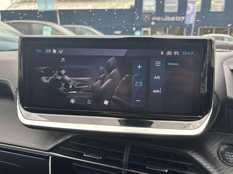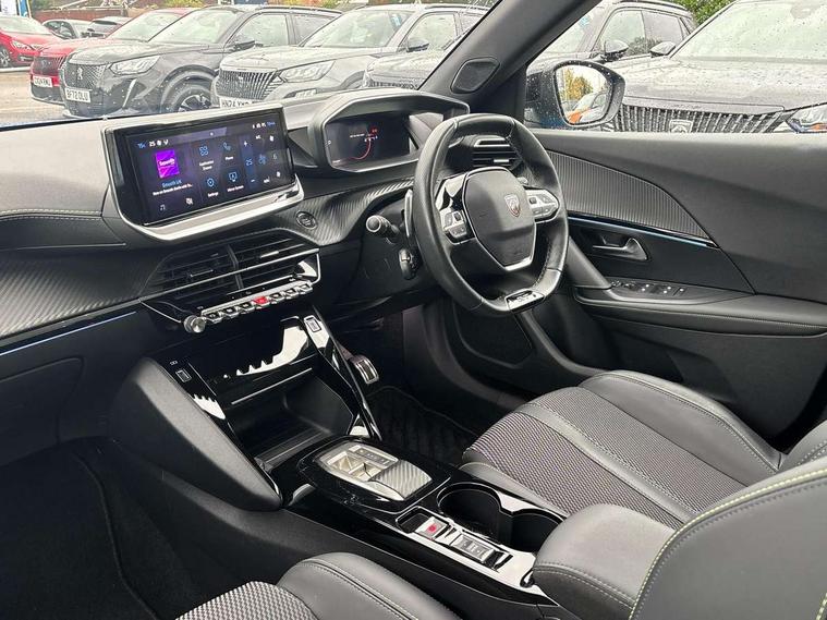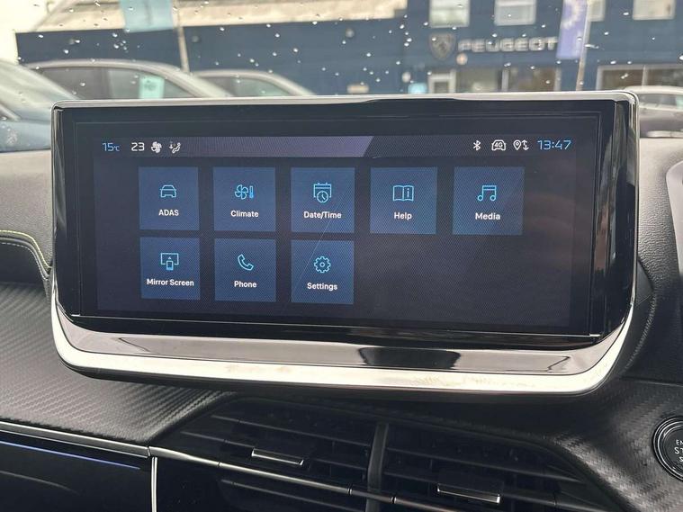 Bluetooth telephone facility, Driver attention warning, E-call, Exterior temperature indicator with ice warning, Front and rear parking sensors, Multi function trip computer, Peugeot connect SOS and assistance, PEUGEOT i-Cockpit with 10" high definition capacitive touchscreen, PEUGEOT i-Cockpit with compact steering wheel, PEUGEOT i-Cockpit with configurable 3D headup instrument panel, Smartphone wireless charger, Speed limit recognition and recommendation, Wireless mirror screen with mirror link, apple carplay and android auto, 1x USB-C socket in rear and 1x USB-A socket in rear, 2 USB-C ports in the front, 6 speakers radio with mp3 compatible, DAB Radio (Digital Audio Broadcasting), Voice recognition for radio, navigation and telephony features, 2 X Rear number plate lights, Aluminium door sill scuff plates with peugeot lettering, Automatic hazard light activation upon heavy brake application, Black diamond roof, Black front wing trim with gloss black detail and GT badging, Body coloured exterior door handles, Dark tinted rear side and tailgate windows, Diamond black mirror shells, Diamond black rear roof spoiler, Electric, heated, and power folding door mirrors, Frameless electrochrome interior rear view mirror, Front bumper - Meteor grey lower trim, Full LED headlights with smartbeam assist with auto height adjustment, Gloss black finish on B pillar, Gloss black rear cluster connecting strip, Gloss black roof bars, Gloss black window surround, GT model designation badging on tailgate, Headlights left on audible warning, LED daytime running lights with distinctive 3 claw signature, LED side indicator lights integrated into door mirrors, LED third brake light, Model designation badges front and rear, One touch electric front/rear windows with pinch protection, Radiator grille - body coloured vertical chequered grille, Radiator grille - gloss black top edge trim, Rear full LED 3D peugeot signature claw effect lights with daylight function, Rear reversing lights, Rear side wing doors, Rear windscreen wiper triggered automatically in reverse gear, Tailgate with heated rear windscreen and wiper blade, Twin chromed exhaust pipes, Wheel arch extensions, 1/3 to 2/3 split folding rear seats, 12V socket, 3 seat bench in 2nd row, 8 Colour personalisable ambient lighting, Automatic air conditioning with pollen and active carbon filter, Central front armrest with storage compartment, Driver and front passenger sport seats, Electric power steering with reach and rake adjustable steering column, Front and rear carpet mats in black, Front LED interior light with 2 reading spotlights and rear interior light with timer, Front passenger seat manual adjustment - height, longitudinal and back rest angle, High centre console, ISOFIX child seat mounting points on passenger seat, Mistral full-grain perforated leather steering wheel with Lime Green stitch detail and satin chrome 'GT' emblem, Multifunction steering wheel, Piano keys: Gloss black and chrome toggle switches to access main functions of the vehicle and touchscreen functions, Roof lining - Mistral black, Seatbelt unfastened on the move audible and visual alert for front and rear seats, Single front passenger seat, Two position modular boot floor, Visibility pack - 2008, 2x 2nd row ISOFIX child seat mountings, ABS (Anti-lock Braking System) with EBD (Electronic Brakeforce Distribution) and EBA (Emergency Braking Assistance), Active safety brake with night function/cyclists/pedestrians, Adaptive driver and front passenger airbags with passenger airbag deactivation function, Child locking functionality on rear doors, Driver/front passenger side airbags, Electric parking brake, ESP (Electronic Stability Program) + Hill Start Assist, Front and rear curtain airbags, Front and rear disc brakes, Front and rear three-point retractable seatbelts, with force limiters, Front optimised safety headrests and rear retractable headrests (x3), height adjustable, Tyre pressure sensor, Automatic door locking when moving off, Deadlocks, Electronic code immobiliser, Peugeot Open and Go (keyless entry and push button start), Thatcham category 1 alarm, Carbon effect Dashboard, front and rear door panel finish,
