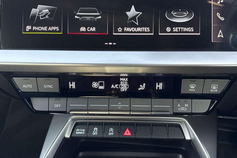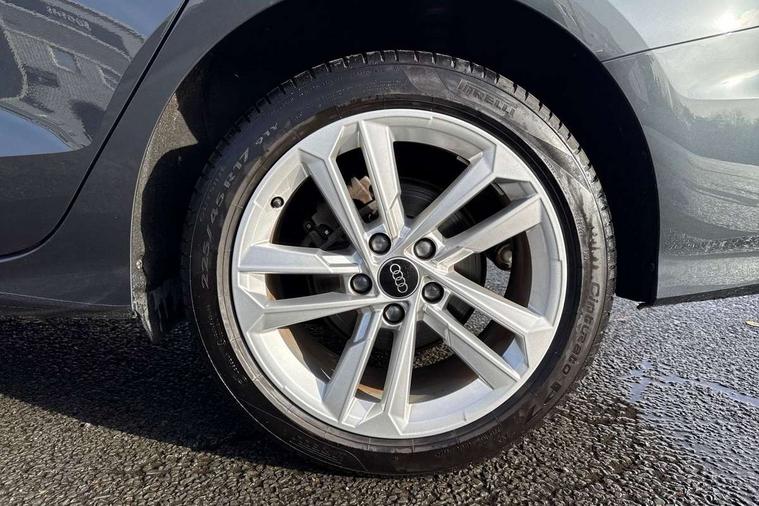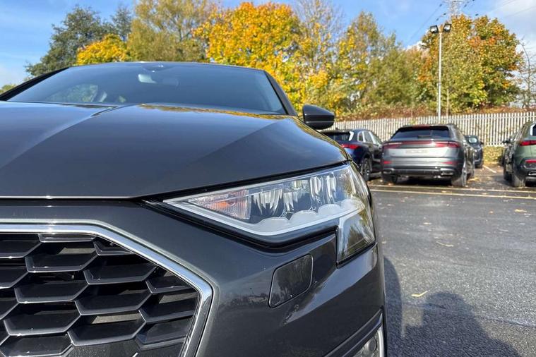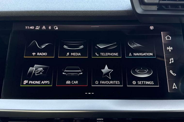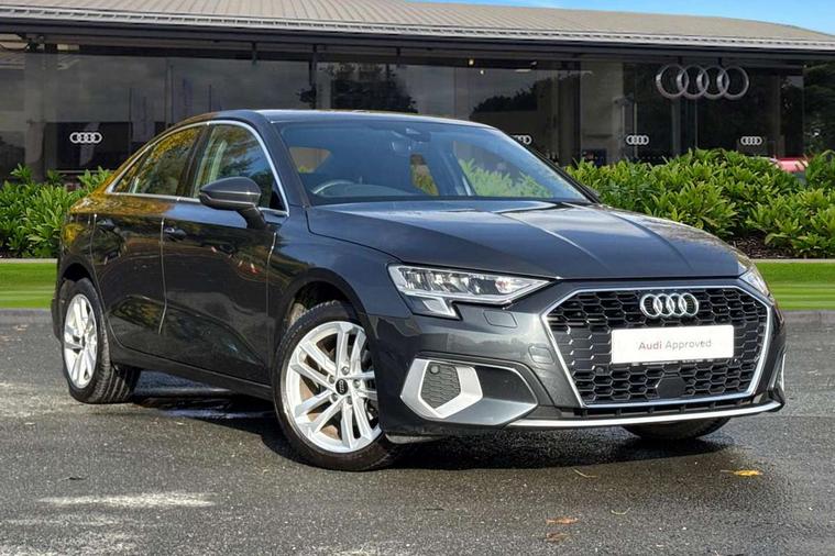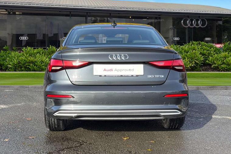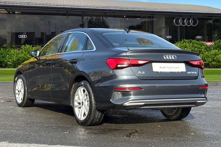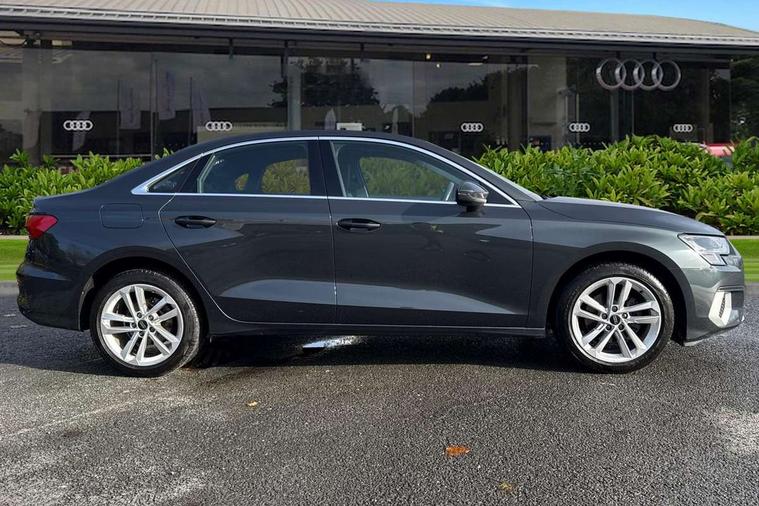 Audi drive select (Auto, Comfort, Dynamic and Individual), Audi smartphone interface, Audi Virtual Cockpit - 10.25" digital and colour instrument cluster, Automatic start/stop system with recuperation, Bluetooth interface, Camera based traffic sign recognition, Collision avoidance assistant, e-Call (emergency call), Electromechanical power speed sensitive steering, Lane departure warning system, MMI Navigation Plus with high resolution 10.1" colour touch screen display, Service indicator, Trip computer, Voice control system with natural language interaction, Standard suspension, 2xUSB-C connection with data and charging functions, 6 passive loudspeakers, CD player, DAB Digital radio, 3rd brake light, Acoustic glass windscreen, Aluminium window trim, Auto dimming frameless rear view mirror, Body colour exterior mirrors, Body colour roof spoiler, Electrically adjustable/heated/folding/auto dimming door mirrors with integrated LED indications + kerb view function for passenger side, Front electric windows, LED daytime running lights, LED headlights and halogen rear lights, Light and rain sensors, Model and engine designation badges at rear, Rear boot, Rear electric windows, Rear side wing doors, Rear window, rear door windows and rear side windows in clear glass, 12V socket and storage compartment in front centre console, 3 seat bench in 2nd row, 3 spoke leather multifunction steering wheel with gear shift paddles, 4 way electrically adjustable lumbar support for driver and front passenger, 60/40 split folding rear seat bench, Dual zone electronic climate control, Front and rear headrests, Front centre armrest, Front door sill trims with aluminium inlay, Front/rear floor mats, Height and reach adjustable steering wheel, Interior lighting - Front and rear roof module including reading lights, glove compartment light and right hand side, Interior lighting - glove compartment light and right hand side, Luggage compartment floor covering, Manual boot compartment lid, Manually adjustable front seats, Routine cloth upholstery with front sports seats, Seat side bolsters, Single front passenger seat, Steel grey cloth headlining, Aluminium interior elements pack - A3, LED interior lighting pack - A3 Saloon, Sport styling pack - A3 Saloon, 3x3 point rear seat belts, Driver and front passenger airbag with passenger airbag deactivation, Electronic Stabilisation Control (ESC) including ABS, ASR and EDL, First aid kit with warning triangle and 2 safety vests, Front side airbags with head airbags and interaction airbag, Pre-sense front with pedestrian and cyclist detection, Seatbelt monitoring, Tyre pressure loss indicator, Anti theft alarm, Anti-theft wheel bolts, Electronically operated child locks, Immobiliser, Remote control central locking, Aluminium air vent surrounds, Inlays with silk effect paint in platinum grey,