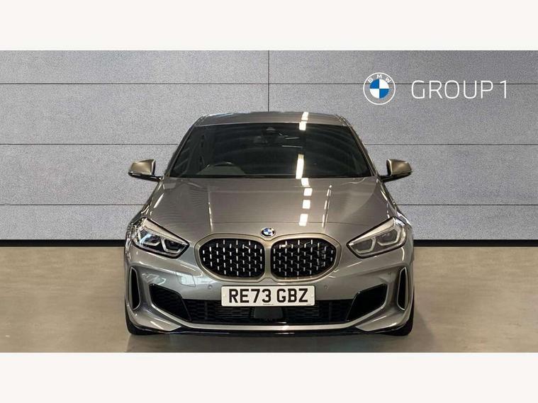 Active guard plus, Attentiveness assist, BMW ConnectedDrive online services, BMW Teleservices, Check Control warning system for monitoring of lights and door/luggage compartment open warning, Cruise control with speed limiter, Eco pro mode, Electric power steering, Electro hydraulically controlled multi-plate clutch transfers drive to rear axle and with power take-off device located on the front differential., Energy efficient operating strategy, Front axle single joint with specific axle kinematics to minimise drive influences on steering + provide increased rigidity agile driving behaviour, Gearshift time display in manual mode, Integrated owners handbook, Lane departure warning system, M Sports steering with M135i xDrive specific settings, Oil sensor for level and grade, On board computer, Optimum shift indicator, Personal Profile, Pull away assistant, Rigidly mounted rear subframe - Multi link construction with separate spring / damper configuration and excellent driving characteristics, Speed limit Info including no-overtaking indicator, Sporty fast gear shifting in sport mode, Aluminium lightweight construction, Anti roll bar front and rear, Balancer shaft, Double VANOS, Drive Performance Control, Eight speed sport automatic transmission with gearshift paddle switches, Electronic differential lock, Electronic selector lever, Engine cover with M performance designation, High precision injection, Larger fuel tank capacity (50 litres), Launch control, M135i specific heavily de-throttled engine intake air guide, M135i specific high-performance cooling package, M135i specific larger turbocharger with integrated divert-air valve, Petrol Particulate Filter, Twin tube gas filled shock absorbers with degressive characteristic curve, VALVETRONIC engine management, Variable, stepless and infinitely adjustable distribution of drive torque between the front and rear axles, xDrive intelligent all wheel drive with M135i specific reinforced components, DAB Digital radio, Auto dimming rear view mirror, Automatic headlight beam throw control, Automatic windscreen wipers and automatic headlight, Body colour door handles, Body colour roof trims, Cerium grey exterior mirror caps, Direction indicator side lights in exterior mirrors, Electrically adjustable exterior mirror with mirror adjustment switch on drivers armrest and aspheric on driver side, convex on passenger side, Exhaust tailpipe, Cerium Grey with bevelled finish - twin, round 100mm, left and right split, Fading support, Folding side mirrors with auto dimming/folding wing mirrors with auto dimming, Follow me home headlights, Front and rear bumper system with replaceable deformation elements, Front and rear electric windows with open and close fingertip control, anti trap facility and comfort closing, Front door sill finishers with M135i designation, Green tinted heat protection glazing, High gloss shadowline window frame, Recess cover mirror frames and B/C pillar embelisher trim, High level third brake light, Integrated front windscreen with washer jets, Kidney grille frame in Cerium Grey with Mesh design, LED daytime running lights, LED eyebrow turn indicators, Lightweight engineering, M logo designation side in cerium grey, M Performance exhaust system with valve control and minimised exhaust back pressure, M Performance specific setup, M Sport spoiler, Matt black air guide grilles, Matt black wheel arch trim, Model designation on electric bootlid includes xDrive designation for M135i xDrive, Nearside reverse light in rear light cluster, Preparation for high beam assistant, Rear fog lights, Rear side wing doors, Rear window wiper, Reinforced crank drive, new pistons and adapted con rods, Shark fin antenna, Trailer stabilisation logic, Visible VIN plate, Welcome lighting, 12V power socket in front centre console with blanking plug, 3 rear seat head restraints, 3 seat bench in 2nd row, 3 spoke sports leather steering wheel with black leather and stitching, pearl chrome decorative finish, specific M Badge, Anthracite headlining, Black boot net with lashing eyes, Cargo function on 2nd seat row, Child seat ISOFIX attachment for two outer rear seats and front passenger seat with anchorage points, Conditioned based service, Driver and front passenger backrest net on rear, Driver and front passenger seat heating, Driver side folding compartment in instrument panel, Folding rear clothes hook, Four grab handles integrated in roof lining, Front and rear door pockets with bottle holders, Front and rear side armrest integrated into door trim, Front armrest, Front M sports seats, Glove compartment, Height adjustable front head restraints, Luggage compartment for bag hooks on left and right, foldable luggage compartment liner and four lashing eyelets, Manual adjust steering wheel, Multi-function controls for steering wheel, Single front passenger seat, Storage compartment in centre console, Storage compartment in luggage compartment, Stowage of the parcel shelf in luggage compartment trim, Sun visors with vanity mirrors and insert tab, Two front centre console cupholders, Two zone automatic air conditioning, Type C two USB ports in rear centre console, Velour floor mats, Additional interior lighting pack - 1 Series M135i, BMW live cockpit professional pack- 1 Series, Connected pack professional - 1 Series, Interior lights pack - 1 Series, M Sport exterior styling aerodynamics pack - 1 Series 135i, 2 tone horn, 3 point seatbelts on all seats, front pyrotechnic belt tensioners, stopper and belt force limiters, rear coded belt buckles, Airbags - Front driver/passenger, front and rear curtain head protection, front side, manual deactivation of front passenger airbag, Anti lock braking system (ABS) with brake assist, BMW emergency call, Brake drying, Braking readiness, Child proof locking system in rear door, City braking function, Comfort modes, Cornering brake control, Crash sensor activating of airbags, Unlocking doors, hazard warning lights, interior light