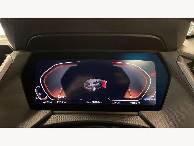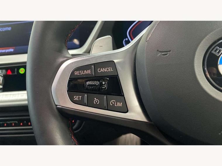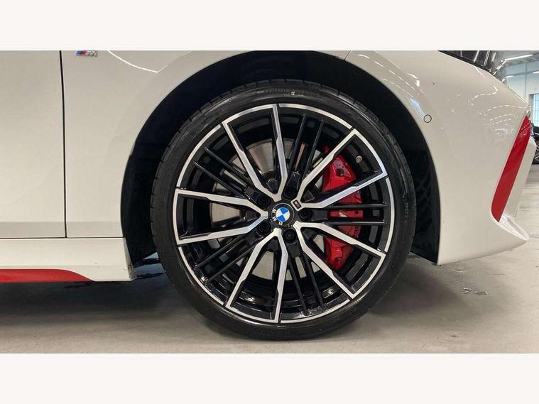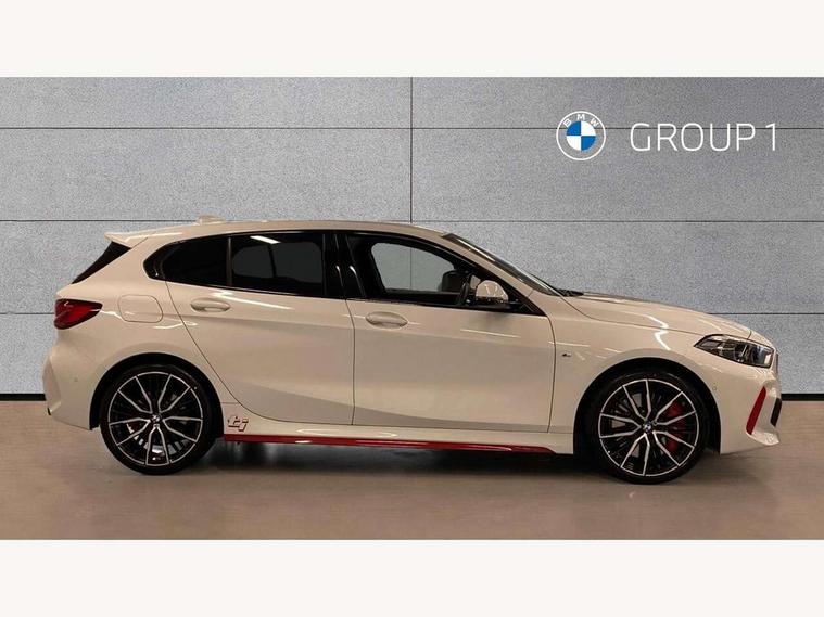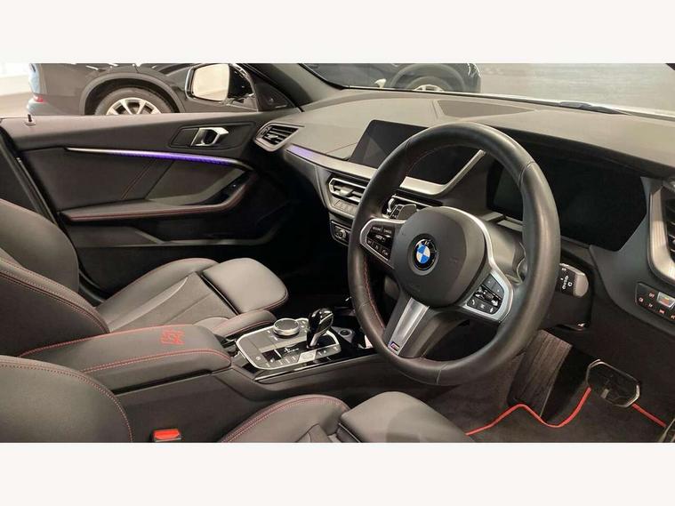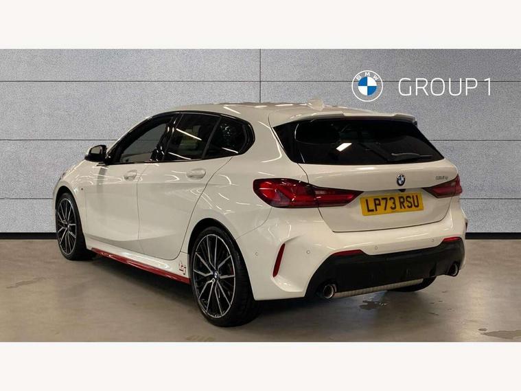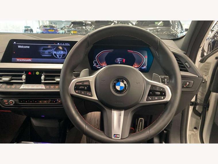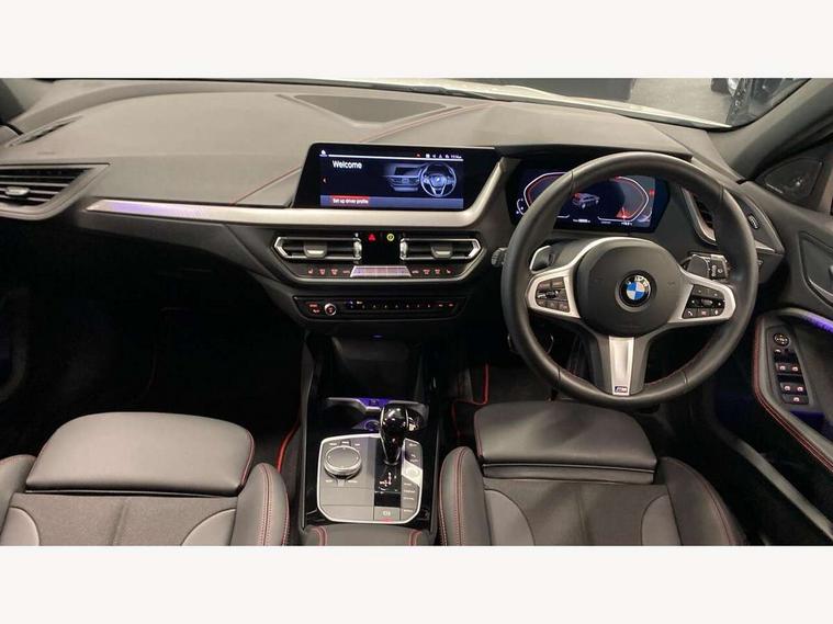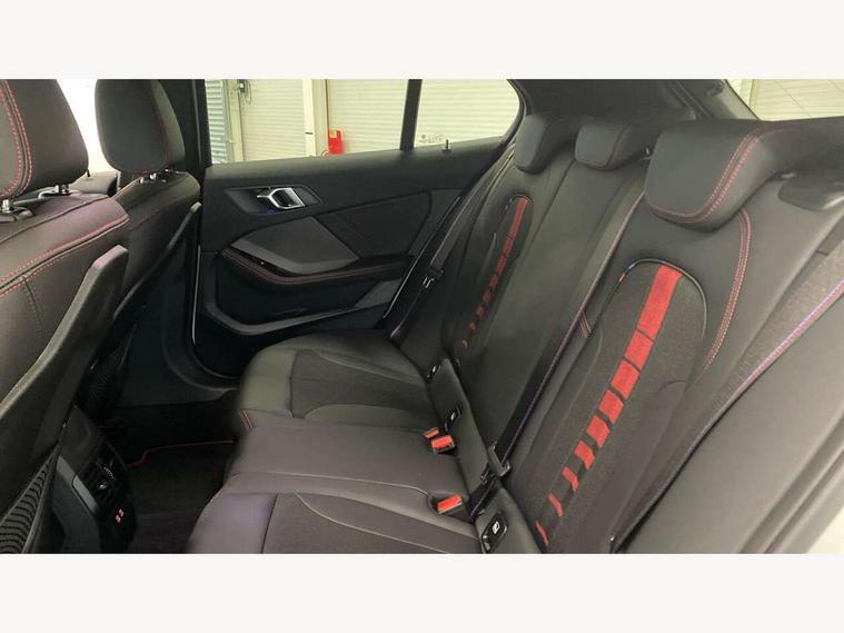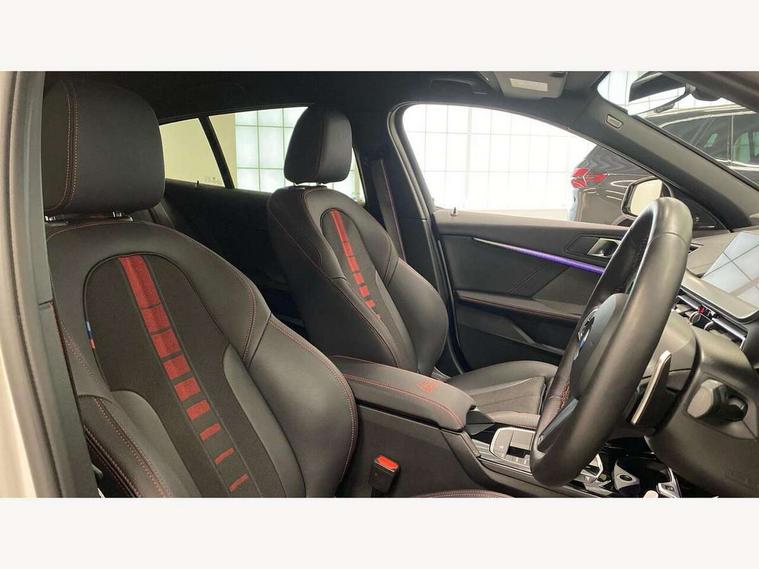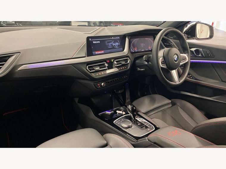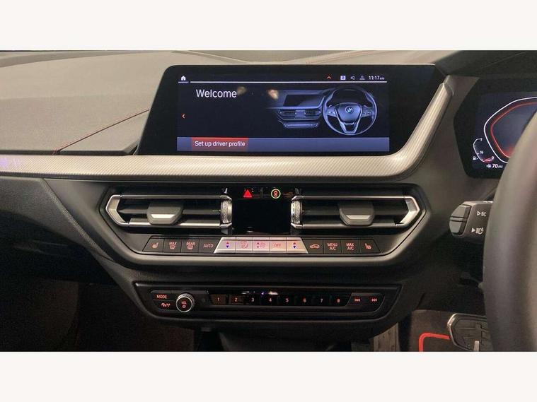 Active guard plus, Attentiveness assist, BMW ConnectedDrive online services, BMW Teleservices, Check Control warning system for monitoring of lights and door/luggage compartment open warning, Cruise control with speed limiter, Eco pro mode, Electric power steering with Servotronic steering optimised at all speed ranges, Front axle single joint with specific axle kinematics to minimise drive influences on steering + provide increased rigidity agile driving behaviour, Integrated owners handbook, Lane departure warning system, Oil sensor for level and grade, On board computer, Optimum shift indicator, Personal Profile, Pull away assistant, Rigidly mounted rear subframe - Multi link construction with separate spring / damper configuration and excellent driving characteristics, Speed limit Info including no-overtaking indicator, Aluminium lightweight construction, Anti roll bar front and rear, Balancer shaft, Double VANOS twin scroll turbocharging system, Drive Performance Control, Eight speed sport automatic transmission with gearshift paddle switches, Electronic differential lock, High precision injection, Larger fuel tank capacity (50 litres), M sport suspension with M128i xDrive specific settings, Petrol Particulate Filter, Twin tube gas filled shock absorbers with degressive characteristic curve, VALVETRONIC engine management, DAB Digital radio, Auto dimming rear view mirror, Automatic headlight beam throw control, Automatic windscreen wipers and automatic headlight, Black chrome tailpipe finishers, BMW individual high gloss shadow line with extended content, Body colour door handles, Body colour mirror caps, Body colour roof trims, Chrome 'M' logo side designation, Chrome kidney grille frame with Satin Aluminium struts, Direction indicator side lights in exterior mirrors, Electrically adjustable exterior mirror with mirror adjustment switch on drivers armrest and aspheric on driver side, convex on passenger side, Fading support, Folding side mirrors with auto dimming/folding wing mirrors with auto dimming, Follow me home headlights, Front and rear bumper system with replaceable deformation elements, Front and rear electric windows with open and close fingertip control, anti trap facility and comfort closing, Front door sill finishers in black plastic with M designation in metallic look, Green tinted heat protection glazing, High gloss shadowline window frame, Recess cover mirror frames and B/C pillar embelisher trim, High level third brake light, Integrated front windscreen with washer jets, Kidney frame and struts in high gloss black extended, LED daytime running lights, LED eyebrow turn indicators, Lightweight engineering, Matt black air guide grilles, Matt black wheel arch trim, Model designation on electric bootlid, Nearside reverse light in rear light cluster, Preparation for high beam assistant, Rear fog lights, Rear side wing doors, Rear window wiper, Shark fin antenna, Trailer stabilisation logic, Visible VIN plate, Welcome lighting, 12V power socket in front centre console with blanking plug, 3 rear seat head restraints, 3 seat bench in 2nd row, Anthracite headlining, Black boot net with lashing eyes, Cargo function on 2nd seat row, Child seat ISOFIX attachment for two outer rear seats and front passenger seat with anchorage points, Conditioned based service, Driver and front passenger backrest net on rear, Driver and front passenger seat heating, Driver side folding compartment in instrument panel, Folding rear clothes hook, Four grab handles integrated in roof lining, Front and rear door pockets with bottle holders, Front and rear side armrest integrated into door trim, Front armrest, Front sports seats, Glove compartment, Height adjustable front head restraints, Luggage compartment for bag hooks on left and right, foldable luggage compartment liner and four lashing eyelets, Manual adjust steering wheel, Multi-function controls for steering wheel, Single front passenger seat, Storage compartment in centre console, Storage compartment in luggage compartment, Stowage of the parcel shelf in luggage compartment trim, Sun visors with vanity mirrors and insert tab, Three spoke M sport design multi function leather steering wheel in unique red stitching, Two front centre console cupholders, Two zone automatic air conditioning, Type C two USB ports in rear centre console, Additional interior lighting pack - 1 Series, BMW live cockpit professional pack- 1 Series, Connected pack professional - 1 Series, Interior lights pack - 1 Series, M Sport exterior styling aerodynamics pack - 1 Series, 2 tone horn, 3 point seatbelts on all seats, front pyrotechnic belt tensioners, stopper and belt force limiters, rear coded belt buckles, Airbags - Front driver/passenger, front and rear curtain head protection, front side, manual deactivation of front passenger airbag, Anti lock braking system (ABS) with brake assist, BMW emergency call, Brake drying, Braking readiness, Child proof locking system in rear door, City braking function, Comfort modes, Cornering brake control, Crash sensor activating of airbags, Unlocking doors, hazard warning lights, interior light, safety battery terminal, Driver and front passenger seat belt security check, Dynamic stability control + (DSC+), Dynamic Traction Control - DTC, Electrically operated hand brake including automatic hold function, Front and rear disc brakes, M Sport brakes with red calipers, M Sport seatbelts, Seatbelt warning, Side impact protection, Tyre pressure monitoring system, Warning triangle and first aid kit, Central locking switch for all doors, fuel filler cap and luggage compartment, Deadlocking function system to all doors, Drive away locking system on all doors and luggage compartment with de-activated in iDrive settings, Locking wheel bolts, Remote control with integrated key with High-gloss Black inlay and M designation and 1 button for open/ close lock, window, open luggage compartment, Start/stop button illuminated in centre console with k