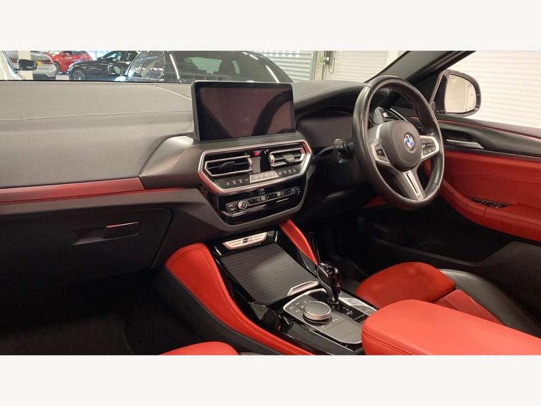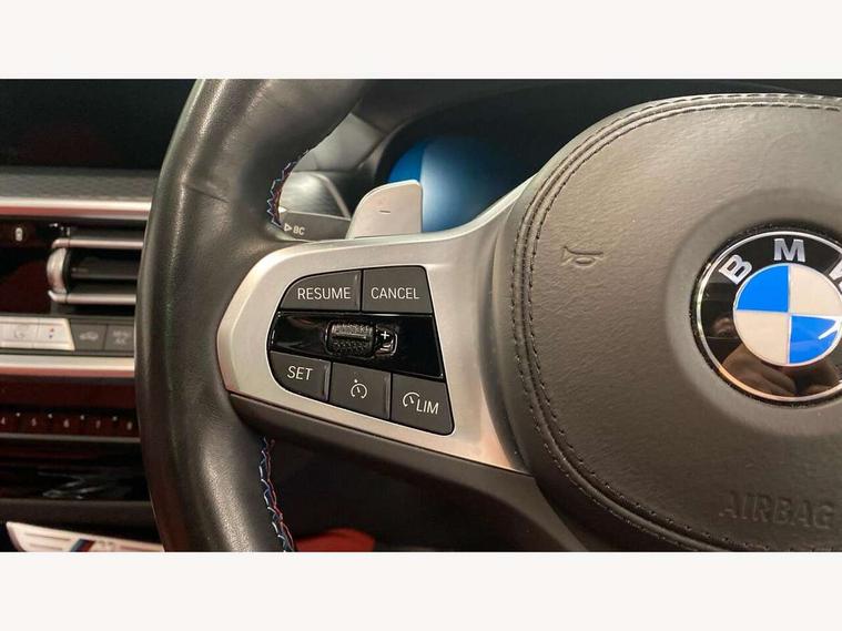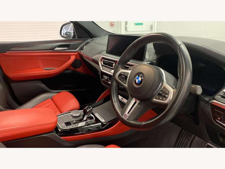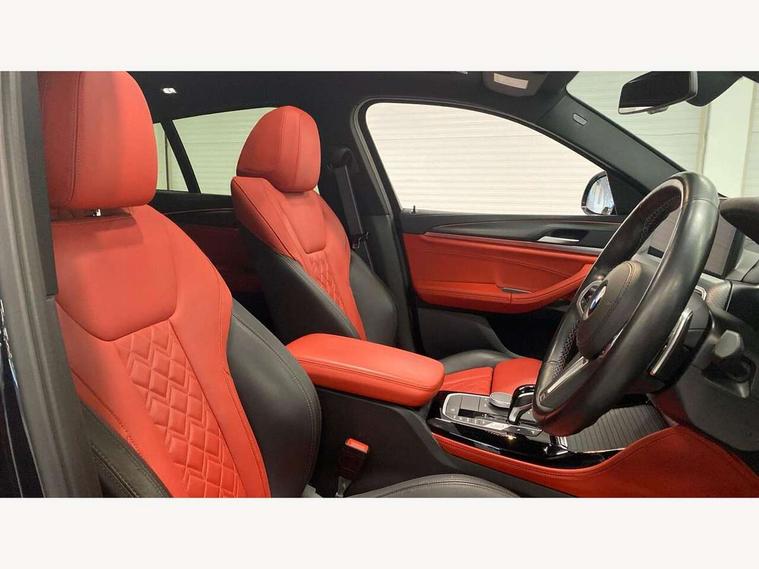 Active Guard incl approach control warning with city brake function and person warning with city brake function, Active Guard Plus incl front collision warning with brake intervention, Attentiveness assist, Auto start-stop, Automatic operation of tailgate, BMW ConnectedDrive online services, BMW Live Cockpit Professional with 12.3" instrument display with Intelligent Voice Assistant, BMW Teleservices, Brake pad wear indicator in front and rear, Check Control warning system for monitoring of lights and door/luggage compartment open warning, Condition based service - BMW service history, electronic service booklet, integrated owner's handbook, Driving experience switch, Electric bootlid, iDrive Controller with 8 favourite buttons, Instrument cluster with speedometer with mph readout, tachometer, fuel gauge and oil temperature gauge, Language version English, Lights on warning by audio warning signal when ignition is switched off, Oil sensor for level and grade, warning by check control system, On board computer - average speed+fuel consumption, service interval, clock/date, odometer/trip meter, outside temperature display and ice warning, Optimum shift indicator, Park distance control (PDC), Personal Profile - automatic lock when driving away selectable, Servotronic system, Variable sports power steering, Double joint spring strut front axle, Double VANOS, Drive performance control - ECO PRO, comfort and sport modes, EU6 emissions management, Five link rear suspension, High precision injection, M Adaptive suspension, M Sport differential, Multiple control arm rear axle, Performance Control, Sport automatic transmission with gearshift paddles, Twin scroll turbocharger with Valvetronic, 2x USB Type C ports in front centre console for charging and data transfer, 2x USB Type C ports in rear centre console for charging, BMW professional radio/CD/MP3, DAB tuner, Acoustic glass, Automatic parking function on passenger's side exterior mirror, Automatic windscreen wipers and automatic headlight, Black chrome tailpipe finishers, Black finish on B pillars, Black kidney frame and nuggets painted in high-gloss black, BMW emblem base at rear in high-gloss black, Body colour door handles, Body colour roof mouldings, Body coloured bumpers, Chrome exhaust tailpipes in split left and right, Direction indicator, side repeaters, integrated in exterior mirrors, Door sill strips, Dynamic brake lights, Electric folding wing mirrors with auto dimming, Electric front and rear windows with fingertip open/close + anti-trap facility and comfort closing function, Electrically adjustable and heated door mirrors, Electro-chrome auto-dimming rear view mirror, Energy absorbing foam within the front bumper, Extended high gloss shadow line exterior trim, Follow me home headlight function, Front and rear bumper system with replaceable deformation elements, Full LED L shape 3D tailights, Glacier silver metallic matt in side sills, Green tinted heat insulating glass, Headlight beam throw control, Heated windscreen washer jets, High gloss black front door sill finishers with BMW designation, Interior/exterior mirrors with auto anti dazzle, LED High level third brake light, LED rear lights, Lightweight engineering, M black mirror caps, M designation side exterior badges, Model designation, Rain sensor + automatic driving lights control, Rear side wing doors, Rear wiper, Reversing lights, Shark fin antenna, Sun protection glass, Tinted passenger side exterior mirror, Visible VIN plate, Windscreen wipers with adjustable interval, 12V power socket in front centre console, 12V power socket in front storage compartment, 3 zone automatic air conditioning, 40/20/40 split folding rear seats with backrest, Anthracite headlining, Electric adjustable front seats with memory function for driver seat, Foldable storage floor with compartment, Front and rear bottle holders integrated into door trim storage compartments, Front and rear side armrests integrated into door trim, Front centre armrest with storage compartment, Front passenger seat, Front/rear reading lights, Heated front seats, Height adjustable front/rear head restraints, Leather gear knob, Lockable glove compartment, Luggage compartment lighting, M Sport multifunction leather steering wheel, Make-up mirror lights, Microfilter and active carbon filter, Parcel shelf removable and storable under boot floor, Reach + rake adjustable steering column, Rear centre armrest with 2 cupholders, Storage compartment in rear centre console and front/rear door trims, Storage compartment lighting in front center armrest, Sunvisors with vanity mirrors and ticket pocket, Synthetic leather door trims, Three rear headrests, Through loading system, Toolkit located in luggage compartment, Two front cupholders with removable oddments tray/lid, Velour floor mats, Visual exit area and front and rear door recognition, Welcome light (no extra light) with illumination in the colour white, Ambient lighting pack - X4, Connected package pro - X4, M Aerodynamic pack - X4, Non Smokers pack, 3 point seatbelts on all seats, Active protection, ADB - Automatic Differential Brake, Anti-lock braking system (ABS) with brake assist, Automatic Stability Control (ASC), Battery safety cut-off, BMW emergency call, Brake drying, Brake energy regeneration, Braking pre-tensioning, Child proof locking system in rear door, Child seat ISOFIX attachment rear outer seats, Cornering brake control (CBC), Crash Sensor - activation of central locking release, hazard warning light and interior lighting, safety battery terminal clamp and trigger e-Call, Deactivation of fuel pump in the event of a crash, Driver and front passenger knee airbag, Driver/front passenger airbag, Driver/front passenger side airbags, Dynamic brake control, Dynamic stability control + (DSC+), Dynamic Traction Control - DTC, Electromechanical parking brake, Front and outer rear pyrotechnic belt tensioners, Front passenger manual airbag deactivation, Front seatbelt f