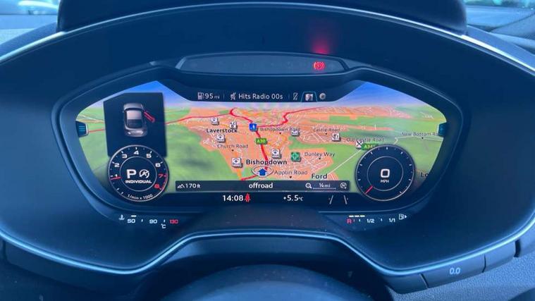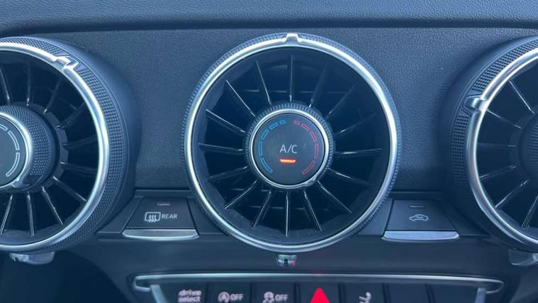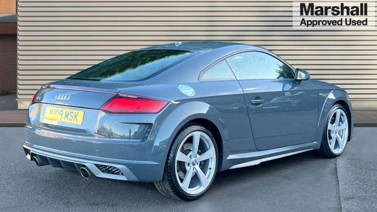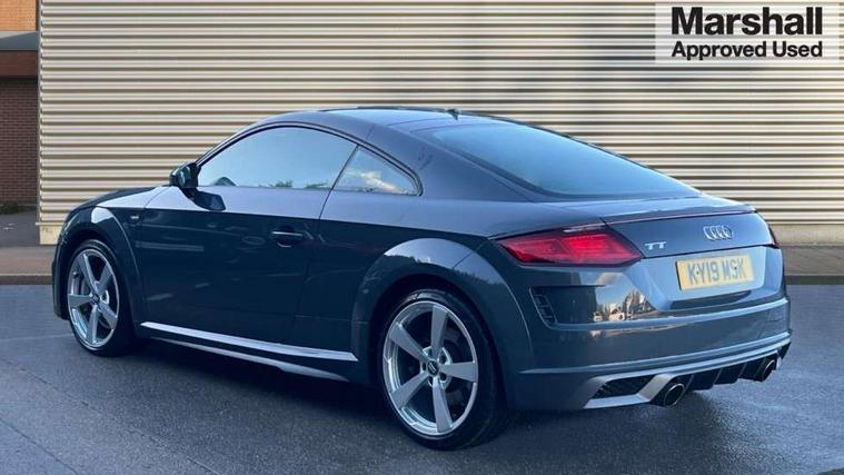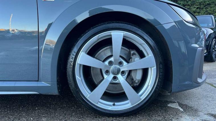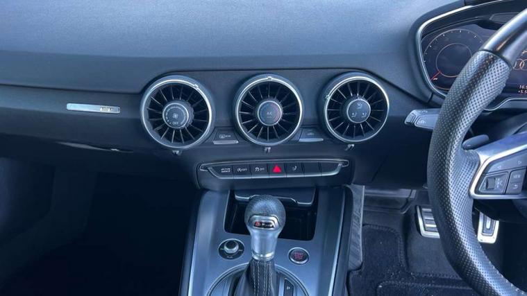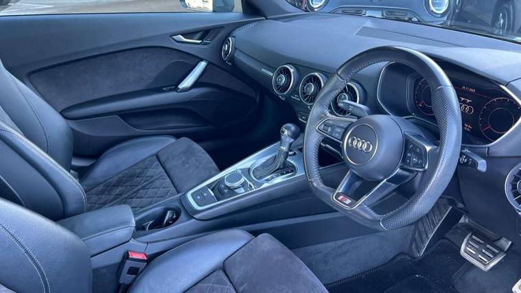 Audi active lane assist, Audi drive select with 4 Pre configured modes, Audi virtual cockpit - 12.3" high-resolution LCD display with fully customisable instrument cluster, Cruise control + speed limiter, MMI touch panel, Mobile phone preparation with bluetooth interface, Progressive power assisted steering, Service interval indicator, Start/Stop system with energy recuperation, TP memo, S line sports suspension, AM/FM radio, Audi music interface, Bluetooth audio streaming, DAB Digital radio, MMI Radio with CD player and SD/XC card slot, Auto dimming rear view mirror, Auto headlight range control, Body colour bumpers, Body colour electrically adjustable and heated door mirrors with built in LED side indicators, Dynamic rear indicators, Electric folding door mirrors, Electric front windows, Front fog lights, Green tinted heat insulating glass, Headlight wash system, High gloss black radiator grille, LED daytime running lights, LED headlights with LED rear lights + dynamic rear indicators, Light and rain sensors, Retractable rear boot spoiler, S line badges on front wings, S Line body styling, S Line front and rear bumpers, S line rear diffuser with platinum grey insert, S line sill plates, Sunband for windscreen, 12V socket, 3 spoke flat bottomed high multi-function leather sport steering wheel with gearshift paddles, 4 way electric lumbar support for driver and front passenger, Air conditioning, Black headlining, Door sill trims with S line logo, Extended aluminium look with stainless steel pedals, Front centre armrest, Front super sports seats, Heated front seats, Height adjustable driver's seat, Height adjustable front head restraints, Height/reach adjust steering wheel, ISOFIX child seat mounting for front passenger seat with airbag deactivation, Perforated leather gearknob, Rear head restraints, Rear top tether child seat ISOFIX attachment, S Line badge on steering wheel, Split folding rear seat, Top tether anchor plate for isofix child seat, Non smoking pack - TT/TT RS, 3 point front seat belts, ABS, ASR traction control, Brake energy regeneration, Curtain airbags, Driver and front passenger airbag with front passenger airbag deactivation, EDL traction control, Electromechanical parking brake, ESP, First aid kit, Front side airbags, Head airbags, Hill hold assist, Seatbelt warning, Tyre pressure warning, Warning triangle, Anti theft alarm, Anti theft wheel bolts, Immobiliser, Keyless Go, Remote central locking, Matt brushed aluminium inlays, Tool kit, Tyre repair kit,