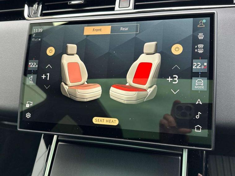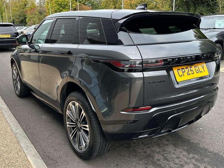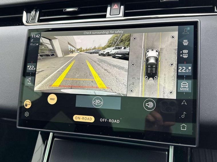 11.4" touch screen, 3D 360 degree surround camera with wade sensing, Adaptive cruise control, Android Auto, Apple car play, Blind spot assist, Bluetooth connectivity, Brake pad wear indicator warning light, Driver condition monitor, eCall emergency system, Eco mode, Electronic power assisted steering (EPAS), Front and rear parking sensors with auto brake, InControl remote, Interactive driver display, Land Rover InControl apps, Lane keep assist, Pivi pro connected includes diamond pivi variant, smart settings, connected navigation pro, nuance speech licence, Powered tailgate/boot lid, Rear collision monitor, Rear traffic monitor, Tailgate, Traffic sign recognition with adaptive speed limiter, Voice control system, Wireless device charging, All terrain progress control, Diesel exhaust fluid (DEF) large tank, Efficient Driveline, Large fuel tank, Terrain Response 2, Digital Audio Broadcast radio-DAB, Steering wheel mounted controls, Acoustic laminated windscreen, Auto headlights, Auto high beam assist, Automatic headlight levelling, Electric windows with one touch open/close and anti trap, Flush deployable exterior door handles, Front and rear recovery eyes, Heated rear window with timer, Heated washer jets, Heated windscreen, LED headlights with signature DRL and LED tail Lights, Power fold, auto-dimming, heated door mirrors with approach lights and auto dimming driver side, Rain sensing windscreen wipers, Rear animated directional indicators, Rear fog lights, Rear side wing doors, Rear wiper, Side repeater indicators in mirror, Tailgate spoiler, Third brake light, Winter wiper park position, 12 way driver memory and 10 way passenger electric front seats with 2 way manual headrest + 4 way lumbar support, 40:20:40 split folding rear seats with centre headrest and armrest, Ambient interior lighting, Bright metal pedals, Carpet mats, Chrome tread plates with range rover branding Includes stainless steel loadspace scuff plate with etched graphic, Customer configurable single point entry, Front and rear cupholders, Heated front seats, Heated steering wheel, Isofix system on outer rear seats, Manually adjustable steering column, Overhead lighting console, Overhead stowage for sunglasses, Passive front head restraints, Rear air vents, Rear head restraints, Satin chrome gearshift paddles, SE Grained leather upholstery, Single passenger seat, Standard steering wheel with Moonlight Bezel, Sunvisors with illuminated vanity mirrors, Twin sliding front centre armrest, Power socket pack 2 - Evoque, 3 rear 3 point seatbelts, Anti-lock braking system (ABS), Brake hold function, Customer configurable autolock, DSC - Dynamic Stability Control, Electronic brake force distribution, Electronic parking brake, Electronic traction control, Emergency braking, Front and rear seatbelt reminder, Hill descent control, Hill launch assist, Low traction launch, Occupant protection assist, Passenger seat occupant detector, Power operated child locks, Roll stability control, Six airbags - Driver and passenger airbags/driver knee airbag/front side airbag and curtain airbags, Torque vectoring brake, Tyre pressure monitoring system, Alarm, Immobiliser, Intrusion sensor, Keyless entry, Locking wheel nuts, All season tyres,