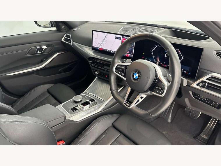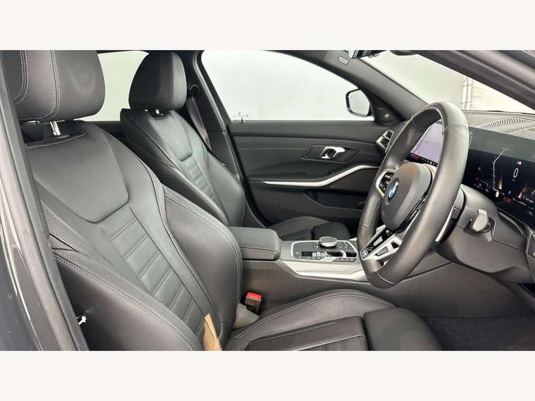 Active guard plus, Attentiveness assist, Automatic Start/stop button, Bluetooth Wi-Fi interface, BMW iDrive, BMW Teleservices, ConnectedDrive Services - last state call, Live cockpit plus with Navigation + 12.3" instrument display + 14.9" display, Intelligent voice assist, 2 USB, 4G LTE connect, Oil sensor for level and grade, Personal e-SIM, Shifting point display, Variable sport steering, Double joint spring strut front axle, Fuel tank breather system, Sport automatic transmission with steering-wheel mounted gearshift paddles and launch control, DAB tuner, 3rd brake light, Auto dimming rear view mirror, Automatic headlight beam throw control with load dependent regulating reaction, dynamic compensation of braking dive and acceleration squat, Bi-LED Low and high beam headlights, BMW emblem, engine compartment lid and tailgate, Body colour roof fin, Door sill strips, Electric windows - front and rear, with open/close fingertip control, anti-trap facility and comfort closing, Fading support, Follow me home headlight function, Front and rear bumper system with replaceable deformation elements, Front apron plastic in body colour, Fuel filler flap - right rear in body colour, Heat protection glazing on front windows and windscreen, Heated washer jets, High gloss chrome kidney frame with high gloss black kidney struts, LED daytime running lights, LED rear lights, LED turn indicator, Licence plate panel integrated into front bumper and tailgate, M high gloss shadow line exterior trim, Matt black B-pillar finsher, Matt black window recess cover, One piece front bumper cover including towing eye cover in body colour, Rain sensor with automatic headlight activation, Rear boot, Rear side wing doors, Reversing lights, Side frame decorative moulding black matt, Trailer stabilisation logic, Visible exhaust tailpipe finisher, Welcome lights in interior and door handle area, 12V power socket in front storage compartment, 2 front cupholder in centre console with clamping elements and matt black inlay, 3 seat bench in 2nd row, 3 spoke M Sport multifunction flat bottom leather steering wheel, 3 zone automatic air conditioning, 40:20:40 split folding rear seat with loading system, Anthracite headlining, Armrest integrated in front and rear door trim + front centre console armrest, BMW ID, Cruise control operation in steering wheel, Driving experience mode switch, Folding rear centre armrest with 2 cupholders, Front and rear headrests, Front and rear velour floor mats, Front footwell lighting, Front reading light, Heated front seats, Height adjustable mechanically and infinitely variable steering column, Illuminated armrest storage compartment, Illuminated glove compartment, Illuminated luggage compartment, Lashing eyelets in luggage compartment, Single front passenger seat, Sunvisors with illuminated vanity mirrors and ticket pocket, Toolkit located in luggage compartment, Connected pack professional - 3 Series Saloon/Touring, Interior and exterior mirror pack - 3 Series Touring/Saloon, M sport exterior styling pack - 3 Series Saloon/Touring, Parking assistant pack - 3 Series, 3x3 point rear seatbelts, BMW emergency call, Child locks on rear doors, Crash sensor activating of airbags, Unlocking doors, hazard warning lights, interior light, safety battery terminal, Drive-off assistant, Driver and front passenger with seat occupancy detection for driver's and passenger side, Driver and passenger side airbags, body protection at side and airbags deploy from seat backrests, Dry braking, Dynamic brake control, Dynamic stability control + (DSC+) - Anti-lock Braking System (ABS) with brake assist and cornering brake control + Automatic Stability Control (ASC), Dynamic Traction Control - DTC, Electric parking brake including automatic hold function and automatic release of the parking brake when driving off, Electronic differential lock control (EDLC), Front airbag deactivation, Front airbags for driver and front passenger, Head airbags in 1st and 2nd row, head protection at side, curtain airbags open from headliner above 1st and 2nd row, Plastic fuel tank, Side impact protection, Tyre pressure sensors, Ventilated front and rear disc brakes, Warning triangle and first aid kit, Alarm system, Centre lock switch, Closing system with central locking, Electronic vehicle immobiliser, Locking wheel bolts,