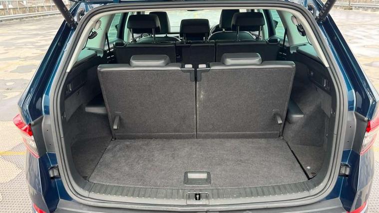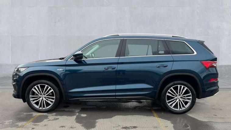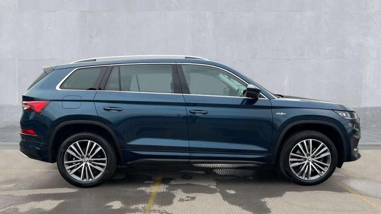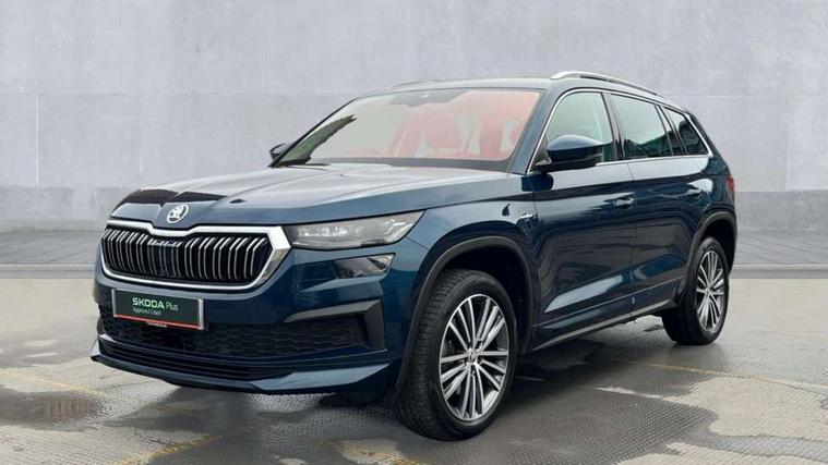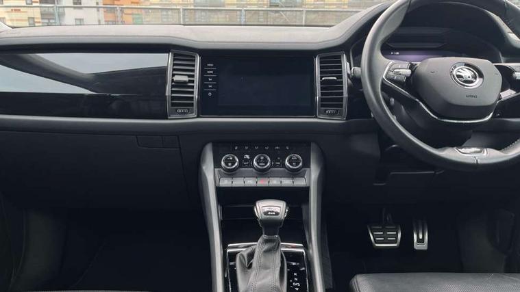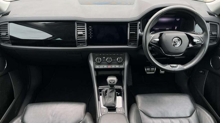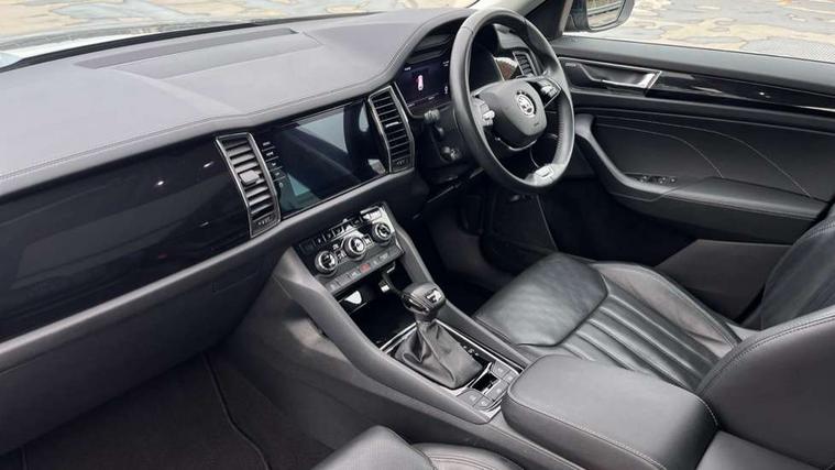 Area view, Blind spot detection system, Bluetooth system, Columbus satellite navigation with 9.2" touchscreen, integrated Wi-Fi, web radio, Digital voice enhancement, E-call, ECO Stop/start function, Exterior temperature indicator, Progressive steering, Smartlink wireless for apple carplay and wired for android auto, Speed limiter, Tailgate unlocking from outside, USB C Port x 2 in front centre console, Virtual Cockpit - 10.25" digital display, Wireless charging, Canton sound system, DAB Digital radio, Aero front windscreen wipers with intermittent function, Aero rear window wiper, Auto dimming rear view mirror, Black wheel arch surrounds, Body colour bumpers, Body colour door mirrors and handles, Body colour door panels, Chrome front grille, Chrome roof rails with chrome window surround, Electric adjustable/heated/folding door mirrors, driver side auto dimming with boarding sports and memory function, Electric front and rear windows, Extended rear spoiler with finlets in gloss black, Front fog lights, Full LED matrix headlights with AFS (adaptive front light system), cornering function and AWL (all weather lighting system), Headlight washers, Heated rear window, Invisible tailpipe, L&K front and rear bumpers including lower rear chrome strip, LED daytime running lights, LED rear fog light, LED third brake light in rear spoiler, Light assistant (coming/leaving home/tunnel light), Off-road style lower front bumper element, Panoramic sunroof, Privacy glass, Rain and light sensors, Rear LED lights (high functionality) with welcome effect and dynamic indicators, Rear side wing doors, Safety reflectors on front and rear doors, Window control switches with black trim, Without engine designation, 12V socket in boot, 2 rails with 2 hooks, 2 seat bench in 3rd row, 3 seat bench in 2nd row, 4 foldable roof handles with rear coat hooks, 60:40 foldable rear seat with sliding adjustment and backrest angle adjustment, Aluminium pedals, Bottle holders in door panel in the 1.5 litre front and 1 litre rear, Cargo storage compartments, Chrome headlight control button, Chrome interior door handles, Coat hooks on B pillar, Covered storage compartment on driver side, Front centre armrest with storage compartment, cup holder and 12V socket, Front courtesy lights, Gear shift lever with chrome frame and black gloss insert, Grey stitching in front and rear armrests and door armrests + door inserts, Height adjustable front headrests, Illuminated and cooled glovebox, Illuminated luggage compartment, Isofix child seat fittings in outer rear seats with top tether, Manually adjustable steering column, Net programme in boot (1x horizontal Net, 2x vertical Nets), Overhead glasses storage compartment, Pollen filter, Rear centre armrest with cupholders, Single front passenger seat, Sliding trunk cover, Small Bags on the inner sides of the front backrests, Sunvisors with illuminated vanity mirrors, Three rear height adjustable headrests, Ticket holder on A Pillar, Umbrella in door panel, Variable boot floor, LED Interior light pack - Kodiaq, Auto door release and activation of warning lights in the event of an accident, Child locks on rear doors, Driver and front passenger airbag with knee airbag and front passenger airbag deactivation, Electronic parking brake with hill start assist, Emergency rear braking signal, ESC (incl. ABS+MSR+ASR+EDS+HBA+DSR+RBS+MKB), Front assist with autonomous emergency braking, Front side airbags with curtain airbags, Fuel cut off safety device, Height adjustable front 3 point seatbelts + pretensioners, Hill hold control, Rear disc brakes, Safety vest holder in door, Seat belt reminder for all seats, Three point rear seat belts, Two tone horn, Tyre pressure monitor, Alarm with interior monitoring and tilt sensor with safe function, Anti-theft wheel bolts, Immobiliser, Keyless entry and start system (KESSY), Remote central locking with 2 keys, Grey stitching in dashboard, Piano black decorative inserts, Plaquette L&K front fenders, Temporary spare wheel (space saver),