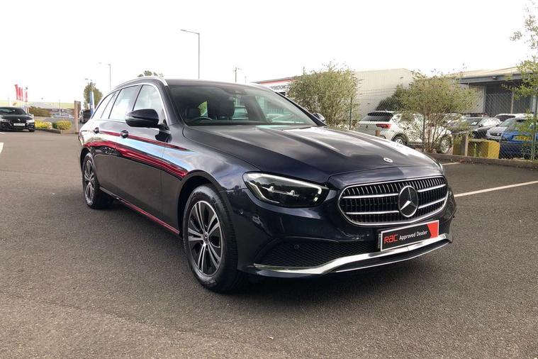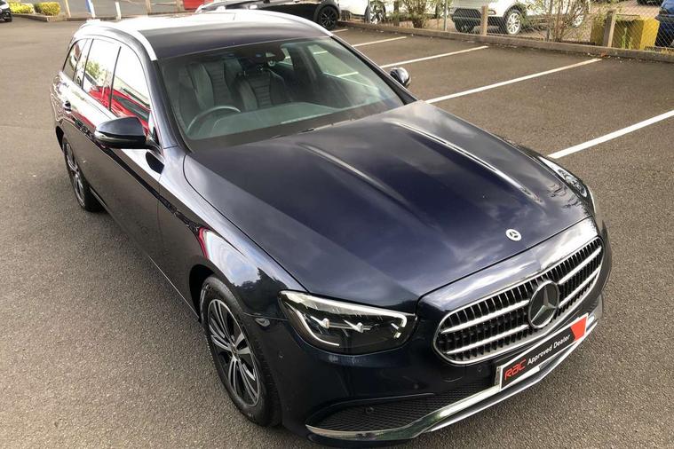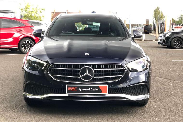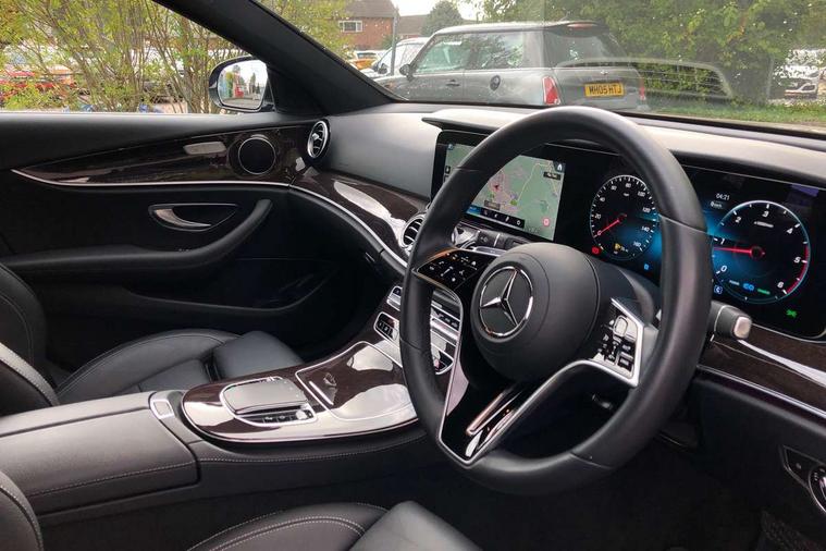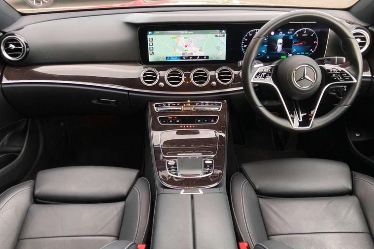 Attention assist, Blind spot assist, Brake wear warning display, Cockpit display 10.25" widescreen digital instrument cluster, Cruise control with variable speed limiter, Direct steer speed sensitive steering, DYNAMIC SELECT with a choice of driving modes (ECO, Comfort, Sport, Sport+ and Individual), Easy-pack tailgate - Powered opening/closing automatically, ECO start/stop function, Emergency call service, High resolution 10.25" multimedia colour display, MBUX voice control activated by keywords "Hey Mercedes", Mercedes connect me, Outside temperature display, Remote boot release, Service indicator (ASSYST), Smartphone integration via Android Auto/Apple CarPlay, Media Interface, USB and Bluetooth interface, Status display for rear seat belts in instrument cluster, Touchpad with controller, Traffic sign assist, Trip computer in multifunction display showing current fuel consumption, Wireless charging, 25 litre AdBlue tank, 66 litre fuel tank, 9G TRONIC 9 speed automatic transmission, Agility control sports suspension with selective damping system and lowered by 15mm, Diesel particulate filter, Incorrect fuelling protection, Rear air suspension with level control, 2 USB ports in centre console, 2 USB ports in the rear, MBUX multimedia system with DAB digital radio and touchpad including satellite navigation, 3rd brake light, Adaptive brake lights, Aerial integrated in rear window, Body colour door mirrors, Chrome roof rails, Chrome trim on the front bumper and high gloss black trim on the rear bumper, Electric windows with one touch opening/closing and obstruction sensors, Electrically adjustable and heated door mirrors, Green tinted glass, Illuminated front door sill panels with Mercedes-Benz lettering, LED High Performance headlamps including integral LED daytime running lamps and adaptive highbeam assist, LED rear lights, Radiator grille with chrome surround, two chrome louvres plus vertical bars with high-gloss black front edge and integral Mercedes star, Rain sensor with automatic headlight activation, Rear side wing doors, Rear wiper, Tail lights, Top surround of side windows in polished aluminium, Visible twin pipe exhaust system integrated into bumper, 3 seat bench in 2nd row, 3 spoke multifunction steering wheel trimmed in nappa leather with touch control buttons, 40:20:40 split folding rear bench seat, Auto dual-zone climate control system, Automatic child seat recognition sensor, Black door pins, Central stowage compartment with 12 V socket in centre console, USB socket for use with Android Auto and Apple CarPlay, Courtesy lights in rear grab handles with reading light functionality, Four way partially front electric seat adjustment, Front centre armrest with stowage compartment, Glasses compartment in overhead control panel, Glove compartment - lockable, air conditioned and illuminated, Head restraints for driver and front passenger (four-way adjustability) and in rear (two-way), Heated front seats, Interior lighting - 64 colour Ambient lighting, Leather upholstery, Seat occupancy sensor for front passenger seat, Single front passenger seat, Steering column manually adjustable for height and reach, Steering wheel multifunction with gearshift paddles, Steering wheel touch control buttons for audio and onboard settings, Sunvisors with illuminated vanity mirrors, Velour floor mats, Mirror pack - E Class, Parking package with reversing camera - E Class, Seat comfort pack - E Class, Stowage pack - E Class Estate, 3x3 point rear seatbelts, Active bonnet pedestrian safety measure which detects an impact and raises bonnet, Active brake assist, Adaptive brake system with HOLD function and brake drying in the wet, Airbags - sidebag for driver and front passenger with combined thorax/pelvis bag, Anti-lock braking system (ABS), Childproof locks manually operated for rear doors and electrically operated for rear power windows, Driver and adaptive front passenger airbags, Drivers knee airbag, Electronic parking brake, Electronic Stability Programme, Hill start assist, ISOFIX child seat attachment points two outer rear seats, Pre-Safe anticipatory safety system, Tyre pressure monitoring system, Warning triangle and first aid kit, Window airbags, Alarm system/interior protection/immobiliser, Central locking with interior switch, automatic locking and crash sensor with emergency opening function, Chrome surround electric key, Keyless entry go starting function, Brown high glass ash wood trim and centre console in high gloss brown ash wood, 17" 5 spoke alloy wheels painted in black with a high-sheen finish, Summer tyres, TIREFIT with tyre inflation compressor,