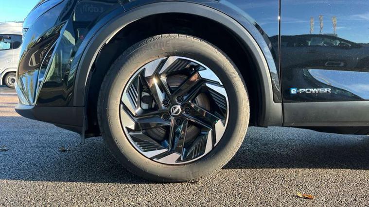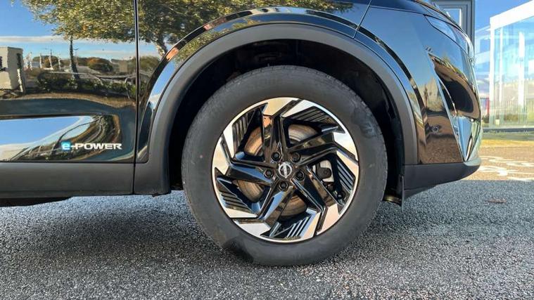 2 front USB-C ports, 2 rear USB-C ports, 360 degree Intelligent around view monitor with moving object detection, Blind spot intervention, Blind spot warning, Drive assist custom mode, Drive modes (sport, normal, eco), Driver drowsiness and attention warning, e-Pedal step, Electric speed sensitive power steering, Emergency and breakdown call, Emergency lane keep assist, Emergency Stop Signal (ESS), Engine start/stop button, EV mode switch, Event data recorder, Front and rear parking sensors, Full Digital 12.3" TFT Digital Combimeter, Google virtual personal assistance, Idle stop/start system, In-car WIFI hotspot, Intelligent Cruise control (ICC), Intelligent forward collision warning, Intelligent speed assist, Lane departure warning system, Nissan connect 12.3 inch touchscreen infotainment system, Nissan connect navigation with google maps, Nissan connect services 2.0 (Google Automotive System), Outside temperature sensor, Rear cross traffic alert, Reversing detection, Traffic jam pilot, Wireless Apple CarPlay/Android Auto, Wireless charging pad, Limited slip differential, 6 speakers, AM/FM audio system with DAB, Bluetooth audio streaming, Auto dimming frameless rear view mirror, Auto rear wiper when reversing, Body colour mirror caps, Body coloured door handles, Bodyside mouldings, Chrome side window finisher, e-POWER badging, Electric auto folding door mirrors, Electrically adjustable and heated door mirrors with LED turn indicator, Follow me home headlights, High beam assist, Intelligent auto headlights, LED 3rd brake light, LED daytime running lights, LED Headlights, LED rear lights, One touch front and rear electric windows with remote opening and closing, One touch passenger window, Partially body coloured bumpers, Rear privacy glass, Rear roof spoiler, Rear side wing doors, Rear styling plate, Shark fin antenna, Splash free rain sensing wipers, Super UV and infrared cut glass, Three blink turn signal, 3 bench rear seats in 2nd row, 3 rear headrests, 60/40 split folding rear seat bench, Chrome interior door handles, Cloth upholstery, Dark headlining, Driver seat back pocket, Dual zone automatic climate control with pollen filter, e-POWER shifter, Front door with bottle holders, Height adjustable front headrests, Luggage board system, Luggage space lighting, Multifunction steering wheel, Passenger seat back pocket, Rear door bottle holders, RGB ambient light (Full area coverage), Single front passenger seat, Smooth leather steering wheel, Tilt/telescopic adjustable steering wheel, Two rear isofix child seat anchorage points with top tether, 3x3 point rear seatbelt pretensioners + load limiters, Autonomous emergency braking, Child locks on rear doors, Curtain and front side, far side airbags, Driver and passenger airbags, Driver, passenger and 2nd row rear seat belt reminder, Electric handbrake with auto hold function, Front seatbelt pretensioners + load limiters, Height adjustable front seatbelts, Hill start assist, intelligent front emergency braking, Rear automatic braking, Tyre pressure monitoring system, Vehicle dynamic control, Engine immobiliser, Intelligent key with walk away lock and approach unlock functions, Remote central door locking with deadlocking, Thatcham alarm, 18" Diamond cut alloy wheels, Tyre puncture repair kit,