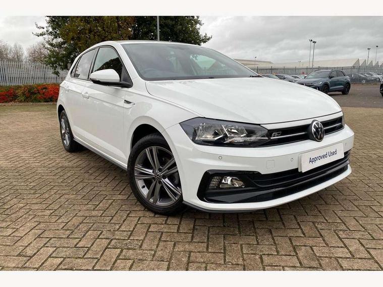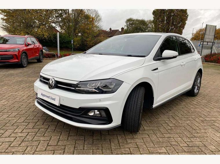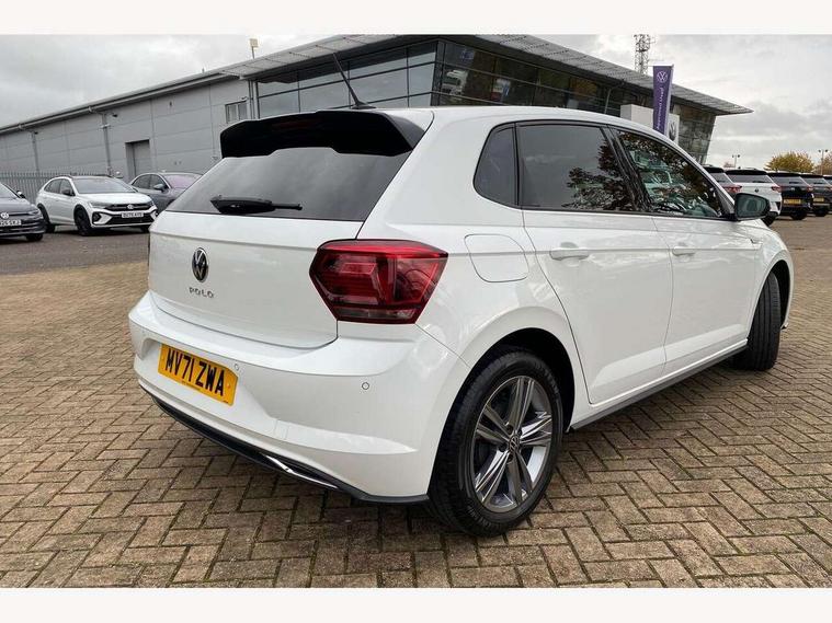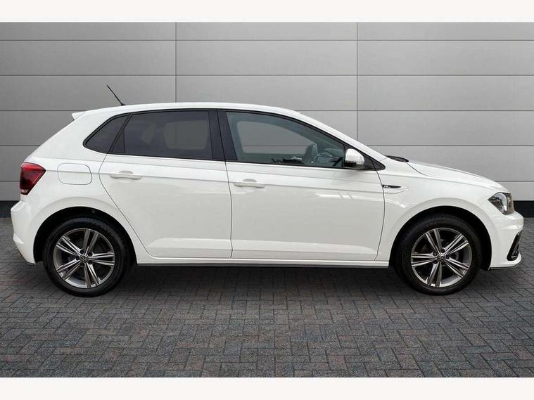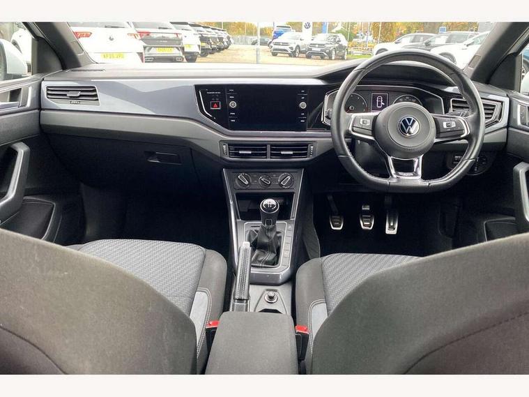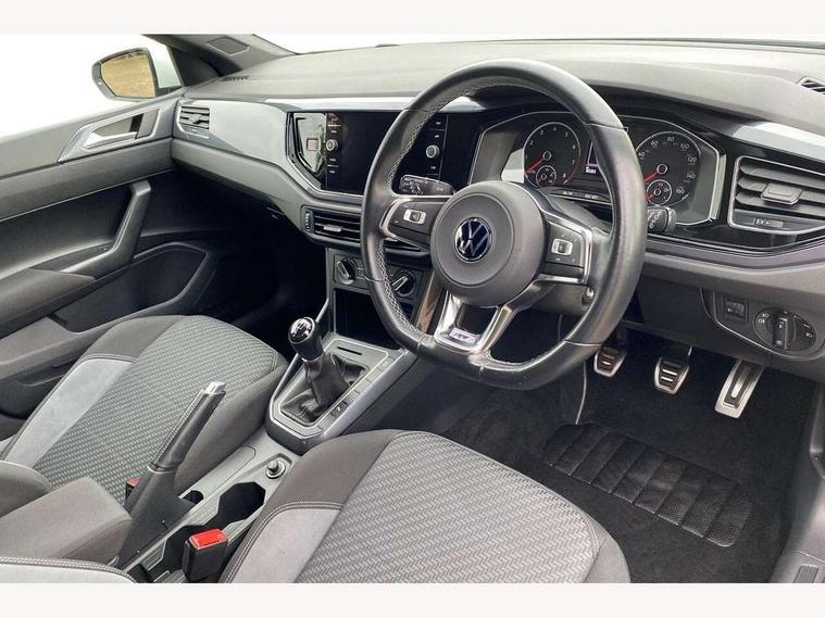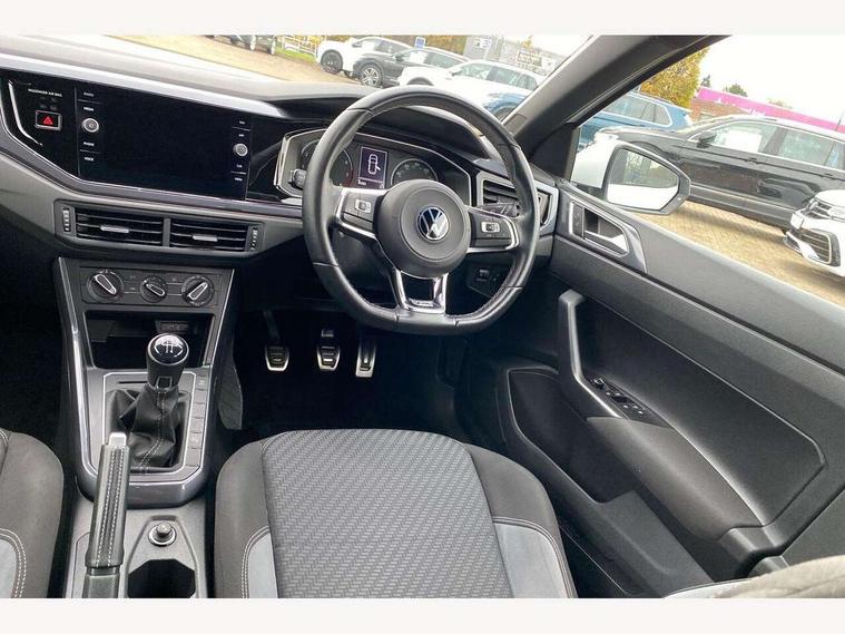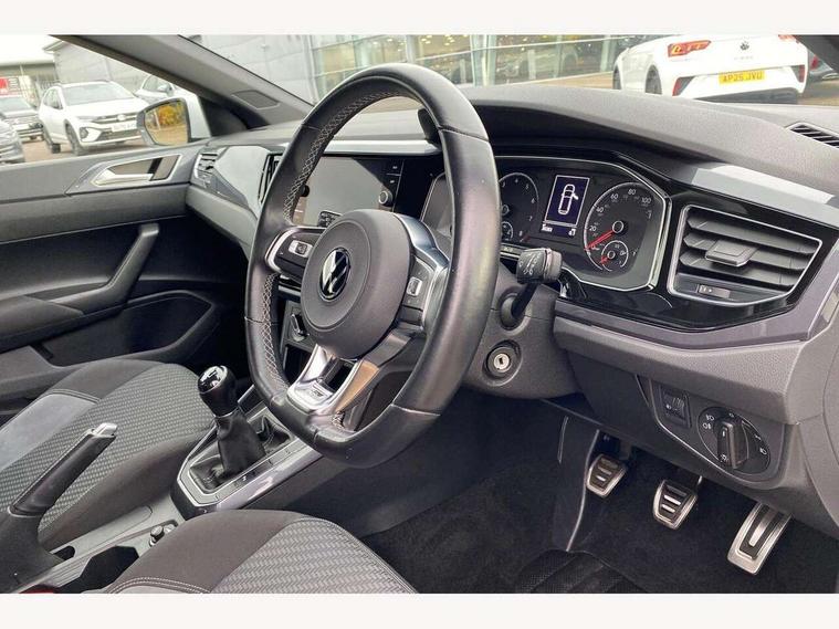 Digital clock, Driver alert system, Emergency call service, Lights on warning, Multifunction computer plus, Power assisted speed sensitive steering, Speedo and rev counter, electronic odometer, trip, service interval display and fuel gauge, Start/stop system, Volkswagen connect, Warning buzzer and light for front seatbelts unfastened, Wireless app connect, Battery regeneration during braking, Galvanished body, Diversity antenna for FM reception, Front and rear 6 speakers, Black grille with chrome surround, Body colour door handles, Body coloured side sills, Chrome trimmed strip on lower bumper, Electric front windows, Electrically adjustable and heated door mirrors with reverse activated kerb view adjustment on passenger's side, Front windscreen washers and wipers with 4 speed intermittent delay, Heated rear window with auto timer, High level 3rd brake light, LED darkened rear light clusters, LED daytime running lights, LED rear number plate lights, Left and right chrome effect trapezoid fascia exhaust tailpipe surrounds, Rear diffuser, Rear electric windows, Rear windscreen washer and wiper with interval delay, reverse activated, Unique R Line badging, 2 bag hooks in luggage compartment, 2 front cupholders and 12 V socket with cover, 3 rear head restraints, 60/40 split folding rear seat, Ambient lighting in front foorwell, front/rear door and dashboard light strips, Carbon flag cloth upholstery, Centre console storage with open storage compartment, Chrome-plated electric mirror adjustment switch surround, Chrome-plated electric window button surround, Driver and front passenger seat height adjustment, Driver and front passenger sunvisors with illuminated vanity mirrors, Dust/pollen filter, Folding rear seat backrest, Front + rear carpet mats, Front head restraints, Front seat backrest storage pockets, Front sport seats with lumbar adjustment and R line logo on seat backrest, Gear lever gaiter in black trim surround, Glovebox, Handbrake grip button in chrome effect, Height/reach adjustable steering column, Instrument lighting, adjustable panel illumination, Interior light with delay, Isofix Preparation 2 Rear child seats, Leather gear knob and handbrake grip, LED interior lighting - 2 reading lights front and rear with interior delay and dimming function, Luggage compartment cover, removable, Luggage compartment lighting, Luggage compartment with variable load floor, Stainless steel pedals, Storage compartment in front doors, Storage compartment in rear doors, Storage compartment under front seats, Three spoke leather trimmed multifunction steering wheel with aluminium inserts and R Line Logo, Titanium black roof lining and sun visors, Unique R Line door sill protectors, Light and sight pack - Polo, R Line styling pack - Polo, 3 point height adj front seatbelts + pretensioners, 3x3 point rear seatbelts, ABS, Automatic post collision braking, Driver/front passenger airbag, Drivers and front passengers safety optimised head restraints, ESP with EDL + ASR, Front and rear passenger curtain airbags, Front passenger airbag deactivation, Front seat side impact airbags, Front/rear disc brakes, Hill hold control, Hydraulic Brake Assist (HBA), Single tone horn, Tyre pressure monitoring system, Alarm with interior protection and deactivation via infotainment system, Electronic engine immobiliser, Remote central locking with 2 remote folding keys, Chrome plated air vent surround, Chrome plated instrument surrounds, Shadow steel decorative inserts,