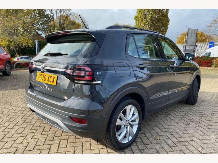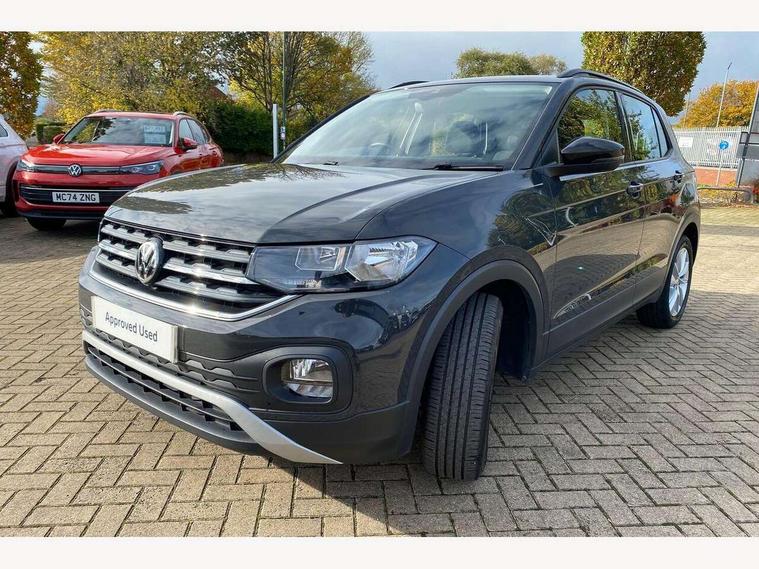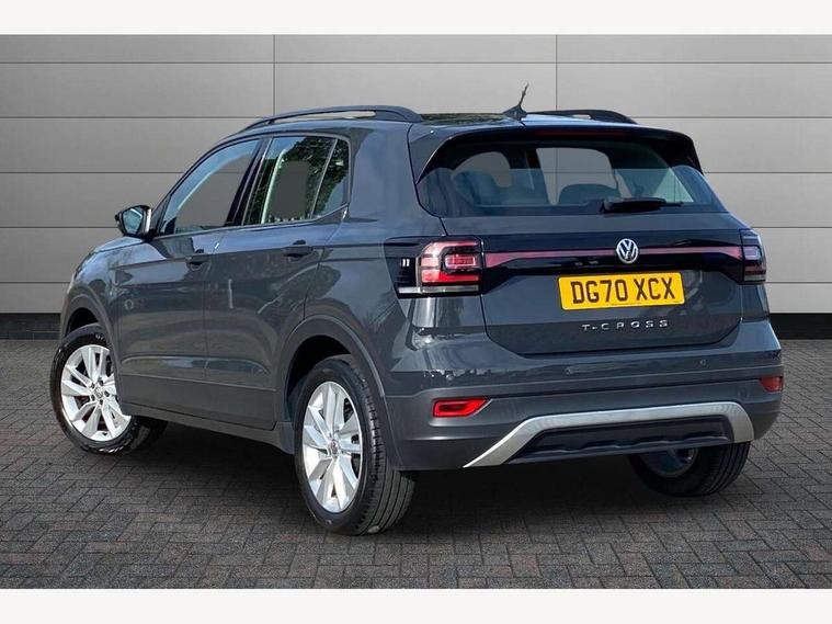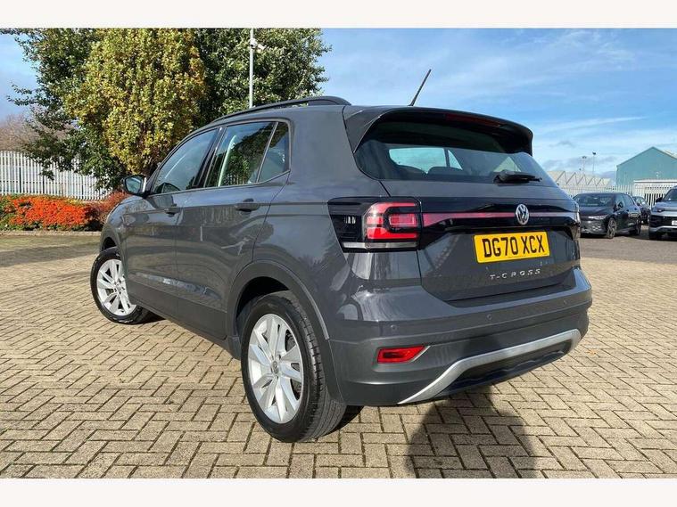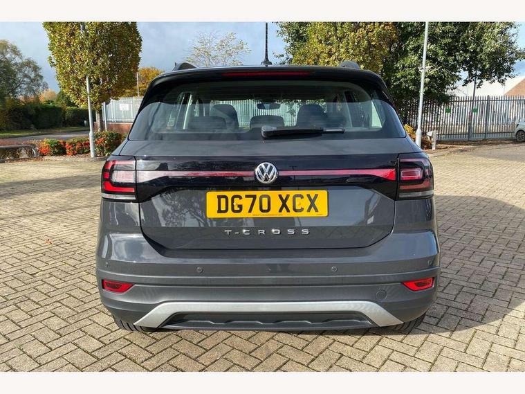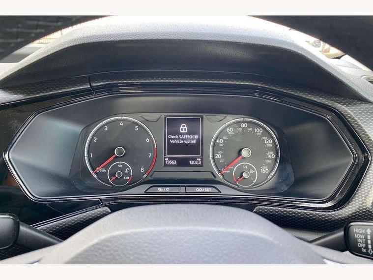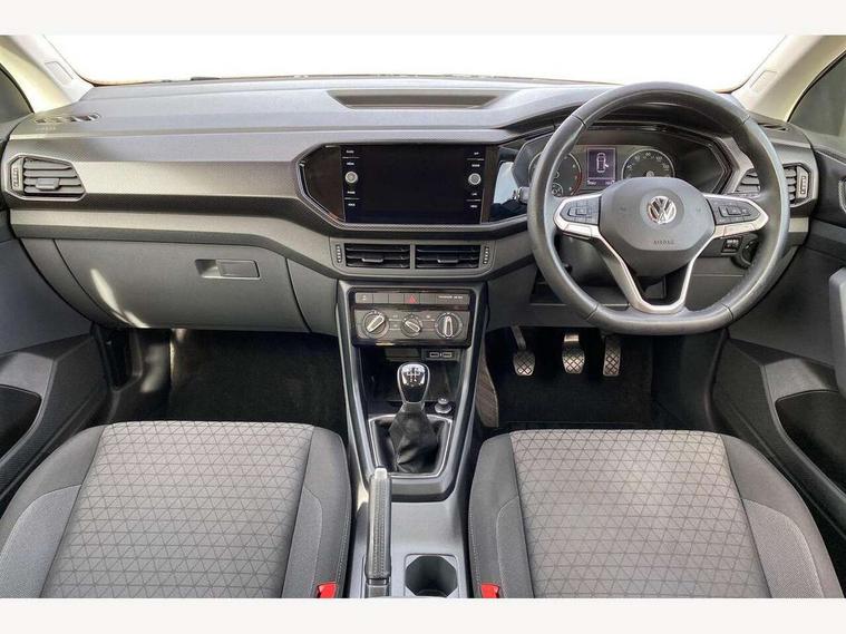 'Lights On' Reminder warning buzzer, Adaptive cruise control including front assist, forward collision warning, autonomous emergency braking, speed limiter, Driver alert system, eCall emergency call system, Lane assist, Multifunction computer with visual gear change recommendation for fuel consumption, Power assisted speed sensitive steering, Speedo, rev counter, electronic odometer, trip, service interval display, exterior temperature and fuel gauge, Stop/start system, Warning sound and light for doors and tailgate open, Warning sound and light for front seatbelts unfastened, We Connect Go Dongle, Wireless Car net app connect with Apple CarPlay, combined functionality of Apple CarPlay/Android Auto and MirrorLink, Battery regeneration during braking, Misfuel prevention device, 2x USB connection with USB charging sockets and in rear centre console, Diversity antenna for FM reception, Premium USB cable for Apple or Android smartphone compatibility, Automatic dimming interior rear view mirror, Automatic hazard lights activation under emergency braking, Black roof rails, Body colour door handles, Body coloured bumpers, Dusk sensor + automatic driving lights, Front and rear electric windows, Front fog lights with static cornering function, Galvanised body, Heated rear window, High level 3rd brake light, Lower door sills and door pillars in black, Manual coming/automatic leaving home lighting function, Radiator grille with high gloss surface and chrome strip, Rain sensor, Rear lights incorporating LED technology, Rear window aerial, Rear windscreen washer and wiper with interval delay, Reflectors in all doors, Tailgate with integrated roof spoiler, Windscreen wipers/ intermittent wipe + 4 position delay, 12V Accessory socket in centre console, 3 rear head restraints and 3 rear three point seat belts with ECE label, 60/40 split folding rear seat backrest, Drawer under drivers seat, Driver and front passenger sunvisor with vanity mirror, Driver's sunvisor with ticket holder, Dust and pollen filter, Front and rear reading lights X 2, Front centre armrest with storage compartment, Front seat back storage pockets, Glovebox, Heating and fresh air system with 4 stage blower, Height/reach adjust steering wheel, Instrument lighting white adjustable panel illumination, Interior light with delay, Isofix child seat preparation for 2 rear child seats, Luggage compartment cover, Luggage compartment lighting, Manual front seats with height adjustment, Moveable and foldable Rear bench seat, Storage compartment in drivers and front passengers door, Variable boot floor, Composition Media infotainment system pack - T cross, Anti-lock Braking System (ABS) with Hydraulic Brake Assist (HBA), Automatic post collision braking system, Driver and front passenger safety-optimised head restraints, Drivers and Front Passengers airbags with front passengers airbag deactivation switch, ESC with EDL, ASR, EDTC and trailer stabilisation function, Extended and proactive pedestrian protection, Front and rear curtain airbags, Front disc brakes and rear drum brakes, Front seat side impact airbags, Height adjustable 3 point automatic front seatbelts with pretensioners, Hill start assist, Pre crash preventive occupant protection, Rigid safety cell with front and rear crumple zones, Tyre pressure loss indicator, Volkswagen roadside assistance, Alarm with interior protection and deactivation via infotainment system, Child security locks in rear doors, Remote tailgate unlocking using key fob,