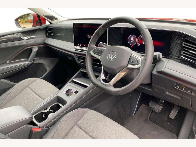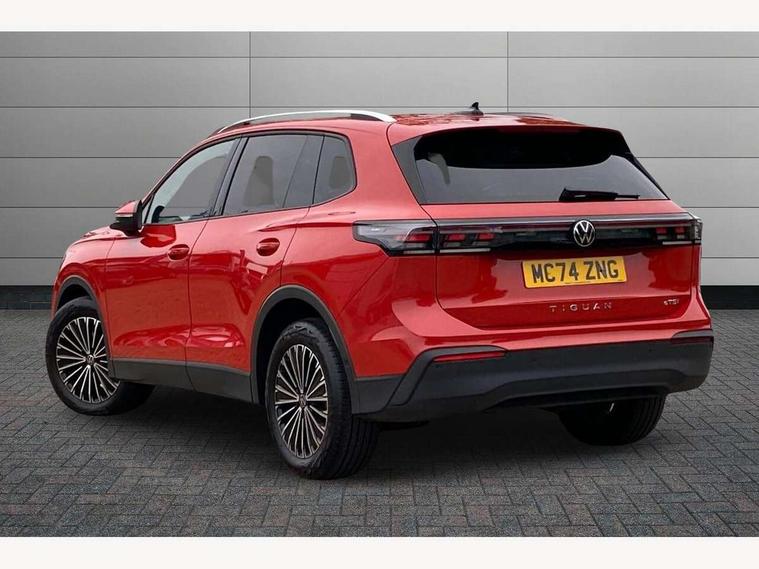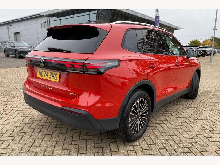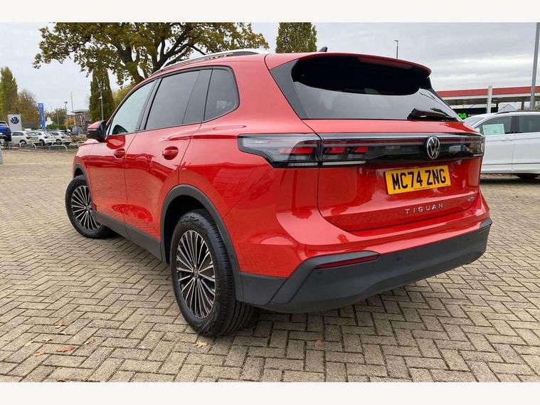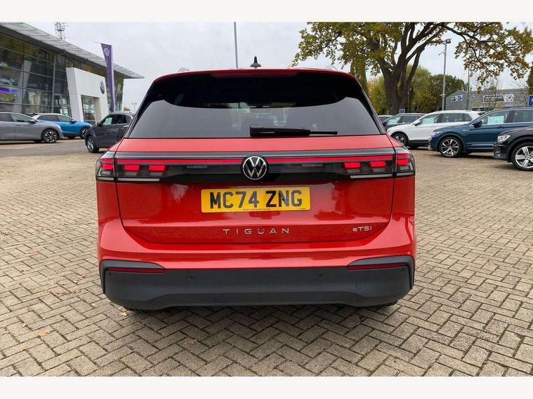 Adaptive cruise control (ACC), Advanced driver attention and drowsiness monitor, Bluetooth mobile phone interface, Car2X technology, Digital Cockpit Pro - 10.25" high resolution dash display screen with customisable menus and information, Dynamic road sign display, E-Sim card for online connectivity, eCall emergency call service, Front Assist - Autonomous emergency braking with pedestrian and cyclist monitoring, Lane change system, Side assist, Rear traffic alert and Exit warning system, Lane keeping system Lane Assist, Multifunction front facing camera, Oncoming vehicle braking when turning including swerve support, Park assistance plus with front and rear parking sensors, Power assisted steering with speed sensitive, Start/stop system with regenerative braking, Warning signal and warning light for front and rear seatbelts not fastened, Wireless App-Connect, Front wheel drive, Digital radio reception (DAB), Diversity antenna for FM reception, Ambient lighting with logo projection, Auto dimming interior rear view mirror, Automatic headlight control system, Body coloured bumpers and air intake with chrome trim, Body coloured door handles, Body-coloured exterior mirror housings, Coming/leaving home lighting function, Heat insulating glass in side and rear windows, Heat insulating windshield, Heated rear window, High level 3rd brake light, Illuminated door handle recesses, Illuminated lightline between headlamps, Rain sensor windscreen wipers, Rear fog light on one side, reversing light on both sides, Rear side wing doors, Rear wiper, 12V outlet in center console rear and in luggage compartment, 12V socket in centre console, 3 bench rear seats in 2nd row, Air care climatronic 3 zone air conditioning system with rear air conditioning control panel, Carpet mats, front and rear, Centre console with illuminated storage compartment with sliding cover and two drinks holders, Ceramique headlining, Door and side trim panel in foam film and woven fabric, Front centre armrest, ISOFIX anchors for child seats on outer rear seats and front passenger seat. Compatible with i-Size, Mechanical rear seat release, Power adjustable lumbar support in front, Rear bench seat, split folding, longitudinally movable and folding with load-through hatch and centre armrest, Safety optimised front head restraints, Single front passenger seat, Sun visors with illuminated vanity mirrors, Three rear head restraints, Variable luggage compartment floor, Comfort package with park assist pro - Tiguan, Design package - Tiguan, 3 point seat belt for centre rear seats, 3 Point seat belts in front with pretensioners, 3 point seatbelts in outer rear with ECE label, Driver and front passenger airbag with front passenger airbag deactivation, Electronic parking brake with auto hold, Front and rear curtain airbags, Front and rear side airbags, Front centre airbag, Front disc brakes, Manual child proof rear door locks, Rear disc brakes, Two tone horn, Warning triangle, Anti theft wheel bolts, Soul instrument panel, Airstop tyres,