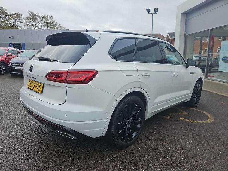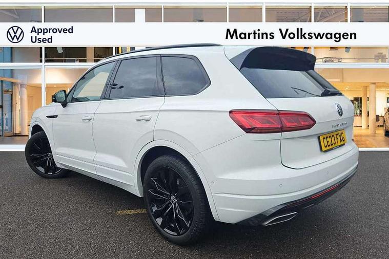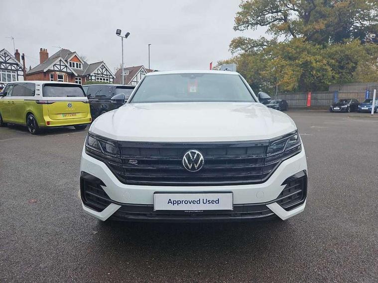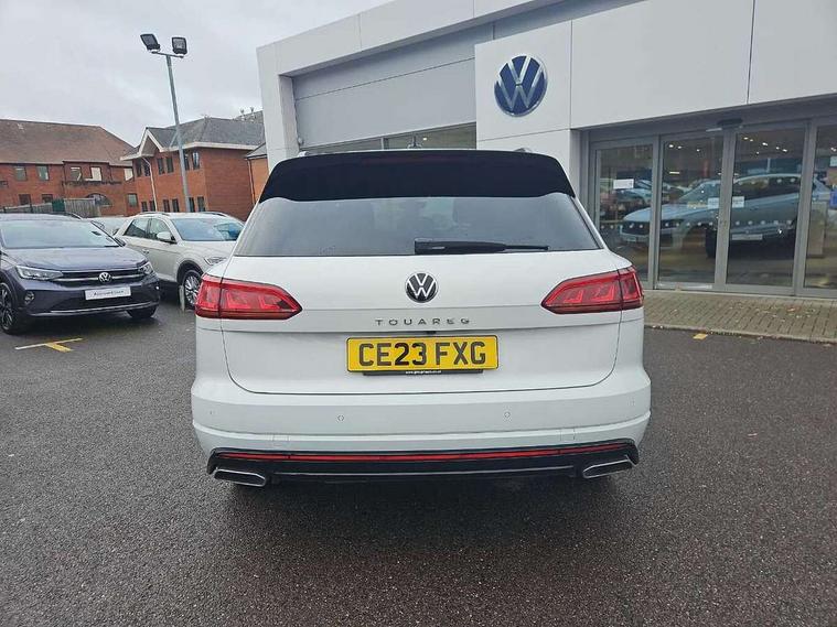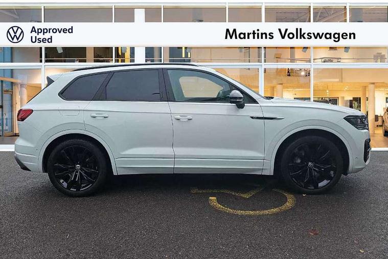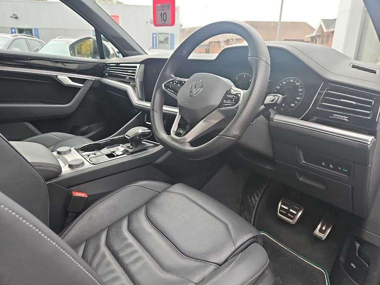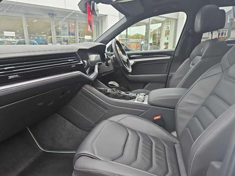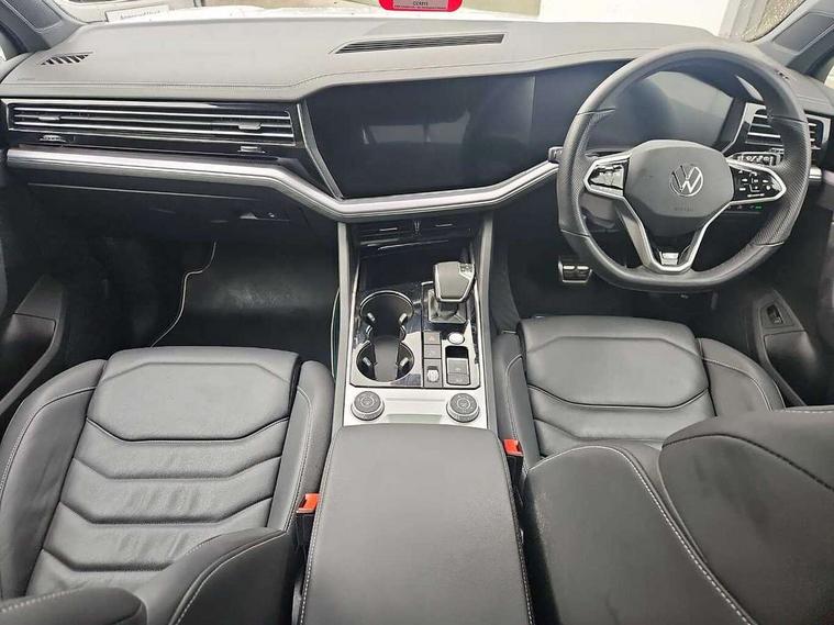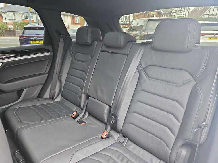 2D/3D map view, ACC - Adaptive cruise control with front assist, forward collision warning, distance monitoring, city emergency brake and speed limiter, Apple car play/Android Auto, Audible and visual fatigue detection system, Bluetooth hands free telephone connection, Car information display, Drive select with Damper control, Driver alert system, Driver profile selection, Dusk sensor, Dynamic road sign display camera controlled system with visual warning for traffic and road signs, eCall emergency system, Fully electric tailgate + keyless entry and start, Instrument cluster, MirrorLink, Multifunction camera, Multifunction computer premium with 7" colour display, One touch indicators with repeat function, Service interval indicator, Speed sensitive power steering, Start/stop system with regenerative braking, Tailgate power latch, Think blue trainer driver tips and journey analysis, Traffic sign recognition, Voice control system, Wireless Smartphone charger, 24 litre AdBlue tank, Torsen limited slip differential, DAB Digital radio, Dynamic navigation based on TMC+, Gesture control for infotainment system, Multi device interface (MDI) with illuminated USB-C connection, Music playback - MP3, WMA and AAC files, SD card slot, Simultaneous pairing of 2 compatible mobile devices, SMS functionality - read, compose and send SMS messages using touch-screen display, Title and cover art display, Volkswagen media control, Adaptive low beam for urban and motorway use, Auto dimming rear view mirror, Automatic coming/leaving home lighting function, Automatic headlights, Black anodised roof rails, Black door mirrors, Black rear diffuser, Black side window surrounds, Black upper and lower grille louvres extending into headlights and radiator grille, Body colour door handles, Body coloured wheel arches, C signature gloss black front air intake, Chromed tailpipe on the left and right integrated in the bumper with trapezoid design, Dynamic headlight range control, Electric front tilt/slide panoramic sunroof and fixed rear sunroof, Electrically power adjustable, heated, folding, auto dimming, front passenger exterior door mirror lowering function, Front and rear electric windows, Galvanised body, Gloss black finish B pillar, Gloss black rear diffuser, Headlight washers, Heat insulating glass in side and rear windows, Heated windscreen washer jets, IQ.Light-LED matrix headlight, daytime running light with dynamic cornering light and indicator, LED 3rd brake light, LED rear fog light, LED rear number plate lights, Plastic scuff plates in door apertures, Poor weather light, Puddle lights, Rain sensor, Rear side wing doors, Rear wiper, 12V socket in front and rear centre console and boot, 2 Coat hooks on B pillar, 3 rear head restraints, 3 seat bench in 2nd row, 3 spoke sport heated leather multi-function sports steering wheel with gear shift paddles - generation 2, 4 way adjustable front head restraints, 4 way electric lumbar support for driver and front passenger, 4 zone climate control, 40:20:40 split folding slide/recline rear seat, B pillar vents, Black lower edge of door extending sills, Branded points of interest, Double sun visor for drivier and passenger with LED illuminated vanity mirrors, Electric luggage compartment cover, Folding rear centre armrest with 2 cupholders, Front + rear carpet mats, Front centre armrest with storage box, Gear shift indicator, Height/reach adjust steering wheel, Illuminated air conditioned glovebox, Isofix preparation for 2 rear child seats, Jack and tool kit, Leather trimmed gear knob with gloss black inlay/aluminum trim, Leatherette door trim, LED luggage compartment lighting, Load through provision, Luggage compartment with load lashing rings, Plastic loading edge protection, Rear seat remote release levers, Single front passenger seat, Soul black headlining, Stainless steel pedals, Innovision cockpit pack - Touareg, 3 point front seatbelts with pre-tensioners, ABS, Active bonnet, Automatic post collision braking system, Curtain airbags, Driver/Front Passenger airbags, EBD + Brake Assist, EDL, Electronic parking brake with auto hold, ESC with ASR, Front seat side impact airbags, Hill descent control, Hill start assist, Passenger airbag deactivate switch, Seatbelt warning lamp and buzzer, Three 3 point rear seatbelts, Two tone horn, Volkswagen roadside assistance, Warning triangle and first aid kit, Alarm with interior monitoring in cab, backup horn and towing protection, Child security locks for front and rear doors, Electronic engine immobiliser, Remote central locking, Black decorative trims on the side windows, High gloss black centre console,