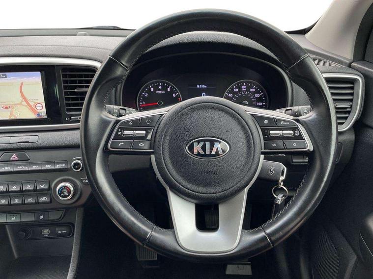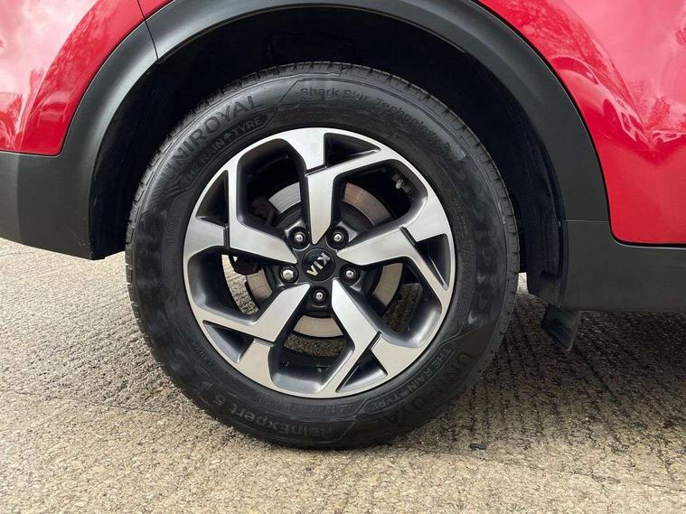 3.5" supervision cluster display, 7" touchscreen satellite navigation with European mapping and traffic messaging channel, Android auto with voice control, Apple car play with voice control, Bluetooth connectivity with voice control, Cruise control + speed limiter, Driver attention warning, Emergency stop signalling system, Kia connected services featuring TomTom live, Lane keep assist, Rear parking sensor, Reversing camera, Speed limit information, Speed sensitive power steering, Trip computer, Windscreen washer level indicator, Intelligent Stop and Go, 6 speaker audio system, Bluetooth audio streaming, DAB Radio with MP3, Rear USB port, Steering wheel mounted audio controls, USB/iPod/auxiliary input connections, All round electric windows with drivers auto up/down function, Auto dimming rear view mirror, Automatic headlights, Automatic lighting control, Bi-Function halogen headlights, Black side sill and wheel arch body mouldings, Body colour door handles with chrome inserts, Body colour door mirrors, Chrome front bumper insert, Chrome grille surround, Chrome window surround, Electrically adjustable/heated/folding door mirrors with LED indicators, High beam assist, High gloss black diamond mesh radiator grille, LED daytime running lights, Privacy glass (rear side windows and rear screen), Projection front fog lights, Rain sensing front wipers, Rear spoiler, Rear wiper, Roof rails, Shark fin antenna, Speed sensitive front wipers, Tinted glass, Trailer stability assist, Welcome and follow-me home light functionality, Wide view drivers door mirror, 12V power in front and rear centre console, 3 x passenger assist grips, 60/40 split folding rear seat, Air filter, All-round height adjustable headrests, Centre cabin light, Centre console storage box, Door armrest in leather, Driver and front passenger side sunvisors with illuminated vanity mirrors, Driver's seat manual height adjust, Drivers seat power lumbar support, Dual zone automatic air conditioning, Front and rear door storage, Front cabin LED map light with sunglasses case, Front door courtesy reflectors, Front seat and rear pockets, Front/rear centre armrests, Gear shift indicator, Glovebox illumination, Heated front and outer rear seats, Ignition key lock illumination, Interior door lock/unlock function, ISOFIX Child seat top tethers and anchor fixings, Leather steering wheel, Leather trimmed gearshift, Light grey headlining, Luggage area light, Luggage area load cover, Luggage net with hooks, Premium cloth upholstery, Rear centre armrest with cupholder, Rear coat hooks, Satin chrome interior door handles, Tilt/telescopic adjustable steering wheel, Ventilation ducts to rear compartment, Active front headrests, All round 3-point seatbelts, Anti-lock braking system with electronic brakeforce distribution, Dual front side airbags, Electronic stability control with downhill brake control, ESP + traction control, Front passenger airbag cut-off switch, Front seatbelt pretensioners + load limiters, Height adjustable front seatbelts, Hill start assist control (HAC), Impact sensing auto door unlocking, Rear door child safety locks, Twin curtain airbags with roll over sensor, Twin front airbags, Tyre pressure monitoring system, Advanced anti-theft system including immobiliser and alarm, Door deadlocks, Locking wheel nuts, Remote central door locking with fold away key, Speed sensitive auto door locking, Visible vehicle identification number, Metallic finish centre fascia, 17" Alloy wheels, Tyre mobility kit,