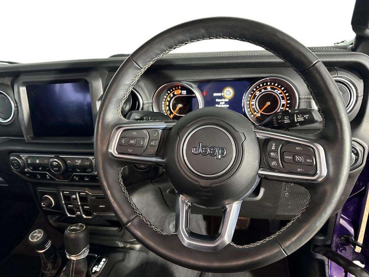 Active speed limiting device, Apple car play/Android Auto, Connected services (e-call), Emergency response assistance system, Exterior temperature gauge, Instrument cluster with 7" colour TFT Display, Jeep mapcare, Parksense rear park assist system, Parkview rear backup camera, Power Steering, Select speed control, Trip computer, Uconnect 8.4" with navigation with DAB+ Radio, Uconnect live - Europe, Vehicle information centre, Anti-spin differential rear axle, Conventional differential front axle with disconnect, Conventional differential rear axle, Gasoline particulate filter, Global telematics box module (TBM), Steering wheel mounted audio controls, USB port, Auto dimming rear view mirror, Auto high beam, Automatic headlights, Black door mirrors, Black front and rear bumpers, Black fuel filler door, Body colour fender flares, Centre high mounted stop light, Deep tint sunscreen glass, Exhaust system module, Exhaust system module Ii, Halogen headlamps, Headlamp leveling system, Headlamp off time delay, Incandescent tail lamps, Overland badge, Power adjustable heated door mirrors, Power front windows with one touch, Rear boot, Rear fog lamps, Rear side wing doors, Side repeater flashers, Tow hooks, Tubular side steps, Windshield wipers with intermittent and variable, Wrangler decal, 12V auxiliary power outlet in centre console, 12V auxiliary power outlet in rear, 2 way manual adjustable drivers lumbar support, 3 seat bench in 2nd row, 4 way manually adjustable passenger seat with height, reach, tilt, backrest and headrest, 6 way manually adjustable drivers seat, 60/40 split folding rear seat, Bright interior accents, Centre console storage, Climate control, Front centre armrest, Front headrests, Headliner parts module, Illuminated front cupholders, Isofix child seat preparation, Leather wrapped steering wheel, LED ambient lighting, Lockable glovebox, Rear compartment storage system, Rear headrests, Rear luggage cover, Reclining front seats, Single front passenger seat, Storage nets, Storage trays, Sunvisors with illuminated vanity mirrors, Tilt adjustable steering column, Premium LED lighting pack - Wrangler, Safety pack with Headlamp Control - Wrangler, Smoker's pack - Wrangler, Technology group II pack - Wrangler, 3x3 point rear seatbelts, ABS, Driver / front passenger multi stage airbags, Electronic stability control, Front side airbags, Hill start assist, Rear door child safety locks, Rear passenger seatbelt alert, Selectable tyre fill alert, Traction control, Tyre pressure monitoring warning lamp, Vehicle Dynamics Control System (VDC), Keyless entry, Keyless go with 'push to start' button, Locking fuel filler cap, Locking wheel nuts, Premium security alarm, Thatcham security equipment, Premium door trim panel, 18" Aluminium diamond cut alloy wheels, All season tyres, Full size spare wheel, Vinyl spare wheel Cover,