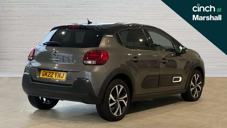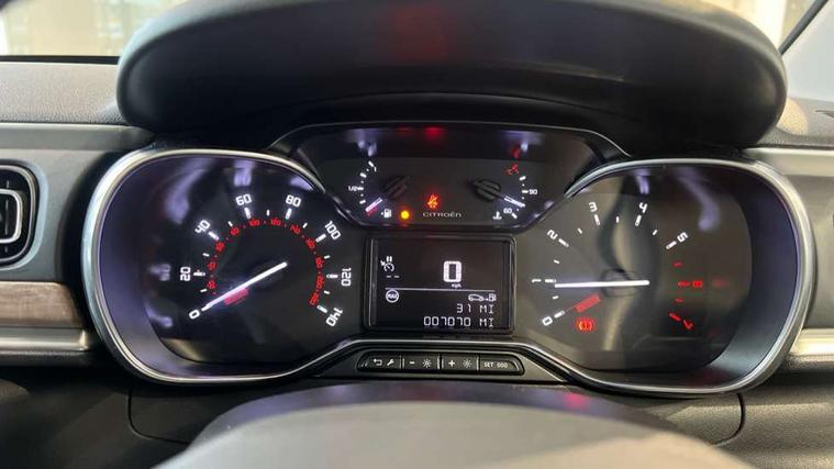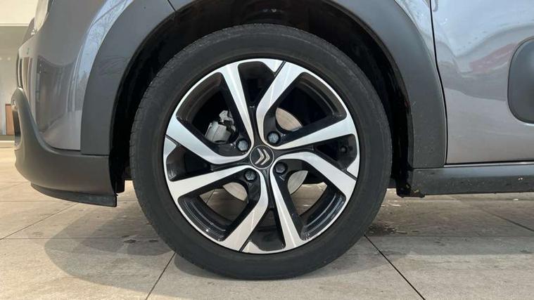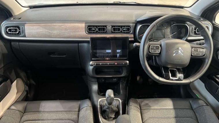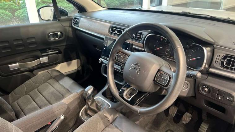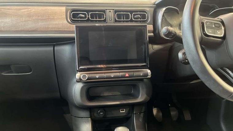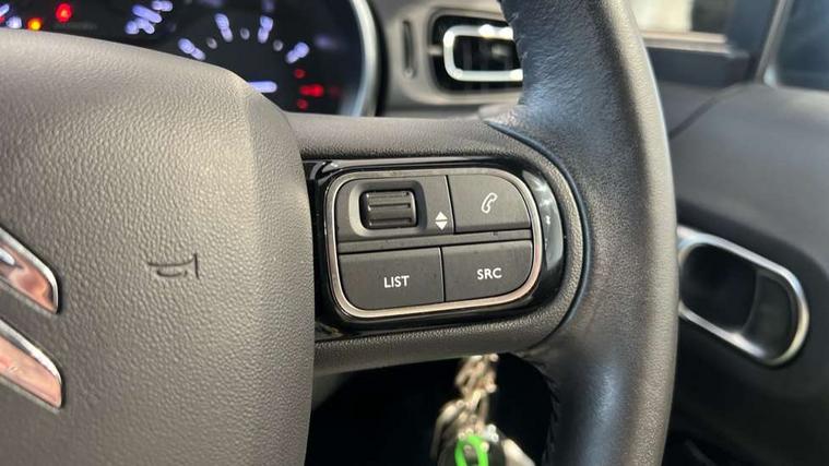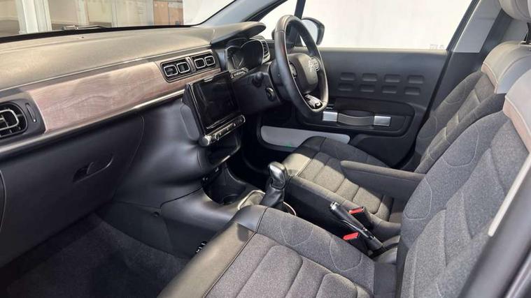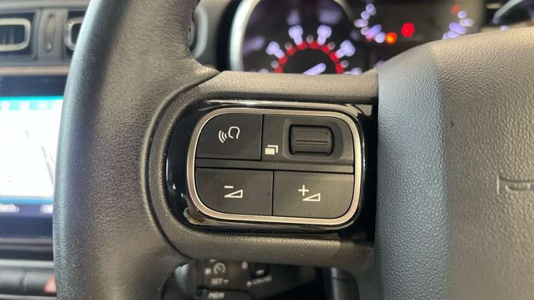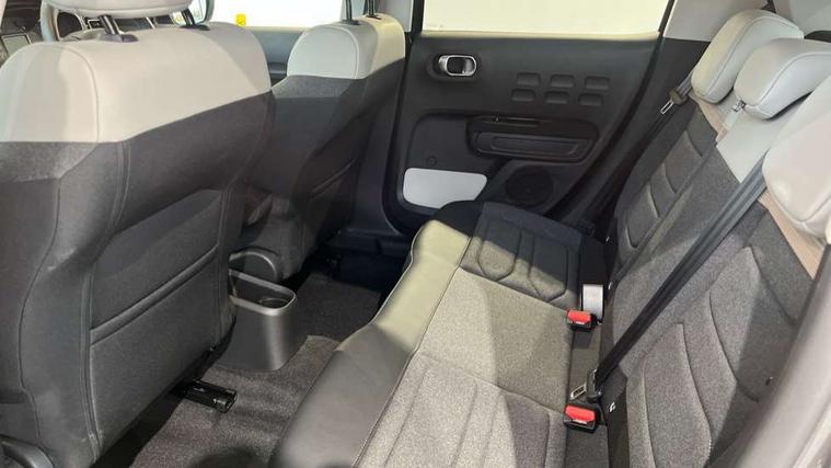 Citroen connect box emergency and assistance system, Citroen connected nav with DAB, 6 speakers, 7" captive touch screen, mirror screen includes apple carplay/android auto and bluetooth, Coffee Break Alert, Cruise control + speed limiter, eCall emergency call system, Exterior temperature display, Multi function trip computer, Reversing camera, Satin chrome surround instrument cluster with white LCD and analogue gauges, Variable assistance power steering, USB connection, 3D rear light signature, Airbump on side door panel, Auto dimming electrochrome rear view mirror, Auto headlights, Automatic activation of hazard warning lights, Body colour bumpers, Body colour door handles, Chrome decoration on front face, under chevrons and around daytime running lights, Citroen illuminated signature in LED headlights and LED daytime running lights, Dark tinted tailgate and rear side windows, Electric folding and heated door mirrors, Fog lights integrated into front bumper, Front sequential electric windows with one-touch open/close and anti-pinch system, Gloss black finish B pillar, LED Headlights, LED third brake light, Rear sequential electric windows with one-touch open/close and anti-pinch system, Rear side wing doors, Rear windscreen wiper with intermittent mode linked to vehicle speed and automatic activation when reverse gear selected, Roof colour rear view mirror caps, Variable front intermittent wipers, 1/3 to 2/3 split folding rear seat, 12V socket, 3 seat bench in 2nd row, Automatic air conditioning, Boot light, Cloth/leather effect upholstery, Driver and passenger's sun visor with courtesy mirror, Driver's central armrest, Driver's seat height adjustment, Front lighting panel with map reading lights, Front seats adjustable with forward back slide and adjustable backrest, Height adjustable front head restraints, Height/reach adjust steering wheel, ISOFIX mounting on outer rear seats with top tether and labels indicating fixing points, Leather steering wheel with gloss black + satin chrome elements and audio/telephone controls, Leather trimmed gear lever with leather effect gaiter and overstitching, Map pockets in back of driver and front passenger seats, Parcel shelf, Seatbelt unfastened on the move audible and visual alert for front and rear seats, Single front passenger seat, Storage space under touchscreen with rubber mat, Three rear headrests, Upholstered armrest in front and rear doors, Safety pack 1 - C3, Safety pack 2 - C3, Visibility pack with automatic lights - C3, ABS with Electronic brakeforce distribution and Emergency braking assistance, Driver and front passenger seatbelts with pyrotechnic pretensioners and force limiters, Driver's airbag, Electric child locks, ESP with anti skid system, Front passenger airbag, Front passenger airbag deactivation, Front side airbags + front/rear curtain airbags, Hill start assist, Manual parking brake with leather handle and chrome finish button, Mono-tone horn, Outer rear seats with pretensioners and force limiters, Three rear 3-point seatbelts, Tyre pressure monitoring system, Anti theft alarm, Automatic door and boot locking when moving off with automatic unlocking in case of impact, Central locking with locked indicator and interior one touch lock button, Immobiliser, Remote control central locking with two plip keys, 17" Vector diamond cut alloy wheels, Tyre puncture repair kit,