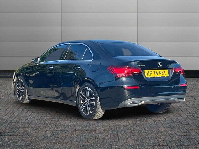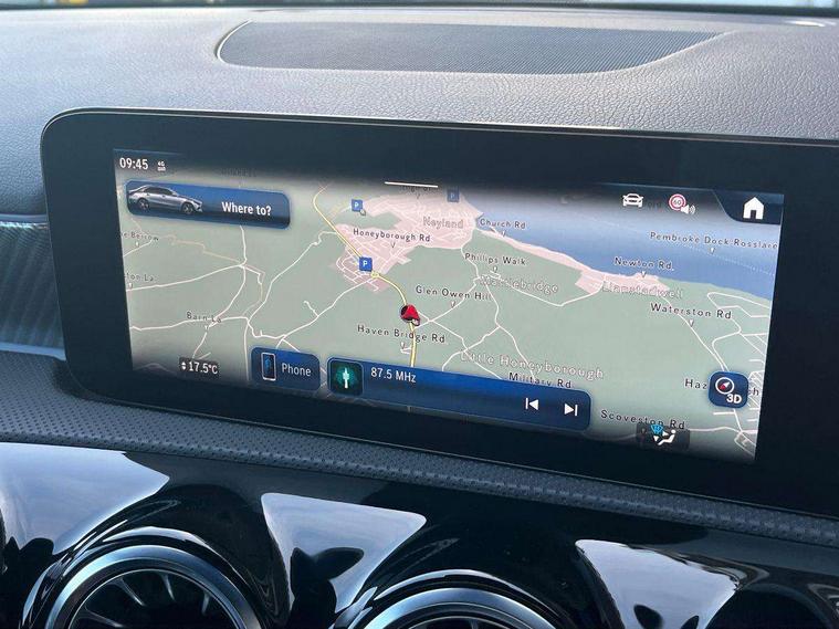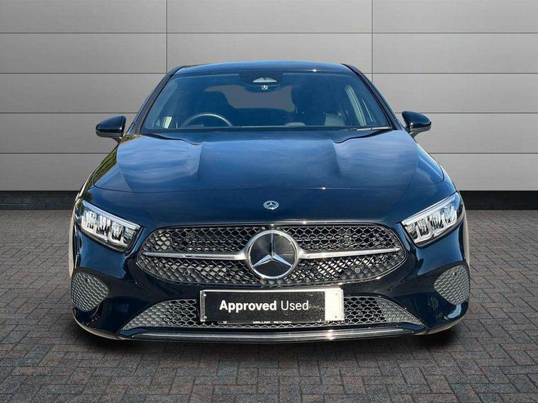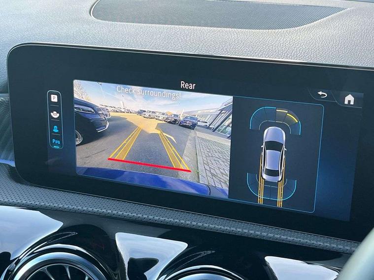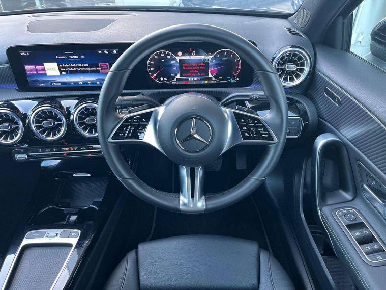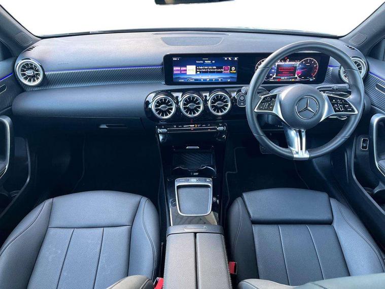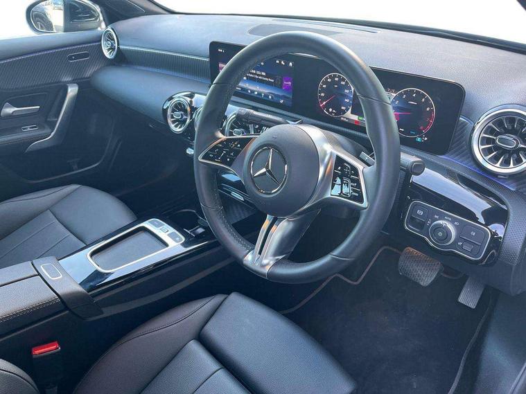10.25 inch touchscreen central media display, 10.25" Digital instrument cluster display screen, Attention assist, Blind spot assist, Brake pad wear indicator warning light, Car wash mode, Cruise control + speed limiter, Direct steering, Direction indicators with lane change function, Dual bluetooth interfaces, DYNAMIC SELECT with a choice of driving modes (ECO, Comfort, Sport and Individual), ECO start/stop function, Engine start/stop button, Fingerprint scanner, Fluid level warning indicator for fuel, oil, coolant and washer fluid, Fluorescent jacket for driver, Hard-disk navigation, Hey Mercedes Voice activation, Lamp failure indicator, Lane keeping system, Mercedes me connect including emergency call system, accident recovery, breakdown and maintenance management, Mercedes me remote services, Outside temperature gauge, Owners manual in English, Pre-installation of private car share, Preinstallation for Mercedes Benz link, Remote boot closing, Service indicator (ASSYST), Smartphone integration with Apple CarPlay and Android auto, Speed limit assist, Speed sensitive power steering, Trip computer in multifunction display with current consumption indicator, Wireless charging, Lowered comfort suspension, DAB Digital radio, MBUX multimedia system, Mercedes Benz sound system (100 W) with 6 speakers, 4 Electric Front and Rear windows, Adaptive brake lights, Body colour bumpers, Body colour door handles with chrome inserts, Body colour side skirt, Body coloured door mirrors, Chrome beltline strips, Diamond radiator grille with pins in fine star pattern, Electric adjustable and heated door mirrors with integrated LED side indicators, Exhaust system with 2 visible tailpipe trim elements and rear apron, Headlamp assist automatic headlamp activation, Heat insulating dark tinted rear and rear side windows, Heated glass rear windscreen + timer control, LED High Performance headlamps including integral LED daytime running lamps and adaptive highbeam assist, LED tail lamp, Privacy glass, Radio aerial, Rain sensing windscreen wipers with two sensitivity settings, Rear boot, Rear fog lights, Rear side wing doors, Third brake light featuring LED technology, Window line trim strip in chrome, 3 seat bench in 2nd row, 3 spoke ARTICO man-made leather multifunction sports steering wheel, 4 way lumbar support, 40:20:40 split folding rear seats, Air conditioning - One zone THERMATIC automatic climate control with automatically controlled air distribution, Artico man-made leather upholstery, Automatic child seat recognition sensor, Black air vents with surround in silver chrome, Black roof lining, Front centre armrest with stowage, Front comfort seats with adjustable head restraints, Front door sills with Mercedes Benz lettering, Front seat backs luggage nets, Gearshift paddles on steering wheel, Heated front seats, Height/reach adjustable steering column, Interior lighting - 64 colour Ambient lighting, Interior mirror with reading lamps in black and frameless, Rear armrest with 2 cupholders, Rear head restraints, Seat occupancy sensor for front passenger seat, Single front passenger seat, Stowage compartment in centre console with retractable cover, Sunvisors with illuminated vanity mirrors, Twin front cupholders, Velour floor mats, Keyless go comfort pack - A Class, Light and sight package - A Class, Mirror package - A Class, Parking pack with 180 degree view - A Class, Seat comfort pack - A Class, USB pack plus - A Class, 3 rear 3 point seatbelts, ABS with Brake Assist, Active bonnet, Active brake assist includes forward collision warning system with autonomous braking, Adaptive brake assist with hold function and hill start assist, Black seatbelts, Bonnet with power domes, Childproof locks manually operated for rear doors and electrically operated for rear power windows, Crash responsive emergency lighting, Driver and passenger head and side airbags, Drivers knee airbag, Dual stage driver/passenger airbags, Electronic parking brake, ESP curve dynamic assist, ESP with ASR, Front and rear seatbelt reminder, ISOFIX and top tether child seat fixing points in two outer rear seats, Tyre pressure monitoring system, Warning triangle and first aid kit, Window airbags, Alarm system/interior protection/immobiliser, Guard 360 degree vehicle protection, Remote central locking and crash sensor with emergency opening function, Dark carbon fibre interior trim, 17" 5 spoke light alloy wheels, aerodynamically optimised, painted in black with high sheen finish, Summer tyres, Tirefit sealant kit,