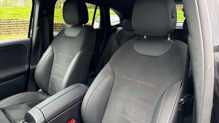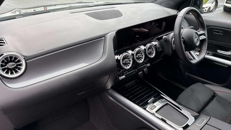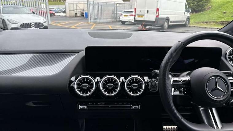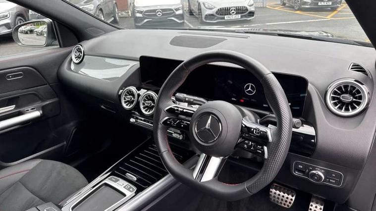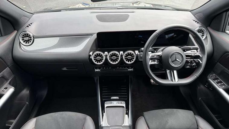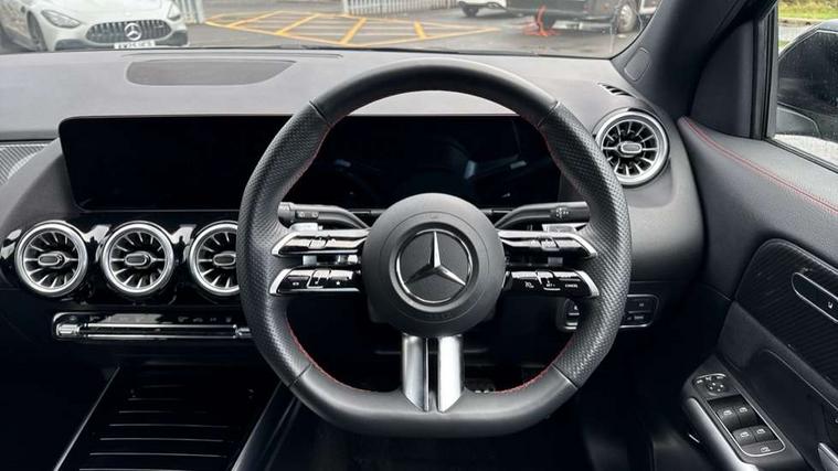 10.25 inch touchscreen central media display, 10.25" Digital instrument cluster display screen, Acoustic ambient protection, Attention assist, Blind spot assist, Direct steering, DYNAMIC SELECT with a choice of driving modes (ECO, Comfort, Sport and Individual), Easy-pack tailgate, ECO start/stop function, Fingerprint scanner, Fluid level warning indicator for fuel, oil, coolant and washer fluid, Hard-disk navigation, Hey Mercedes Voice activation, Lamp failure indicator, Lane keeping assist (LKA), Mercedes me connect including emergency call system, accident recovery, breakdown and maintenance management, Mercedes me remote services, Multi function trip computer, Outside temperature gauge, Owners manual and service booklet in English, Pre-installation of private car share, Radio aerial integrated into front and rear windshields, Remote and charging services plus, Service indicator (ASSYST), Smartphone integration with Apple CarPlay and Android auto, Speed limit assist, Wireless charging, 4m charging cable for wall box/public charging stations(mode 3), Charging system - AC charging system rated at 11kW, Charging system - DC charging system rated at 22kW, Comfort suspension, Rear axle torsion beam, Bluetooth connectivity including audio streaming, DAB Digital radio, MBUX multimedia system, Mercedes Benz sound system (100 W) with 6 speakers, Adaptive brake lights, Adaptive highbeam assist, Aluminium roof rails, AMG front apron with front splitter in the colour of the vehicle with chrome trim element, AMG rear apron with visible tailpipe trim and chrome trim element, AMG specific/dual flow exhaust pipes in chrome (non-functional), Automatic headlamp activation, Beltline trim and window line trim strip in high gloss aluminium, Black grained side sill trim with chrome inlay, Body coloured door handles with chrome insert for keyless entry, Car wash function, Dark privacy glass from B-pillar backwards, Electric front windows, Electric rear windows, Electrically adjustable and heated door mirrors with integrated LED indicators, Exhaust system with 2 Visible tailpipe trim elements and rear apron with trim in chrome, Heat insulating dark tinted glass, Heated glass rear windscreen + timer control, Interior mirror with black reading lamps and frameless, LED high performance headlamps with integrated LED daytime running lights, LED tail lights, LED third brake light, Radiator diamond grille with chrome pins and central Mercedes star, single louvre in matt grey with chrome inserts and black highlights, Rain sensor windscreen wipers, Rear fog lights, Rear side wing doors, Rear wiper, Wheel arch liners in the colour of the vehicle, 3 seat bench in 2nd row, 3 spoke flat bottom multifunction nappa leather steering wheel, 4 way lumbar support, 40:20:40 split folding rear seat backrests, Adjustable head restraints, Air conditioning - air vents with silver chrome surround, Air conditioning - One zone THERMATIC automatic climate control with automatically controlled air distribution, AMG floor mats, Auto Mercedes-Benz child seat recognition sensor, Black roof lining, Charging socket, Courtesy light in boot, Fluorescent jacket, Front centre armrest with stowage, Galvanished gear shift paddles on steering wheel in silver chrome, Heated front seats, Illuminated glovebox, Interior lighting - 64 colour Ambient lighting, Luggage net on driver/front passenger seat backrest, Manually height and reach adjustable steering column, Pre-entry climate control, Single front passenger seat, Sports pedals in brushed stainless steel with black rubber studs, Sports seats, Sports steering wheel, Stowage compartment in centre console, Stowage compartment with retractable cover, Sunvisors with illuminated vanity mirrors, Twin front cup holders, Two outer rear seat isofix and top tether child seat fixing points, Comfort seat pack - GLA Class, Interior lighting with light and sight pack - GLA, Keyless go comfort package - GLA, Mirror pack - GLA Class, Parking package with reversing camera - GLA, USB package plus - GLA, 3 rear 3 point seatbelts, ABS with Brake Assist, Active bonnet pedestrain safety measure which detects an impact and raises bonnet by 65mm, Active brake assist includes forward collision warning system with autonomous braking, Adaptive brake assist with hold function and hill start assist, Black seatbelts, Bonnet with power domes, Brake pad wear warning indicator, Childproof locks manually operated for rear doors and electrically operated for rear power windows, Crash responsive emergency lighting, Driver and passenger head and side airbags, Drivers knee airbag, Dual stage driver/passenger airbags, Electronic parking brake, ESP curve dynamic assist, ESP with ASR, Front and rear seatbelt reminder, Front brake callipers with Mercedes Benz logo lettering on front, Front brake discs internally ventilated and perforated, Front passenger seat occupancy sensor, Radar-based recuperation, Sports braking system, Tyre pressure monitoring system, Warning triangle and first aid kit, Window airbags, Alarm system with immobiliser and interior protection -Thatcham category 1, Guard 360 degree vehicle protection, Keyless Go starting function, Remote central locking and crash sensor with emergency opening function, Carbon structure trim, 19" AMG 5 twin spoke light alloy wheels aerodynamically optimised and painted in tantalite grey with a high-sheen finish RTF, Summer tyres, Tirefit tyre sealant kit,