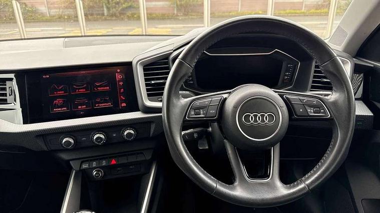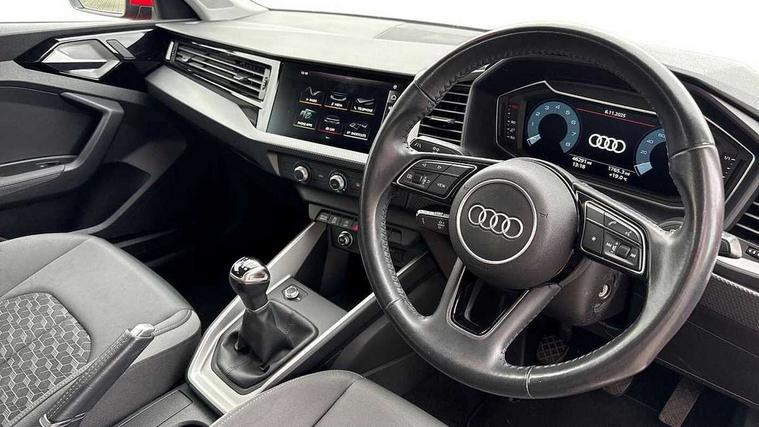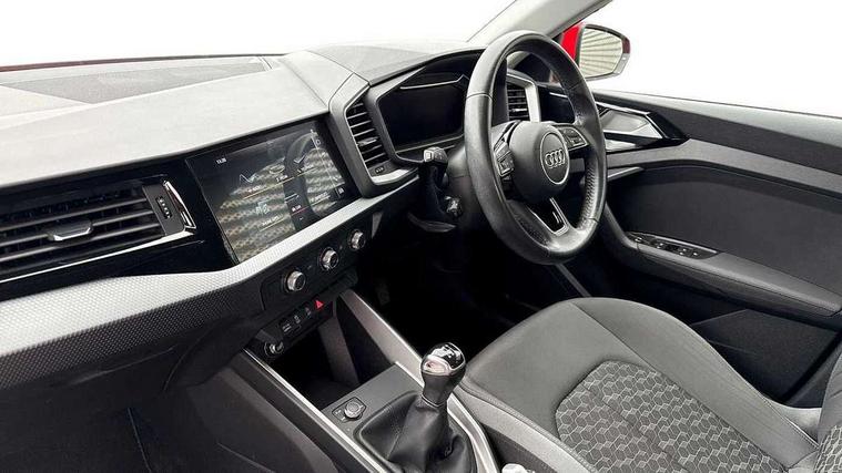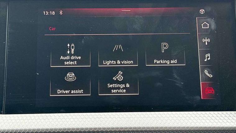 10.25" Digital instrument cluster display screen, Audi connect safety emergency and service including E-call, Audi drive select, Audi smartphone interface, Automatic start/stop system, Bluetooth interface, Driver's information system, Electromechanical power steering, Lane departure warning system, Service interval indicator, Speed limiter, Voice control system, Washer fluid level indicator, Dynamic suspension, 1 x SDXC card reader, 1 x USB type C and 1 USB type A charging points, Audi music interface, Bluetooth audio streaming, DAB Digital radio, MMI radio plus with 8.8" colour MMI display screen and MMI touch, Auto dimming rear view mirror, Body coloured bumpers, Body coloured door mirrors, Electric front and rear windows, Front side air inlets in grained matt black and C frame in titanium black, Heat insulating glass windscreen and side windows, Heated rear windscreen, LED headlights with LED rear lights + dynamic rear indicators, Radiator grille in matt titanium black, Radiator protective grille frame in matt aluminium silver, Rain and light sensors, Rear fog lights, Rear wiper, Side front spoiler lips in grained matt black, Titanium black matt diffuser, 12V socket in centre console with two cup holders, 3 rear seats, Door sills trims with aluminium inlays, Driver and passenger seat with manual height adjust with forward and backwards adjustment, Front head restraints, Front/rear floor mats, Height and reach adjustable steering wheel, Illuminated glovebox, ISOFIX child seat mounting in front passenger and rear outer seats, Leather gear knob with aluminium trim, Leatherette handbrake grip, Luggage compartment light with front and rear reading lights, Lumbar adjustment for front seats, Novum cloth upholstery with front sport seats, Rear head restraints, Split folding rear seats, Titanium grey cloth headlining, 3x3 point rear seatbelts, Audi pre-sense front with pedestrain and cyclist recognition, Brake assist function, Driver and front passenger airbag with front side and head airbags, Electronic Stability Control including ABS, EBD, ASR and EDL, Front and rear seatbelt reminder, Front passenger airbag deactivation switch, Hill hold assist, Seatbelt height adjustment for front seats, Seatbelt monitoring, Tyre pressure warning light, Warning triangle and first aid kit, Anti theft alarm, Anti theft wheel bolts and loose wheel warning, Immobiliser, Remote central locking with 2 remote folding keys, Aluminium trim for control switches, air vents and digital instrument cluster, Silver grey accent areas including air vents, door handle recesses and centre console in diamond paint finish, Slate grey inlays polygon structure in fine paint finish,