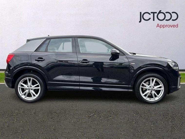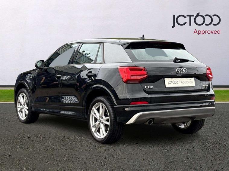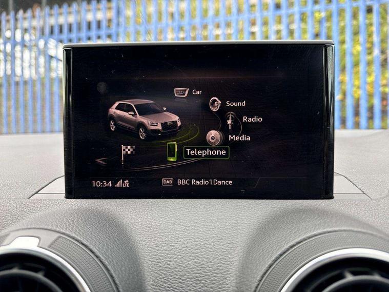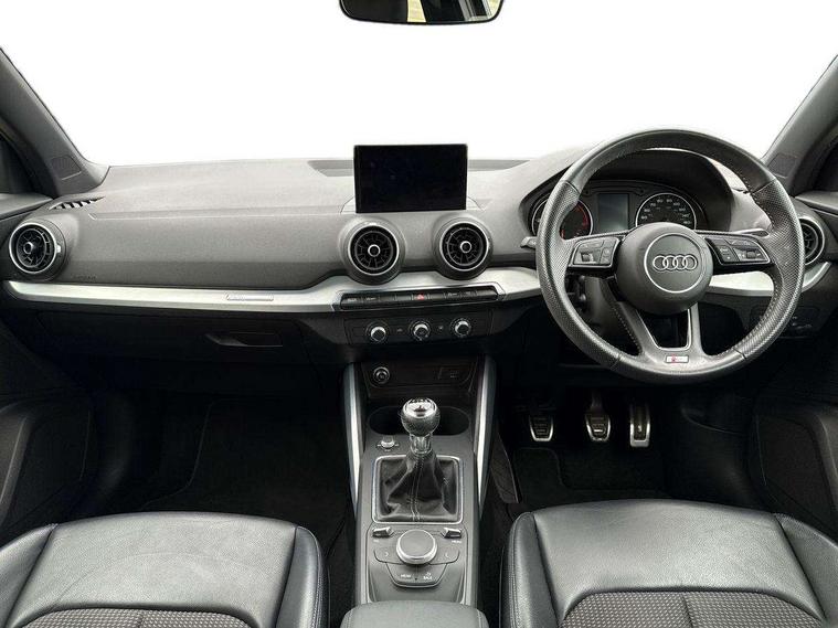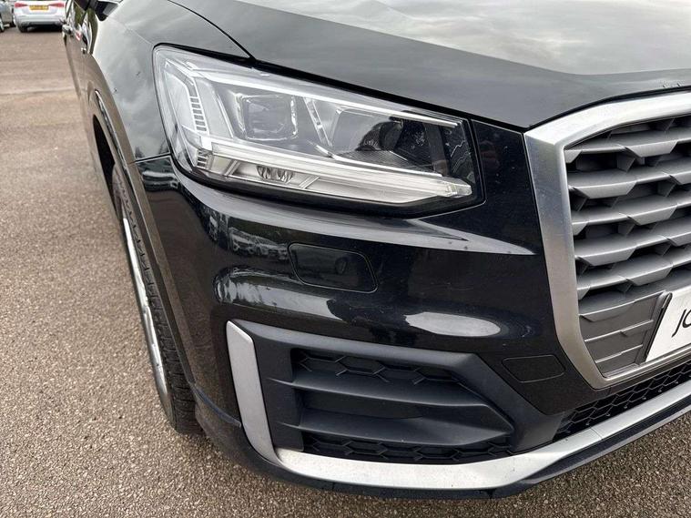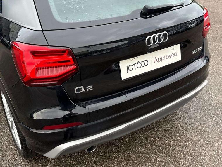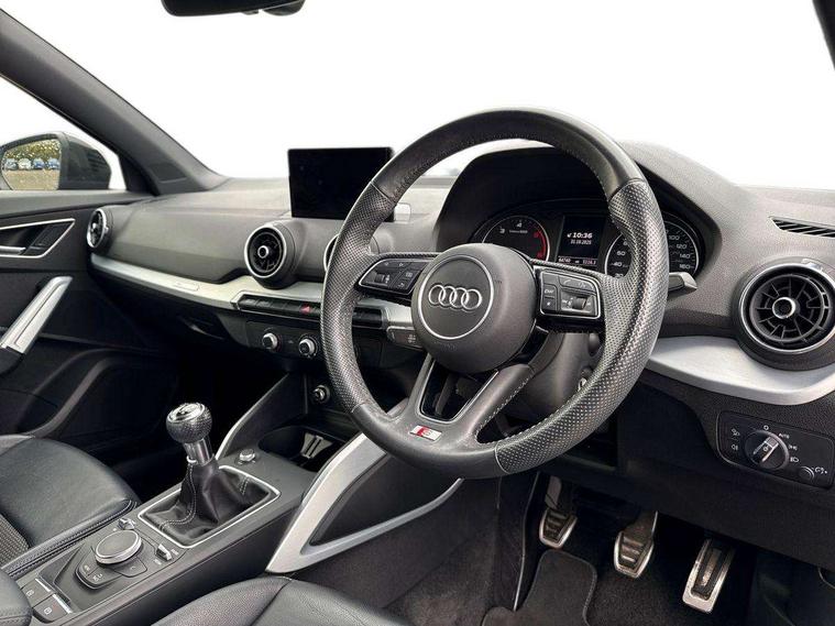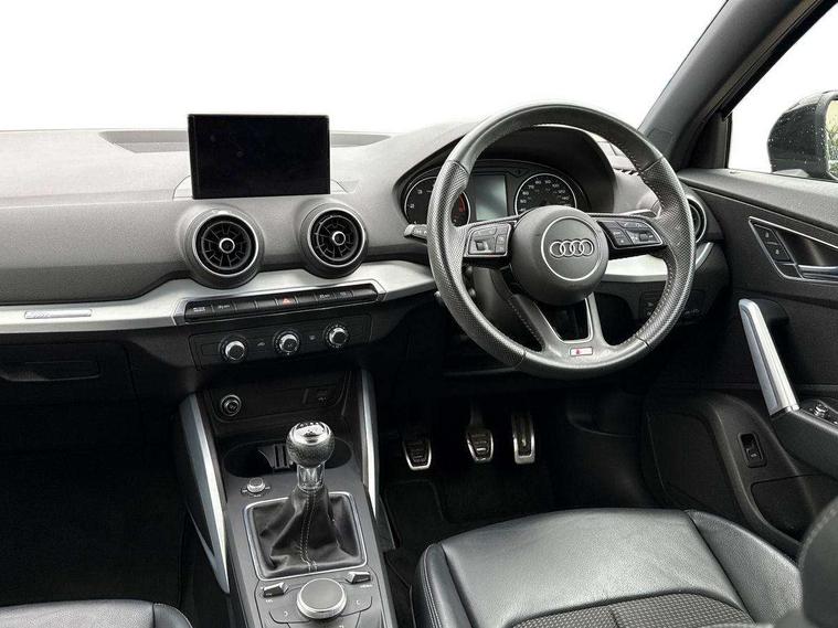 Audi drive select, Audi smartphone interface, Automatic start/stop system with recuperation, Bluetooth interface includes bluetooth audio streaming, Cruise control, MMI - Multi Media Interface control system, MMI SD card integrated nav with 3D map display, dynamic route guidance with TMC, MMI search, natural voice recognition and myAudi special destinations, Power operated tailgate, Progressive steering, Service interval indicator, Dynamic suspension, 2 x SDXC card reader, Audi music interface - apple iPod, apple iPhone, USB storage media, compatible MP3 players, 2 x USB charging points and 1 x Aux-in, CD Drive, DAB digital radio and AM/FM radio, MMI radio plus with 7" colour MMI screen and MMI controller, Black window trims, Bumper in full body colour paint finish, Chrome exhaust tailpipe, Electrically adjustable and heated door mirrors with integrated LED side indicators, Front and rear electric windows, Front underbody guard and rear diffuser trim in selenite silver, Front windscreen with grey tinted sunband, Headlight washers, Interior mirror, LED headlights with LED rear lights + dynamic rear indicators, LED indicator lights, Manual folding door mirrors, Rain and light sensors, Rear wiper, S Line badges on the front wings, S Line body styling - front and rear bumpers, side skirts, radiator grille, rear diffuser insert and front air intakes, 60/40 split folding rear seat bench, Black cloth headlining, Electronically operated child locks, Floor mats with contrast stitching, Front centre armrest, Front headrests, Front sport seats with S embossed logo, Height/reach adjust steering wheel, Illuminated door sill trims with S logo, ISOFIX child seat mounting for front passenger with airbag deactivation and outer rear seat including top tether attachment point for outer rear seats, Manual seat adjustment including seat height adjustment for front seats, Stainless steel pedals, Storage compartments - Glovebox, cupholder compartment in centre console, storage compartment in rear centre console, front and rear door pockets, Three rear headrests, Non smoking pack - Q2, 3x3 point rear seatbelts, 6 airbags - Front, curtain and front side airbags, Electromechanical parking brake, Electronic stabilisation control including ABS, ASR and EDL, Extended and proactive pedestrian protection, Hill hold assist, Multi collision brake assist, Pre-sense front with pedestrian recognition, Seatbelt monitoring, Tyre pressure warning light, Warning triangle and first aid kit, Anti theft alarm, Anti theft wheel bolts, Central locking system with remote control key, Aluminium interior element,