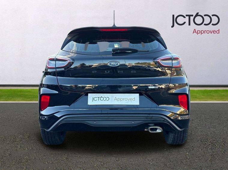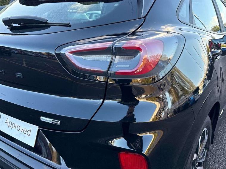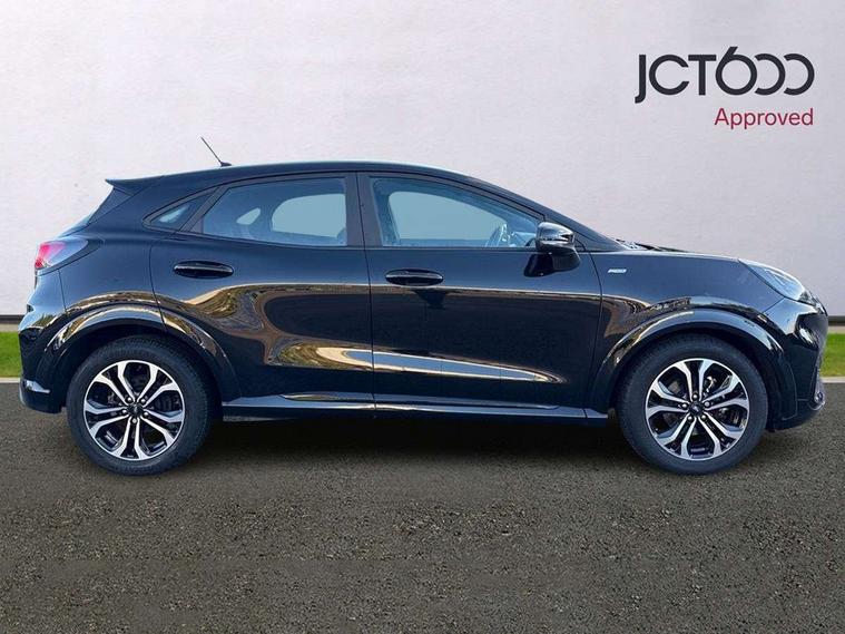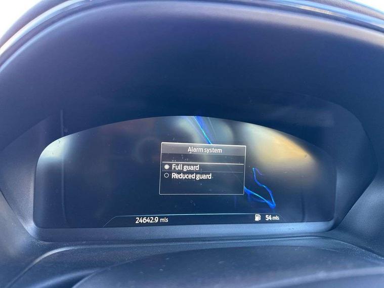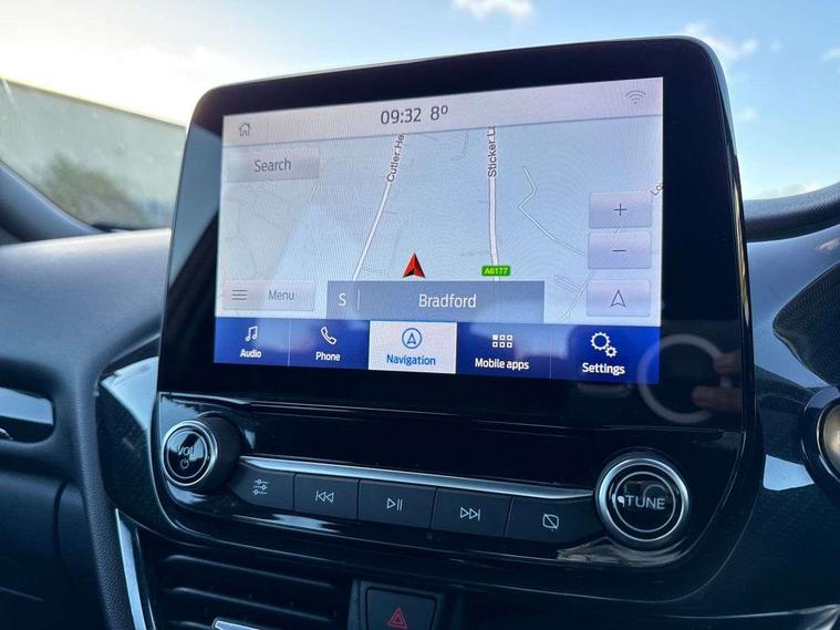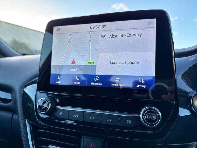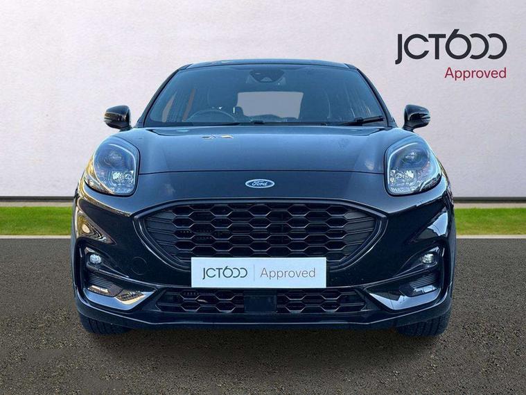 Ford easy fuel, Full digital 12.3" instrument cluster, Lane keeping aid with lane departure warning, Power assist steering, Rear parking sensor, Selectable drive modes(Normal, sport, Eco, trail, slippery), Wireless charging pad, Automatic headlights with rain sensing wipers and auto high beam, Body coloured door mirrors, Front fog lights with cornering lights and LED rear lamps, Power foldable heated door mirrors with puddle lamps, Quickclear heated windscreen, Rear wiper, ST-Line body kit with large rear spoiler wth sports suspension, Alloy sports pedals, Centre console with armrest and stowage, Court cloth upholstery with belgrano bolsters, Driver seat height/lumbar adjust, Ford megabox extended bootspace, Front and rear floor mats, Front and rear head restraints, Manual air conditioning, ST-Line flat bottomed sensico leather steering wheel with leather handbrake and aluminium gear knob, 3 rear seatbelts, Electronic stability control (ESC) and hill start assist, Pre-collision assist with autonomous emergency braking, pedestrian/cyclist detection & post-collision braking, Tyre pressure monitoring system (TPMS), Thatcham alarm, Tyre inflation kit,