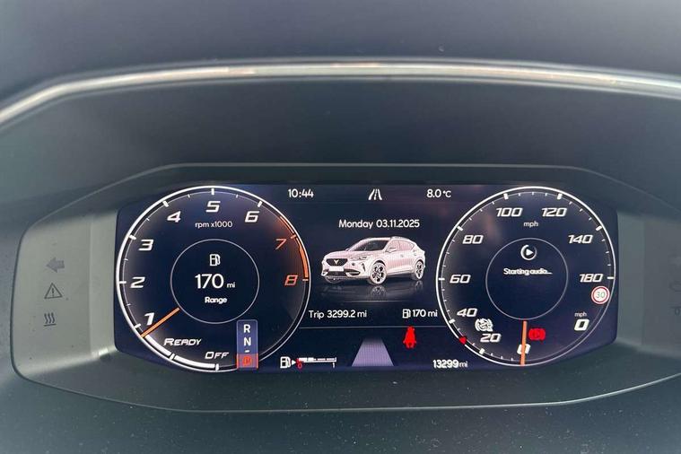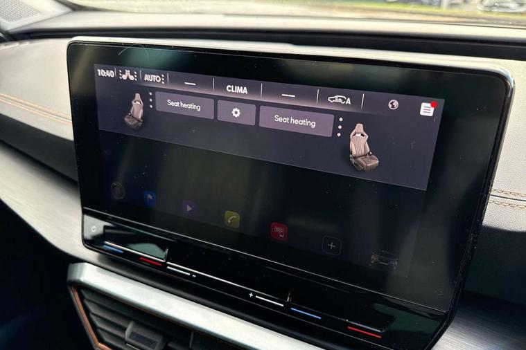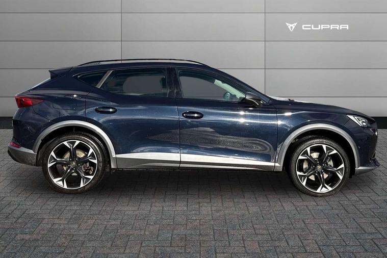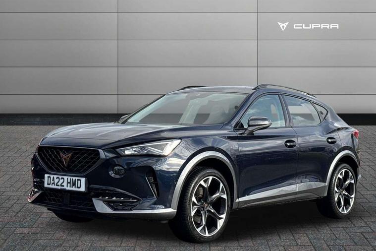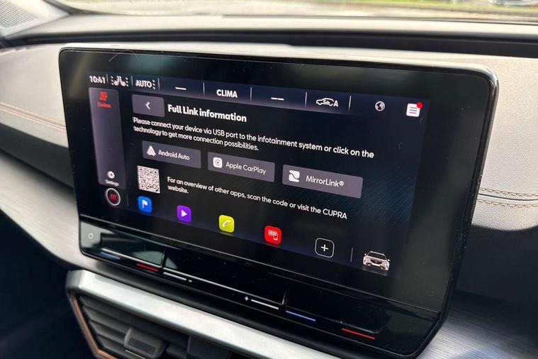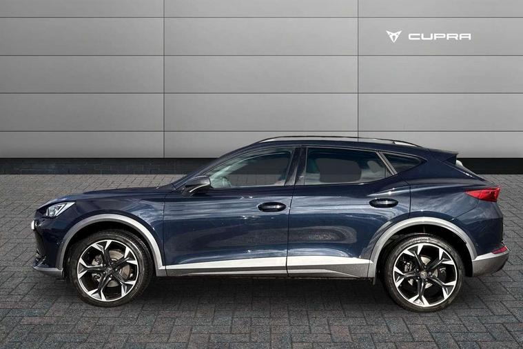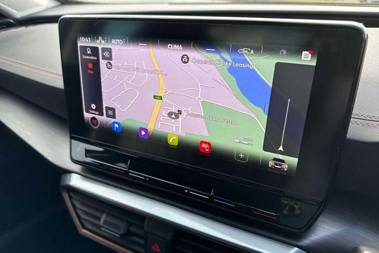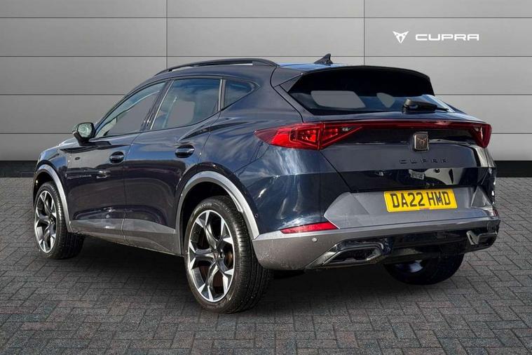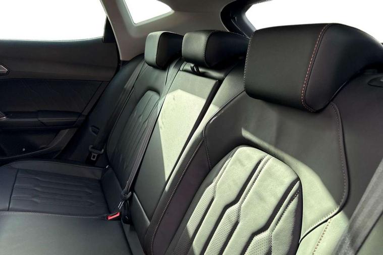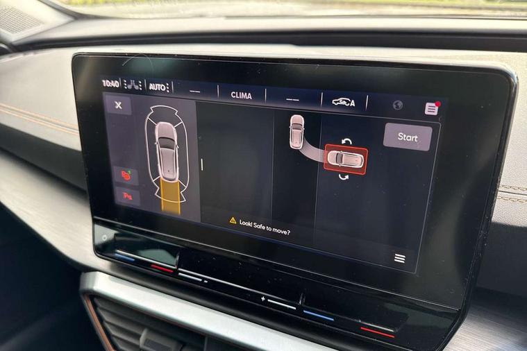 Digital cockpit and configurable dashboard, Driver alert system, Driving profile selection, E-call, Forward collision warning with automatic braking, Lane assist, Navigation system with 12'' Touchscreen Display, Park assist (inc front/rear parking sensors), PAS, Predictive adaptive cruise control with speed limiter, Rear view camera, RPM, trip computer, outside temp gauge, instrument light brightness, low fuel warning light, lights on reminder, gearshift indicator, Service interval indicator, Start/stop system with regenerative braking, Voice control system, Wireless apple carplay, Wireless phone charger, Electronic locking differential and dynamic traction support, Standard suspension, 2 front and 2 rear USB type C sockets, Auxiliary input socket, DAB radio, Auto dimming rear view mirror, Body colour door handles, Body coloured bumpers, Dark grey wing mirror, Daytime running light with automatic headlight control and coming home feature, Dynamic headlight range control, Electric front/rear windows, Electrically adjustable heated and folding door mirrors with memory function, Front fog lamps with cornering function, Gloss black roof rails and window surrounds, LED Headlights, LED Taillights with dynamic indicator, Rain sensing wipers, Rear diffuser with black simulated exhaust pipes, Rear side wing doors, Rear wash/wipe, Third brake light, Tinted rear windows, Welcome lights, 12v power supply in centre console, 12V socket, 12v socket in loadspace, 2 front and 2 rear reading lights, 230V socket, 3 seat bench in 2nd row, 60/40 split rear bench seat with armrest and mechanical seat release, Dust/pollen filter, Front and rear head restraints, Front centre armrest, Height/reach adjust steering wheel, Illuminated interior front door sills, Illuminated sunvisor with mirror, Isofix, Leather multi function heated steering wheel with gear shift paddles, Luggage tie-down hooks, Single front passenger seat, Three zone climate control with control panel in rear, Variable luggage/load compartment floor, Wraparound lighting, Genuine Nappa leather Pack - Cupra, 3 point seatbelts on all rear seats, ABS, Brake control system - ESC and brake booster, Child proof door locks, Driver and front passenger airbags with front passenger airbag de-activation, Electronic parking brake, Front and rear disc brakes, Front side curtain airbags, Hill hold control, Seat belt reminder for front and rear seats, Tyre pressure monitoring system, Anti theft alarm system, Keyless entry and start system (KESSY), Locking wheel bolts, Copper and aluminium interior detailing, 19" 'Exclusive' machined sport matte black and silver alloy wheels,